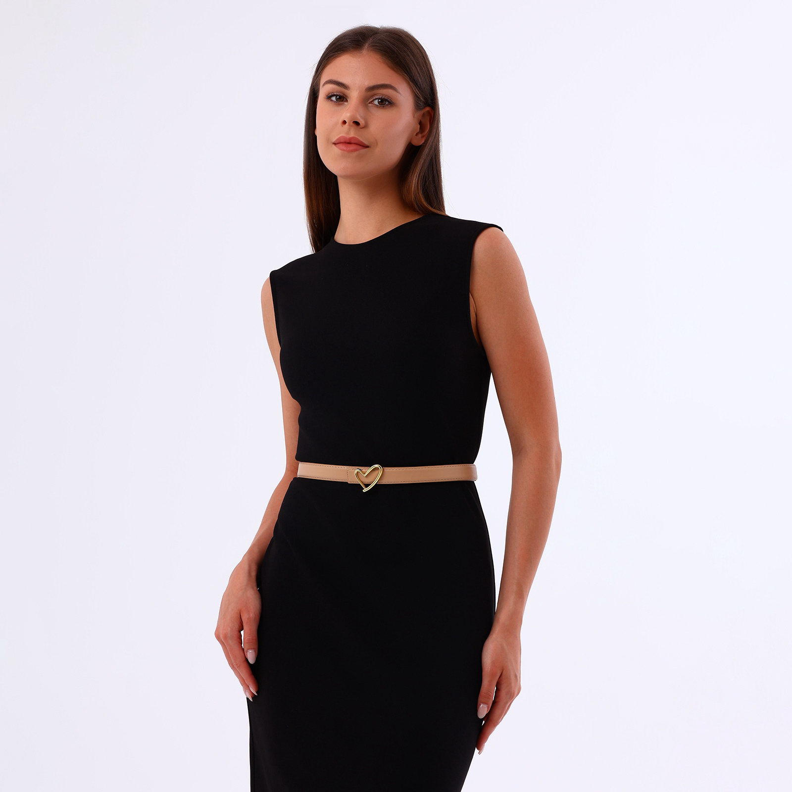 Элегантный акцент Ремень работает как сдержанный штрих, который дополняет образ без перегруза. Его нейтральный цвет и золотистая фурнитура создают гармоничное сочетание с пастельными и темными тонами. Вы используете его для завершения повседневных и деловых комплектов, добавляя им легкий налет роскоши. | ||
