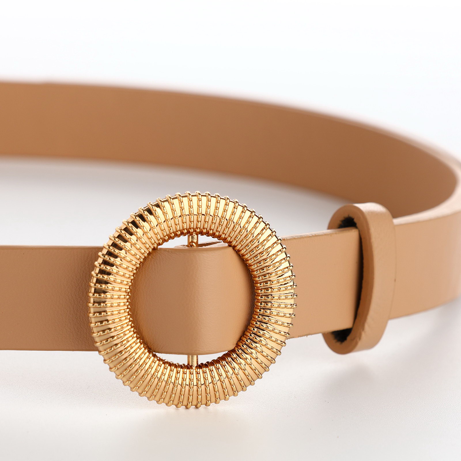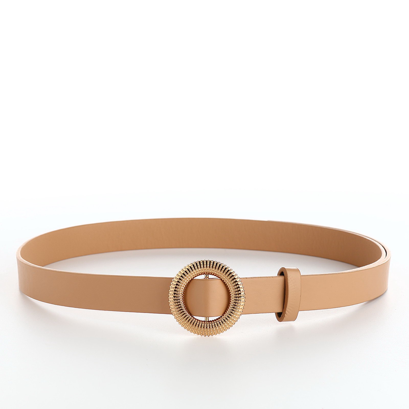 Ремень женский тонкий, 110x1.9 см, круглая пряжка металл, золотистая, бежевый, 1.9x110x0.3 см., Китай