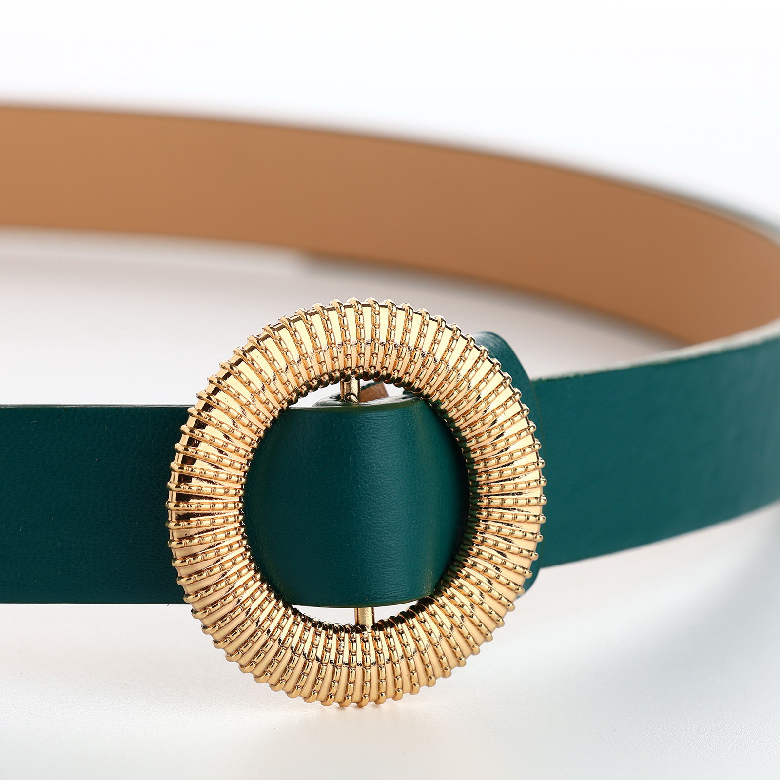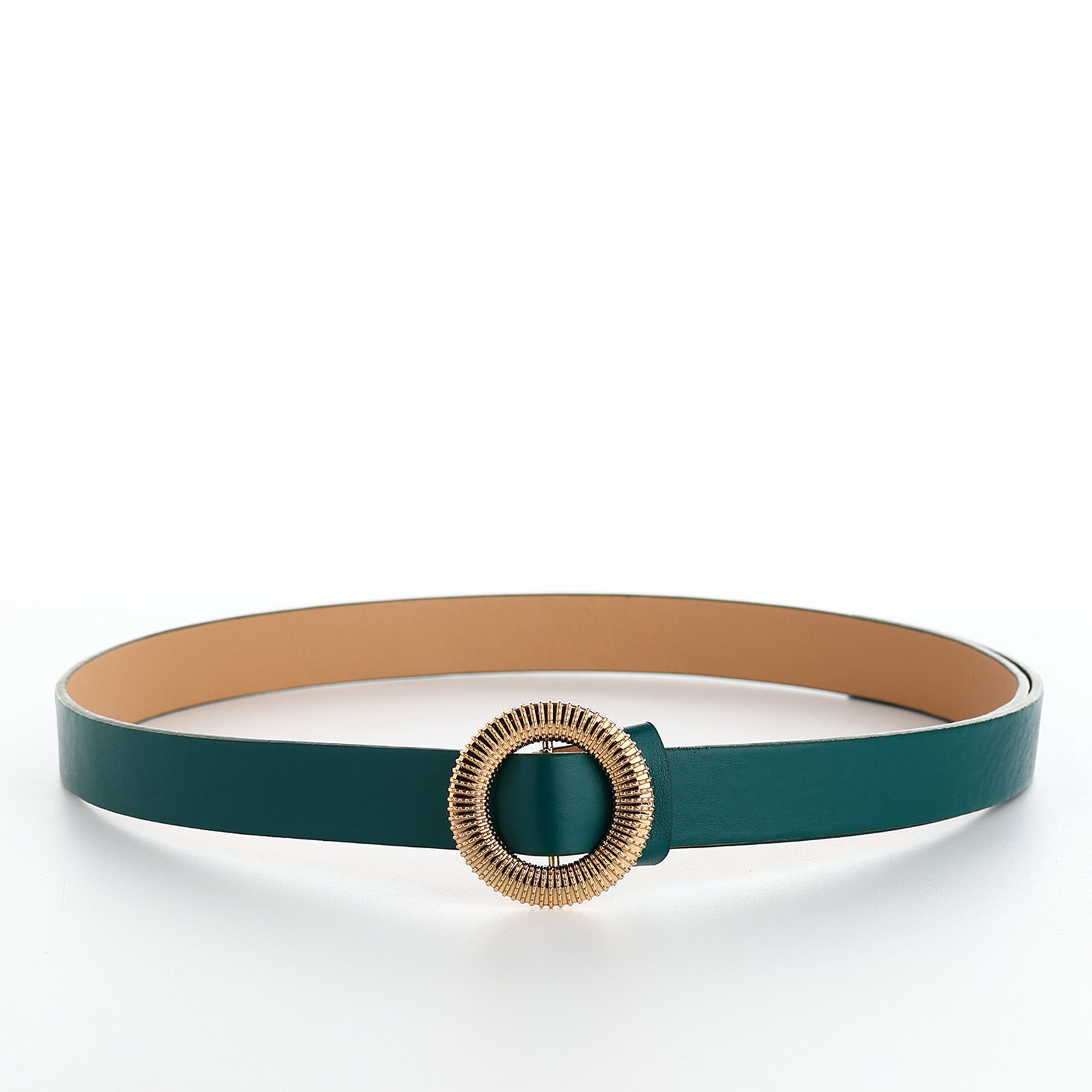 Ремень женский тонкий, 110x1.9 см, круглая пряжка металл, золотистая, зелёный, 1.9x110x0.3 см., Китай