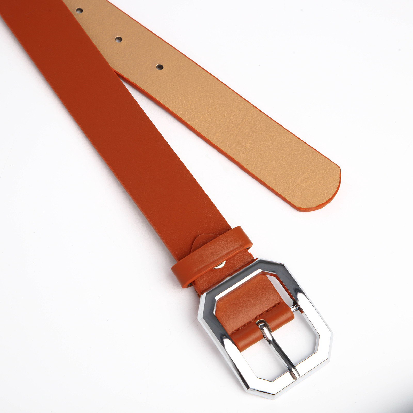 Ремень женский с винтом, 110x3 см, пряжка металл, серебристая, рыжий, 3x110x0.3 см., Китай
