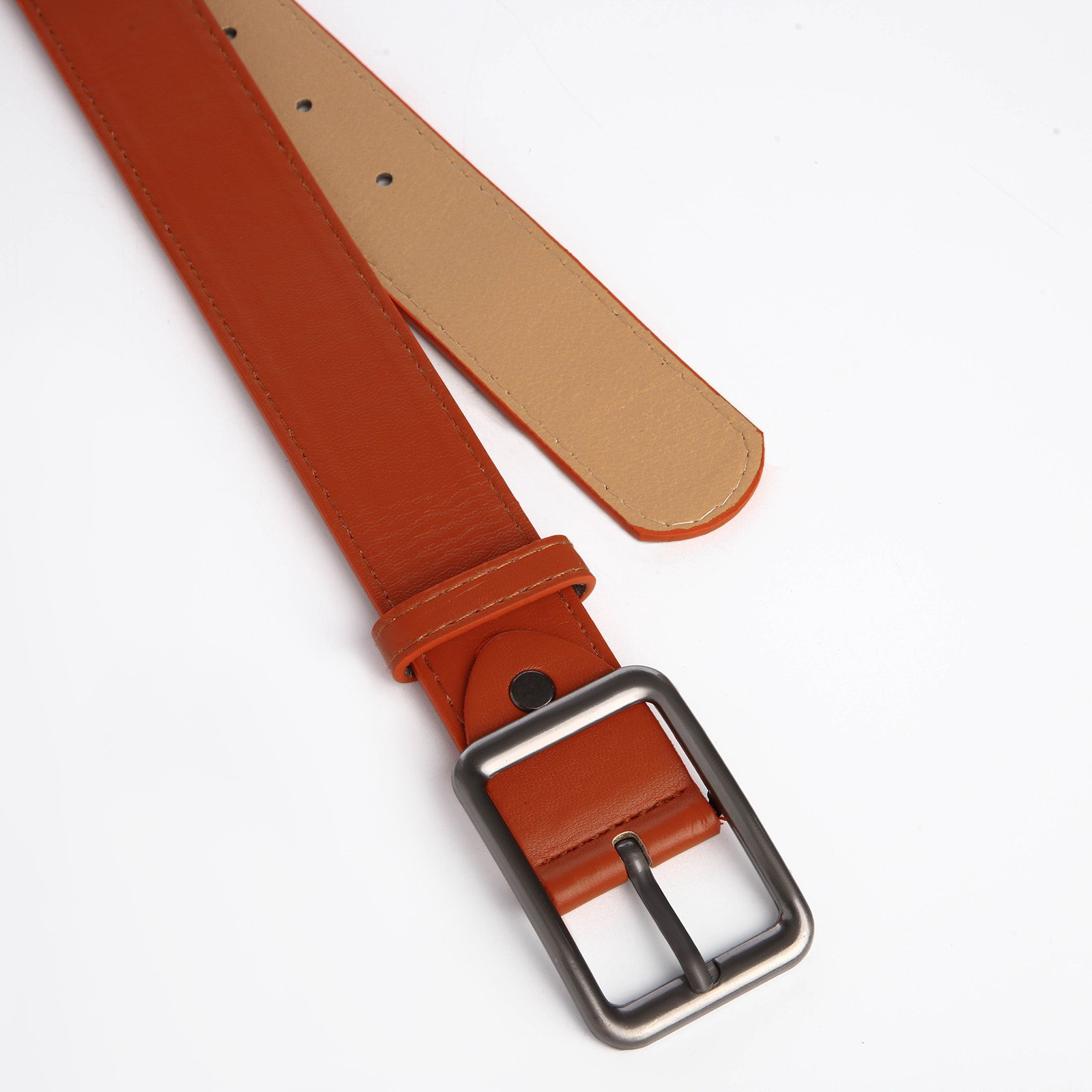 Ремень женский с винтом, 110x3.5 см, прямоугольная пряжка металл, серебристая, рыжий, 3.5x110x0.3 см., Китай