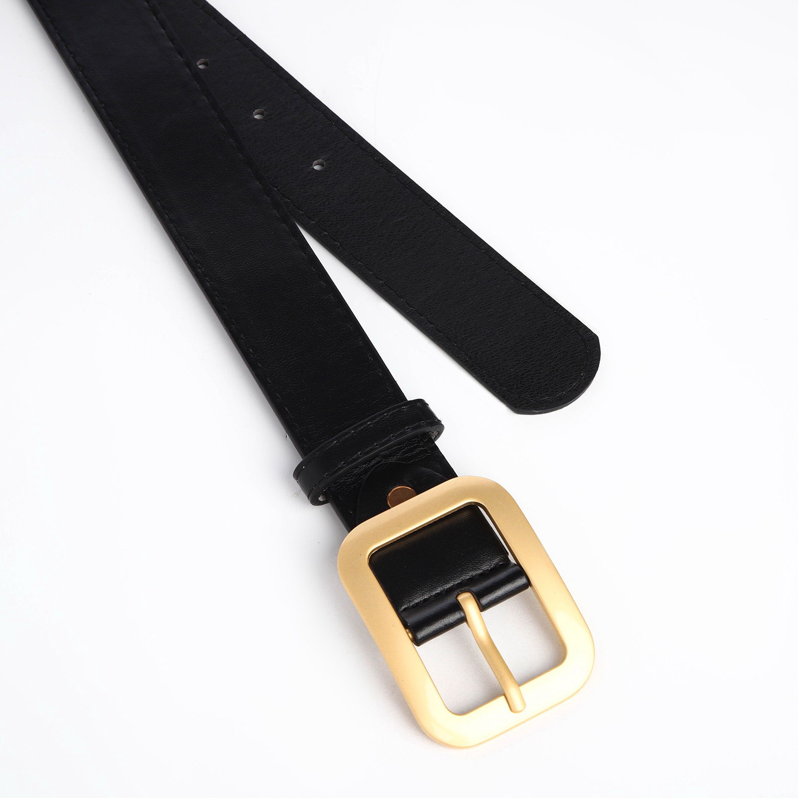 Ремень женский 110x3.5 см, пряжка металл, золотистая, чёрный, 3.5x110x0.3 см., Китай