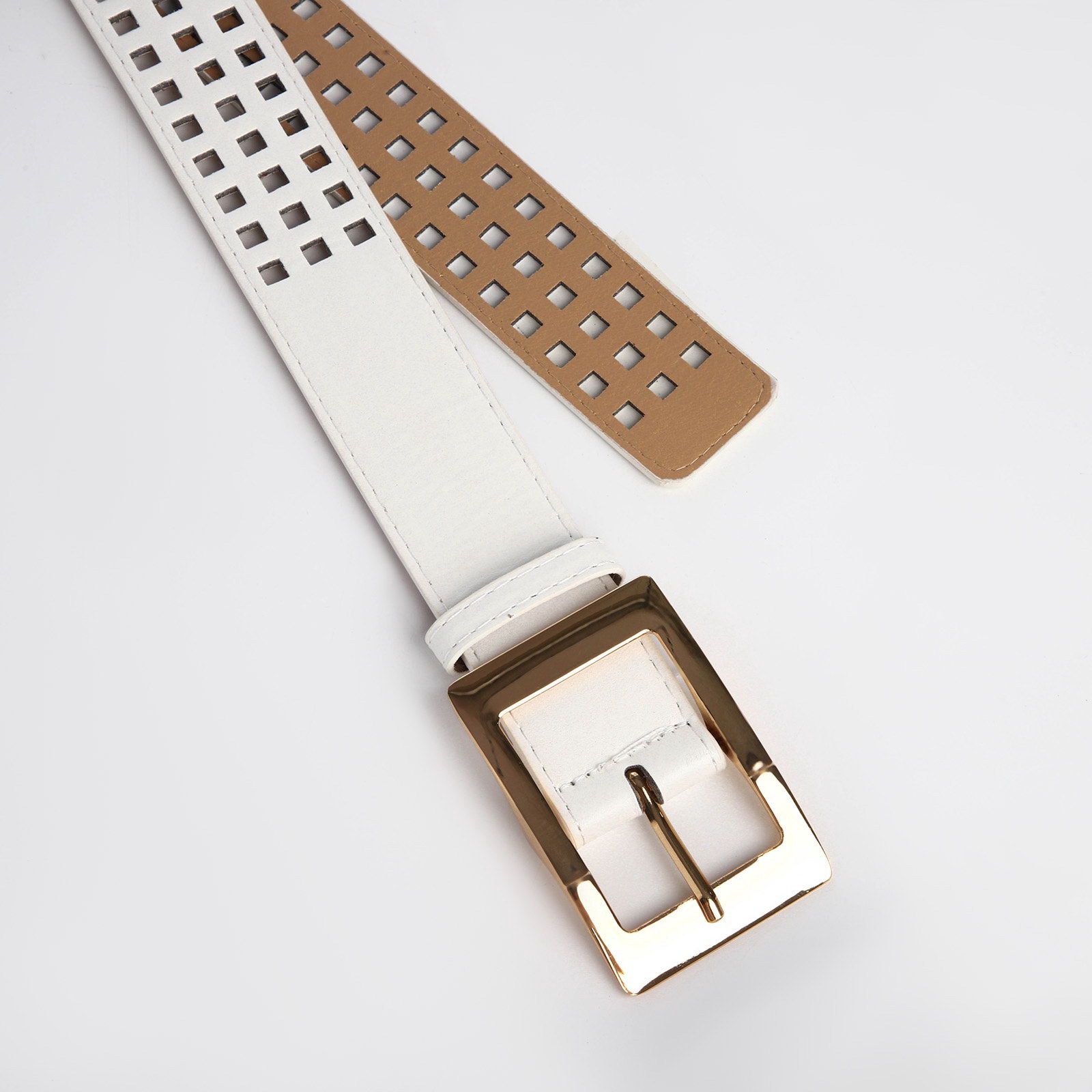 Ремень женский, 110x4 см, пряжка металл, золотистая, белый, 4x110x0.3 см., Китай