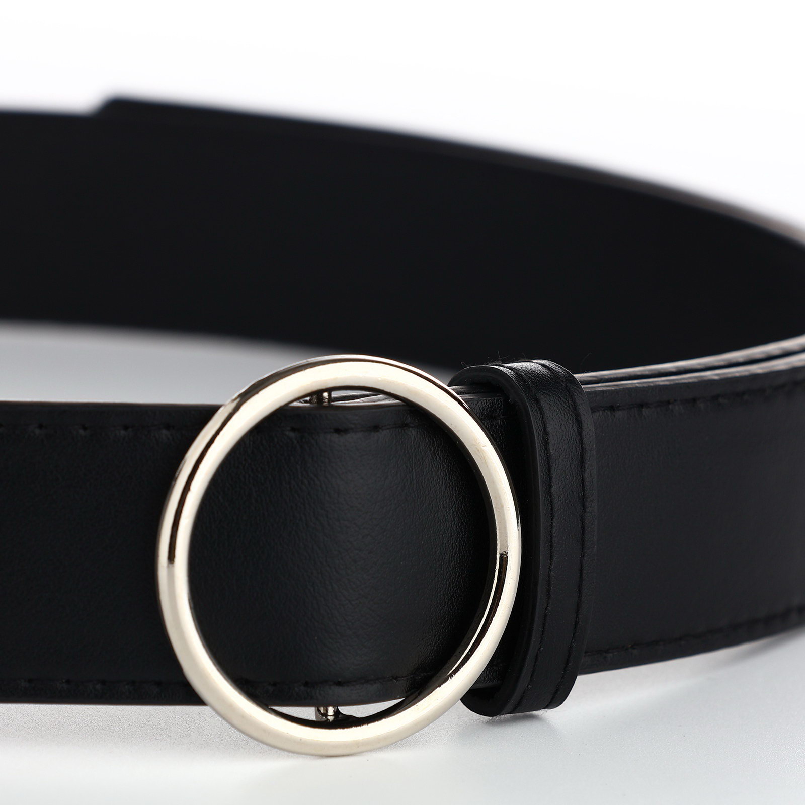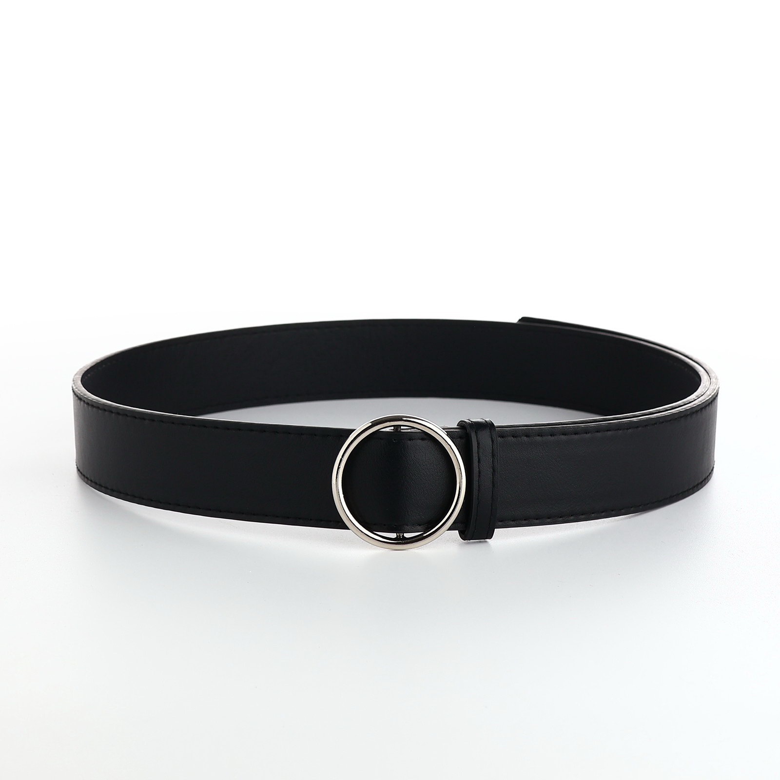 Ремень женский 110x3.5 см, круглая пряжка-затяжка металл, серебристая, чёрный, 3.5x110x0.3 см., Китай