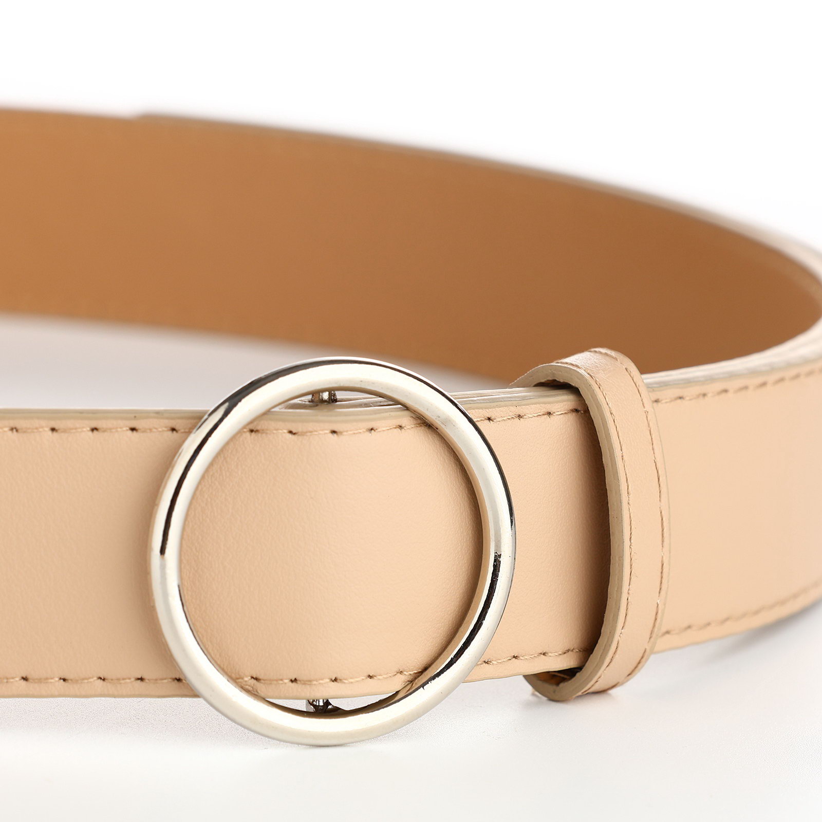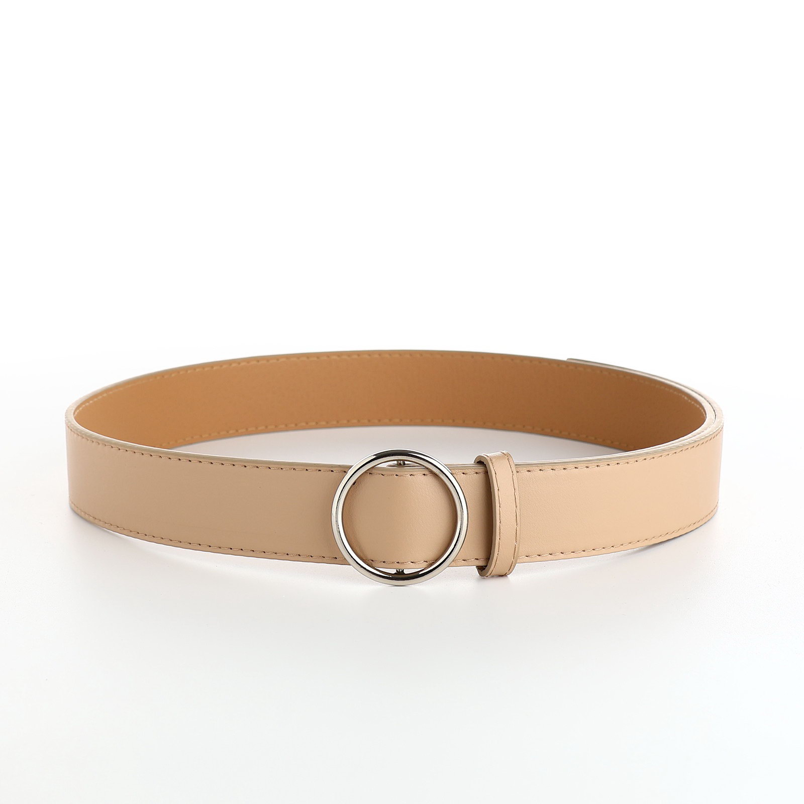 Ремень женский 110x3.5 см, круглая пряжка-затяжка металл, серебристая, бежевый, 3.5x110x0.3 см., Китай