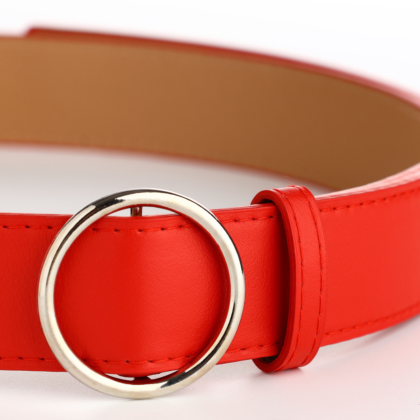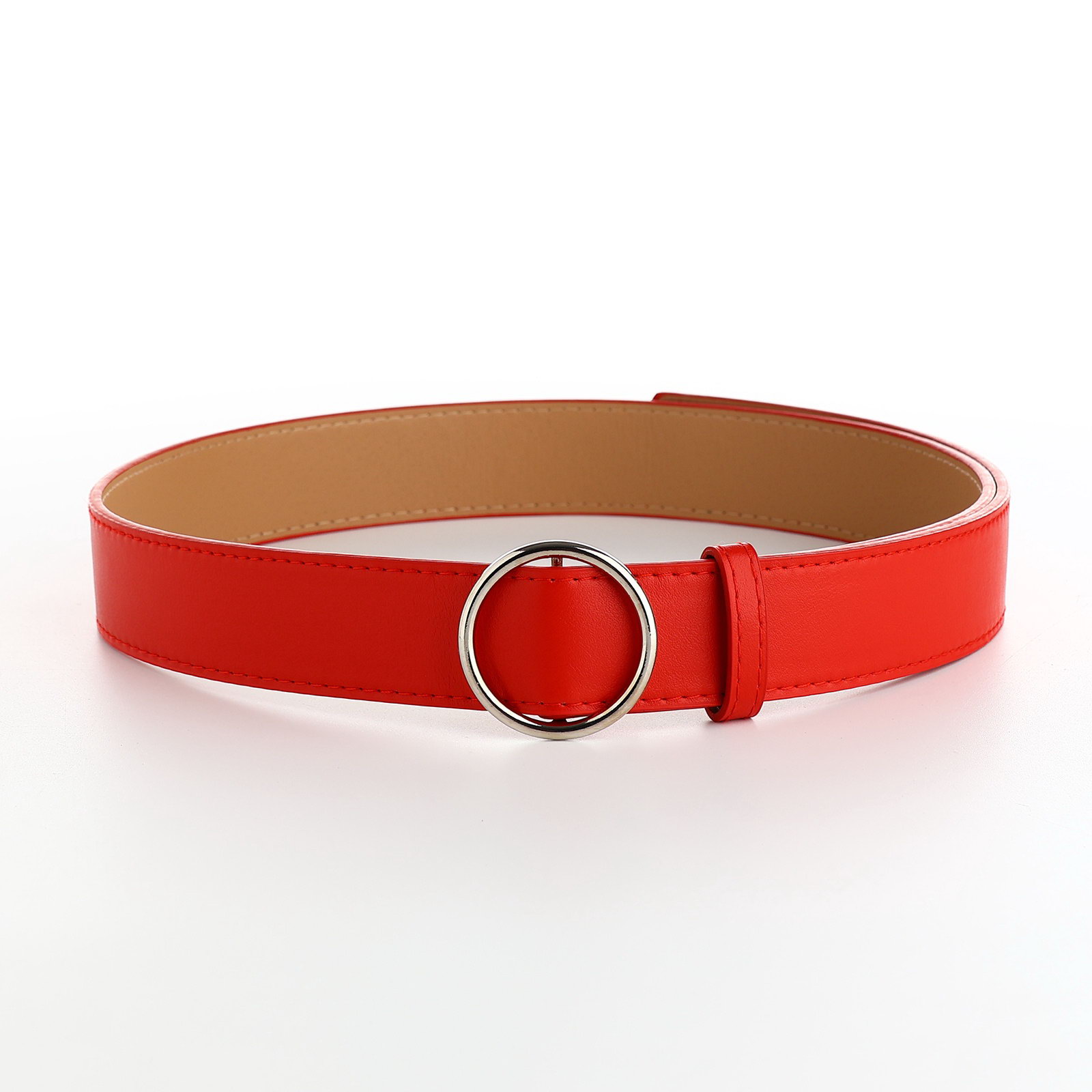 Ремень женский 110x3.5 см, круглая пряжка-затяжка металл, серебристая, красный, 3.5x110x0.3 см., Китай