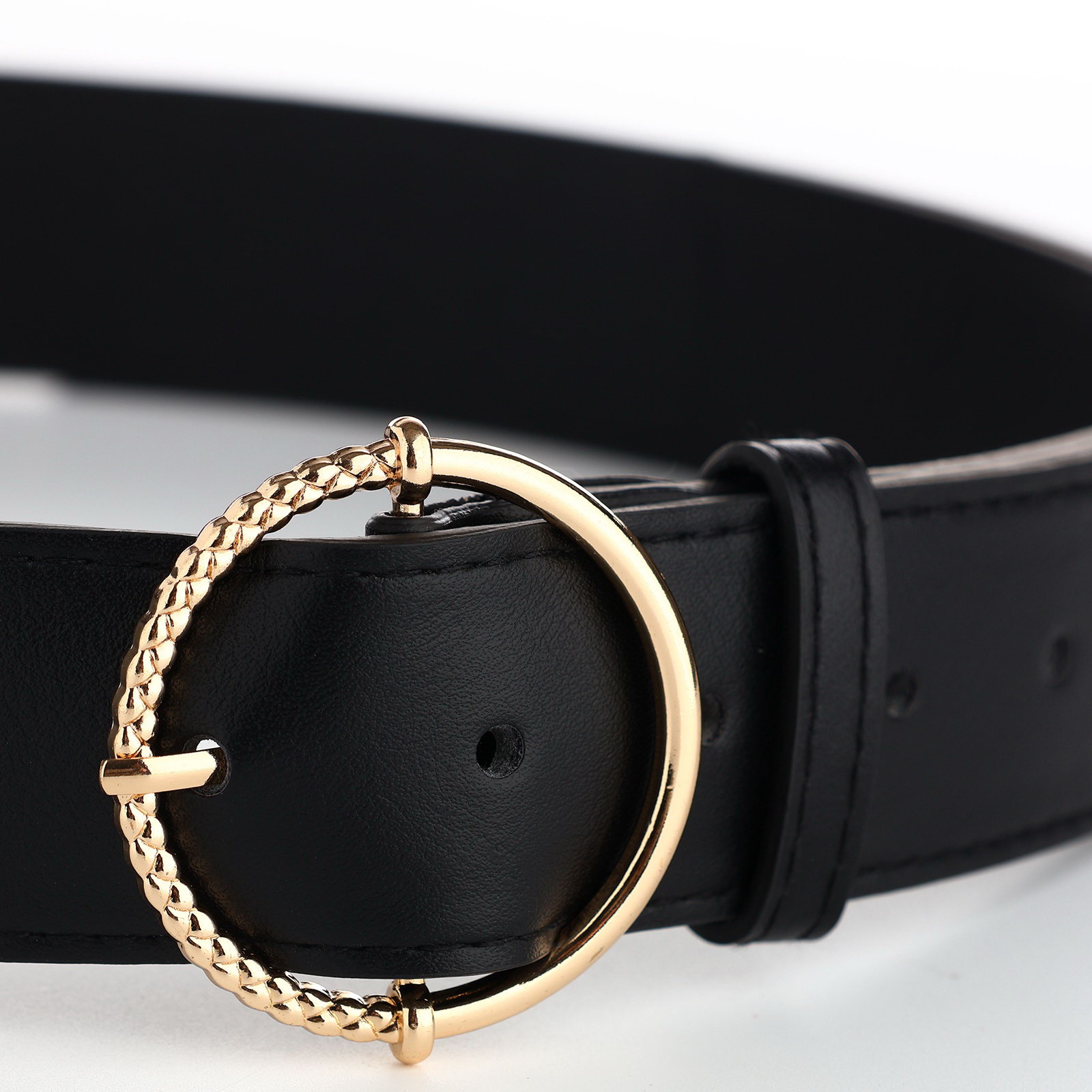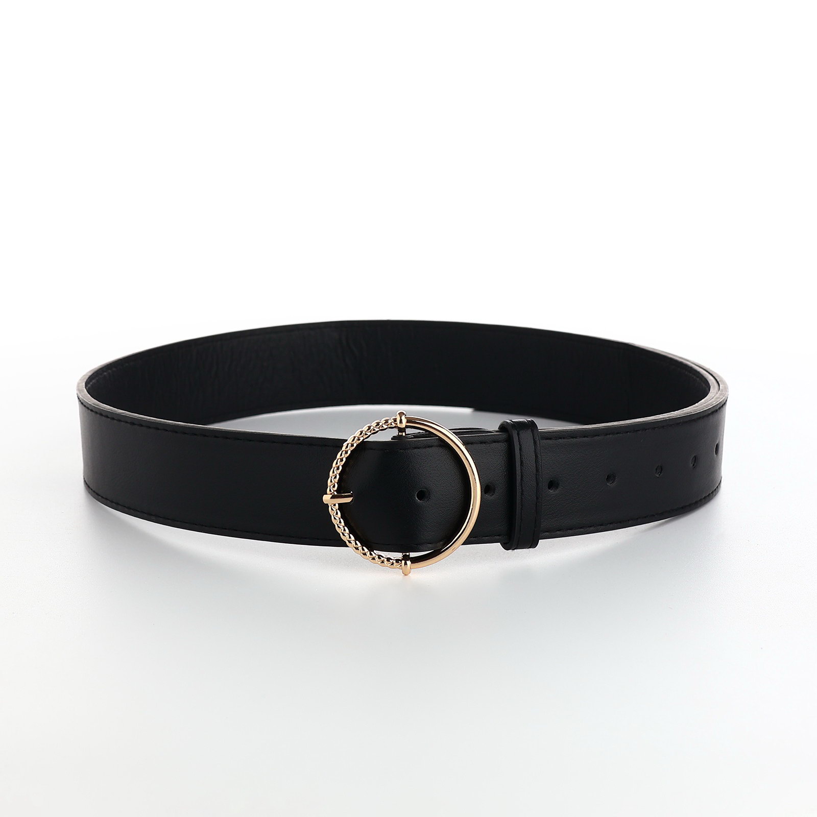 Ремень женский с винтом, 110x4 см, круглая пряжка металл, золотистая, чёрный, 4x110x0.3 см., Китай