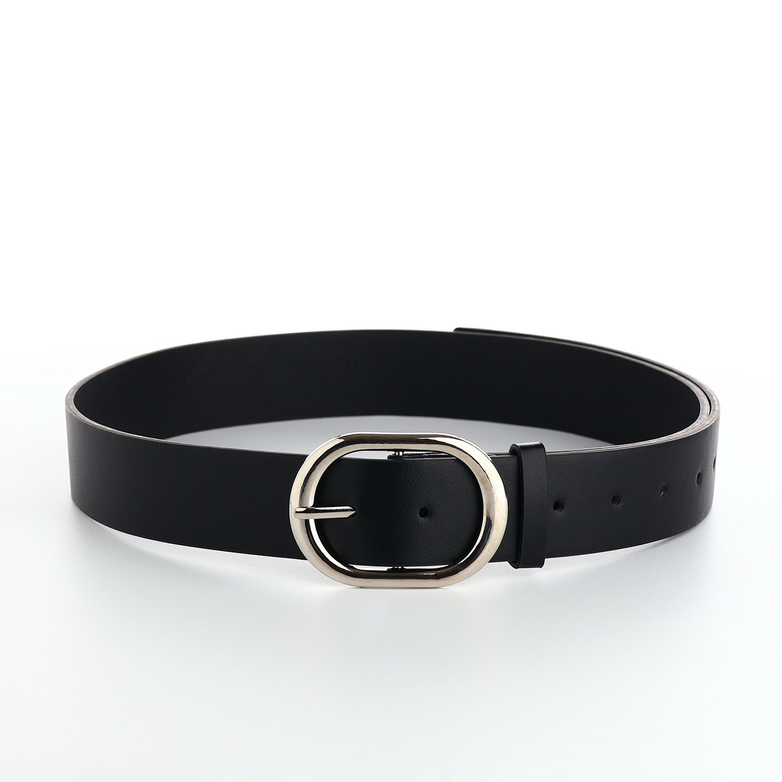 Ремень женский с винтом, 110x4 см, овальная пряжка металл, серебристая, чёрный, 4x110x0.3 см., Китай