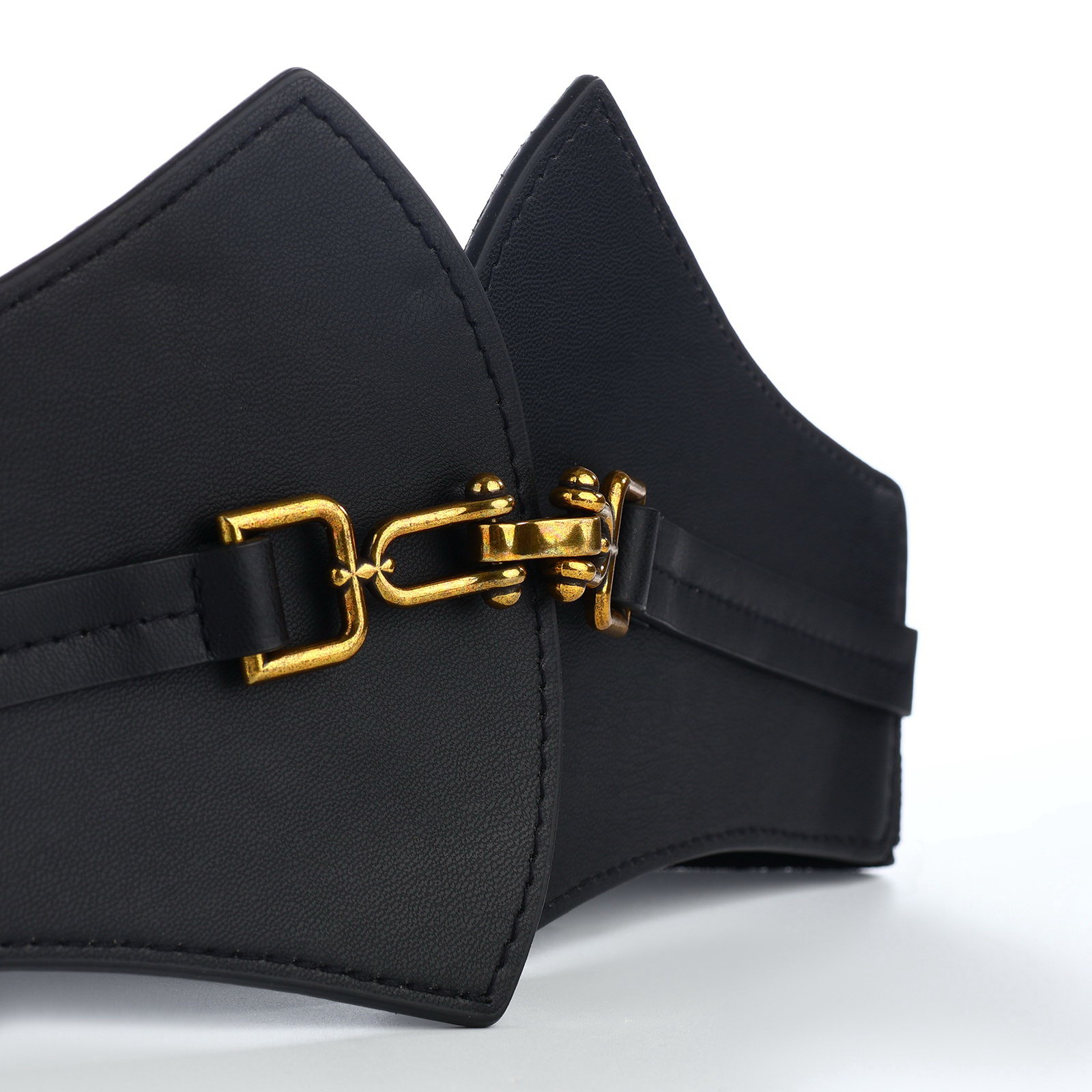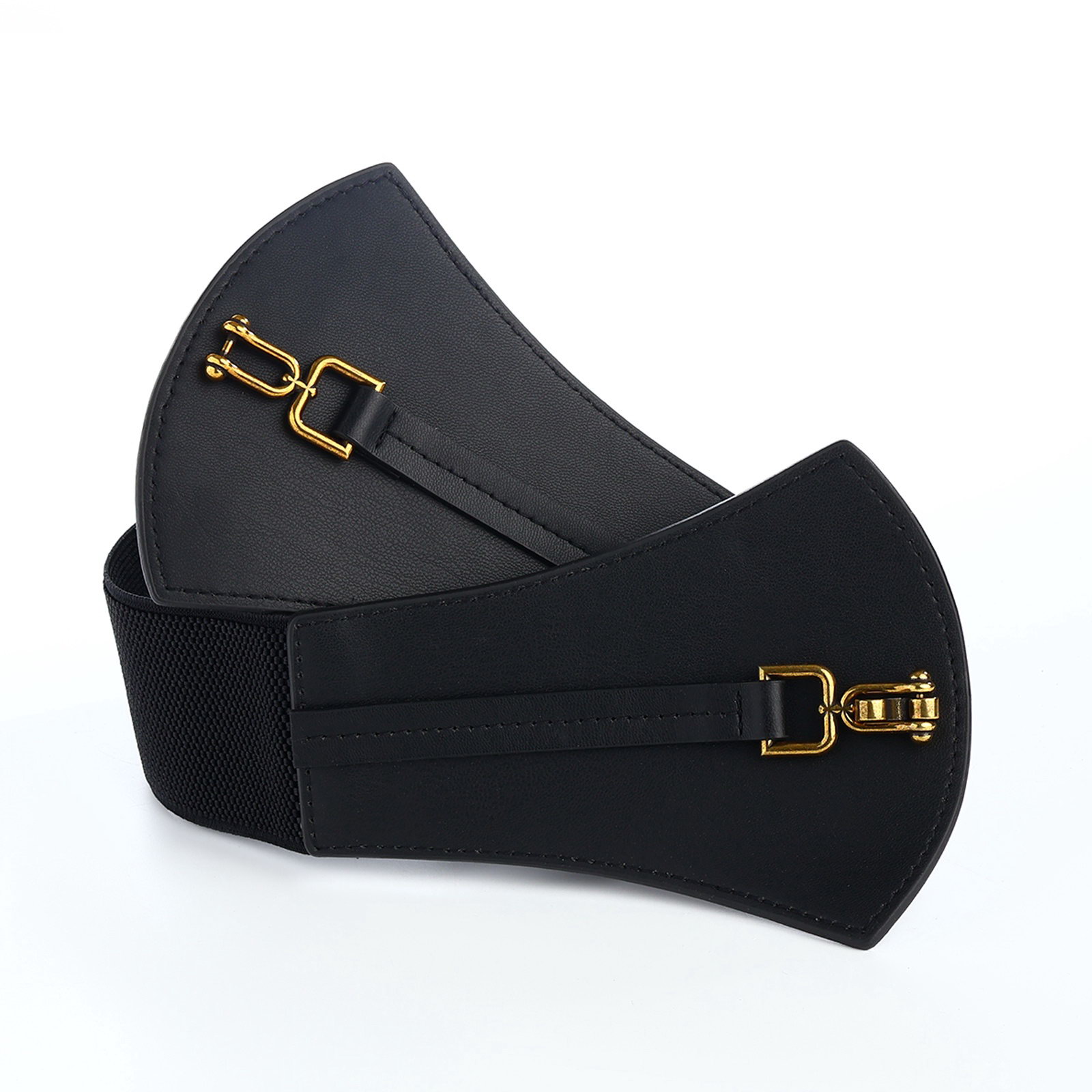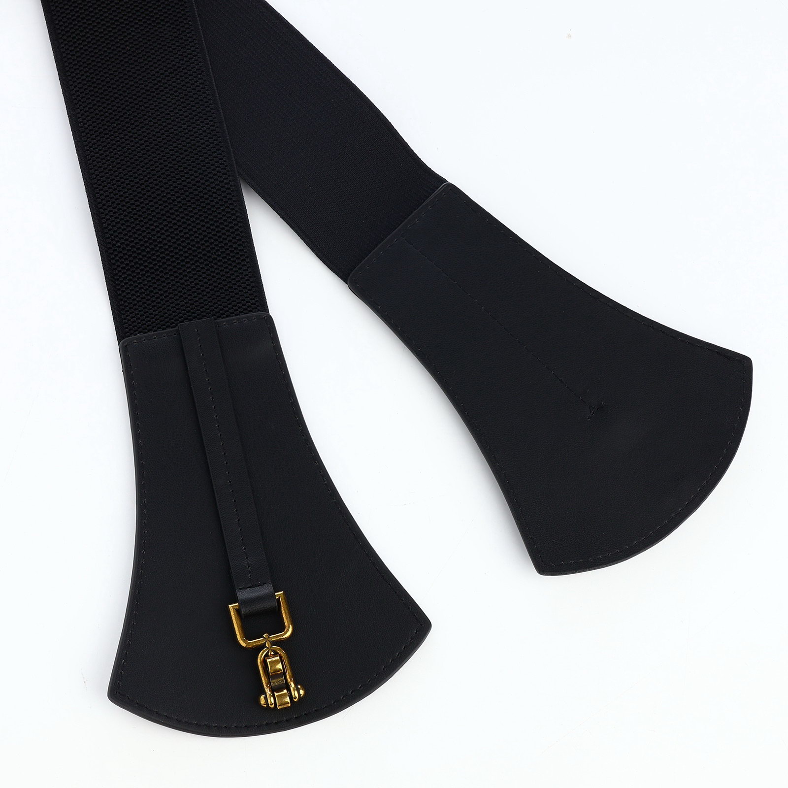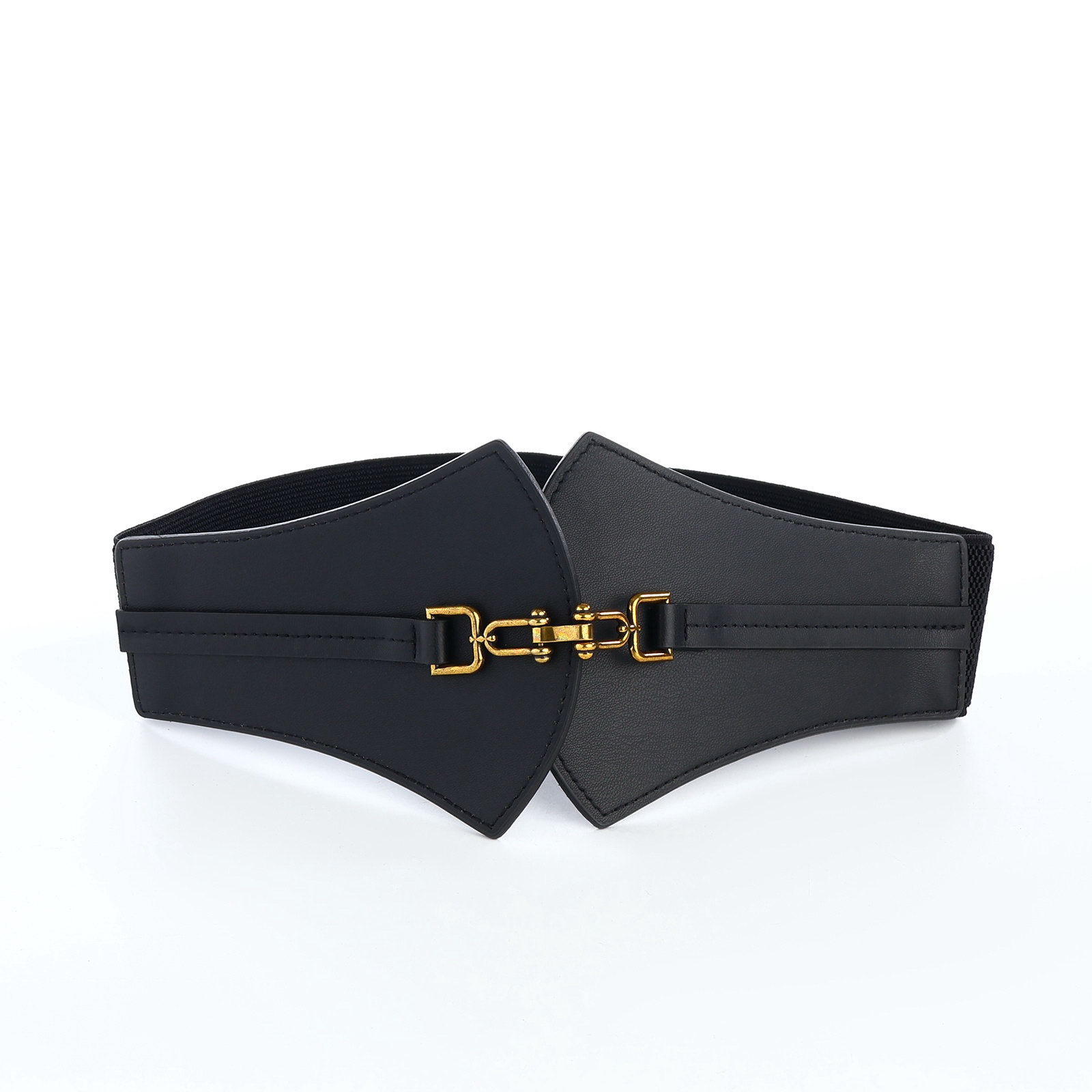 Ремень-резинка женский широкий, 66x12 см, пряжка металл, золотистая, чёрный, 12x66x0.2 см., Китай