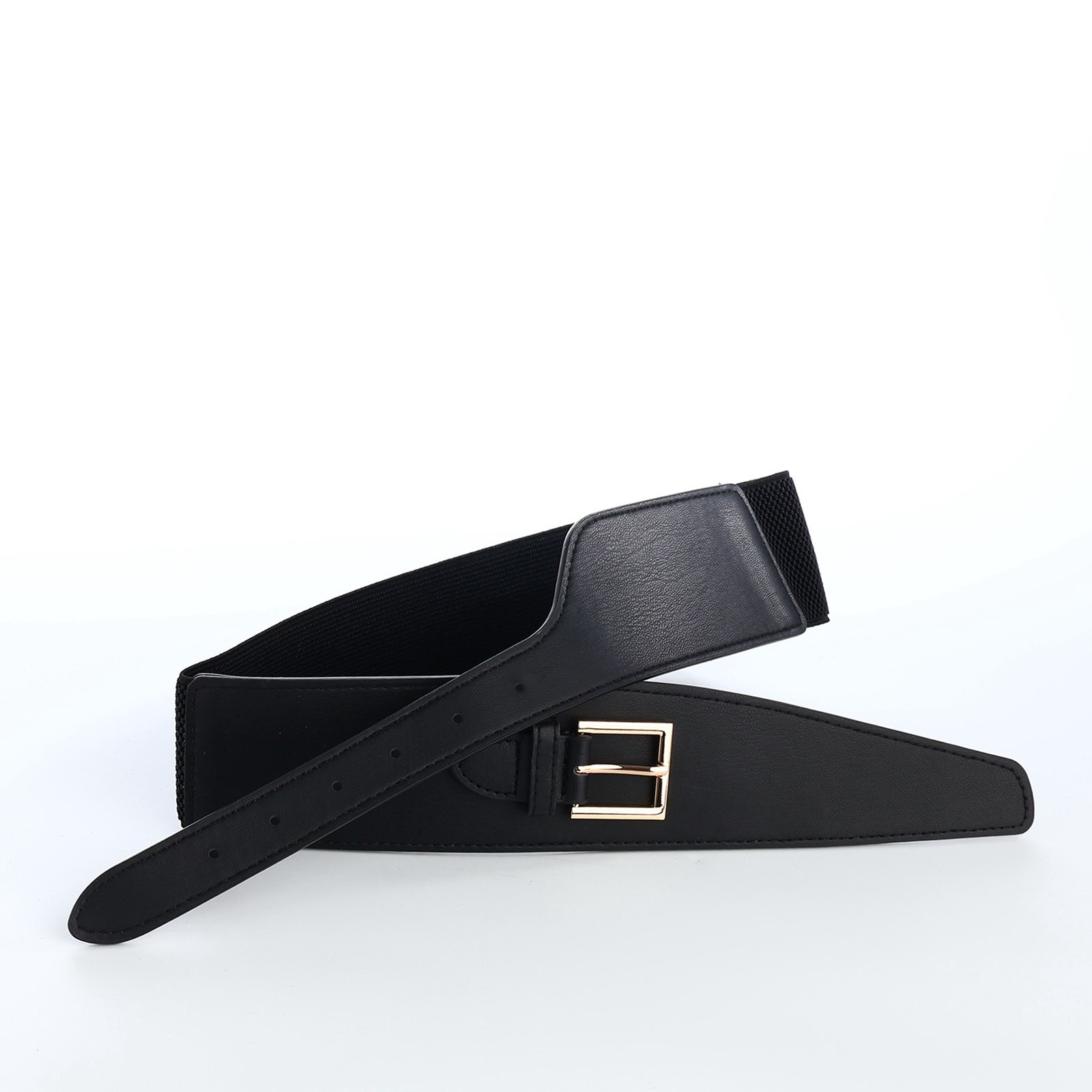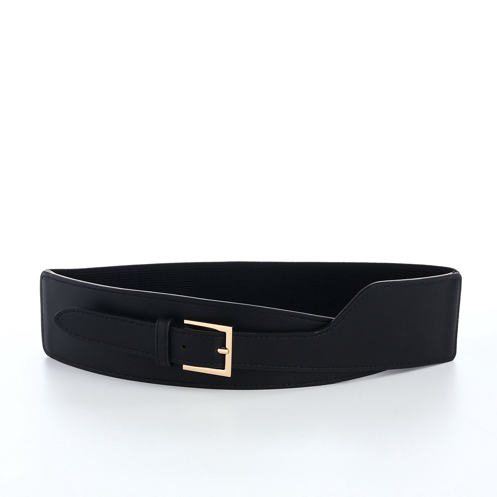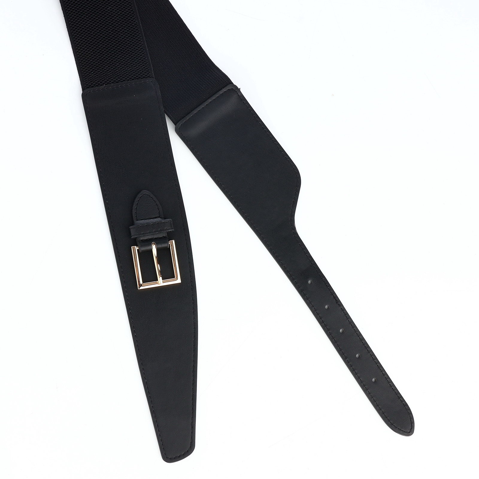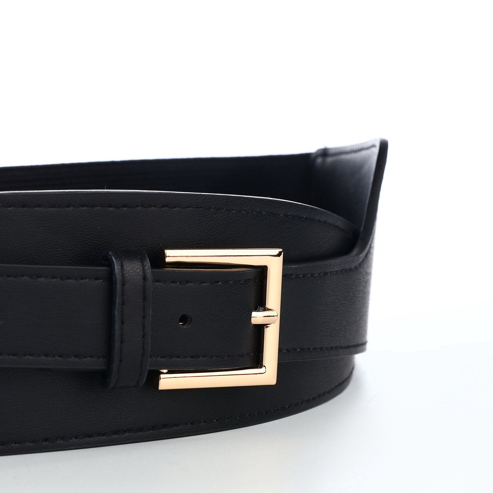 Ремень-резинка женский широкий, 96x6 см, пряжка металл, золотистая, чёрный, 6x96x0.2 см., Китай