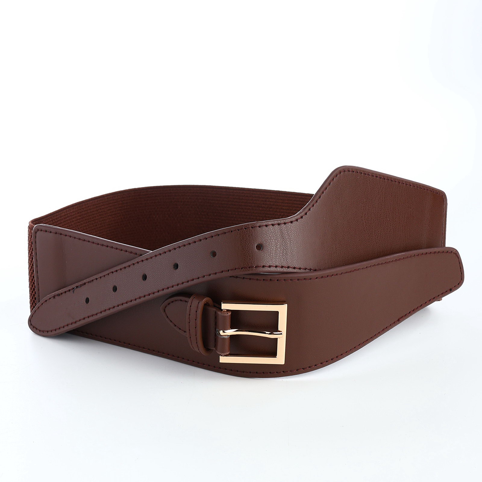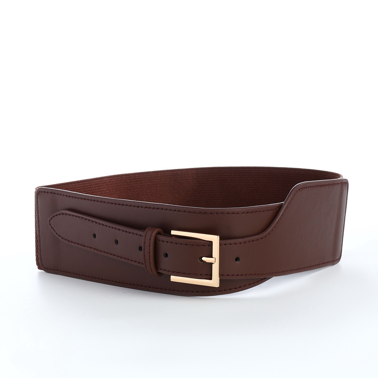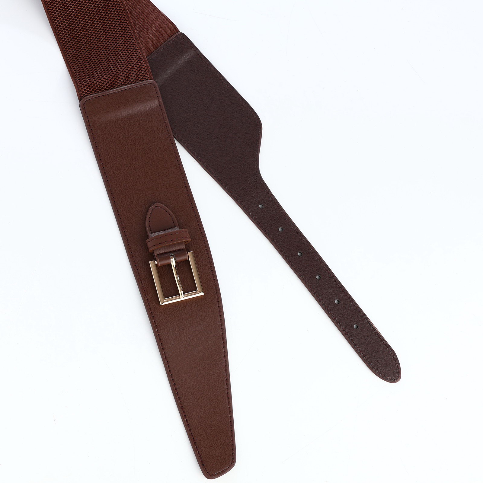 Ремень-резинка женский широкий, 96x6 см, пряжка металл, золотистая, коричневый, 6x96x0.2 см., Китай