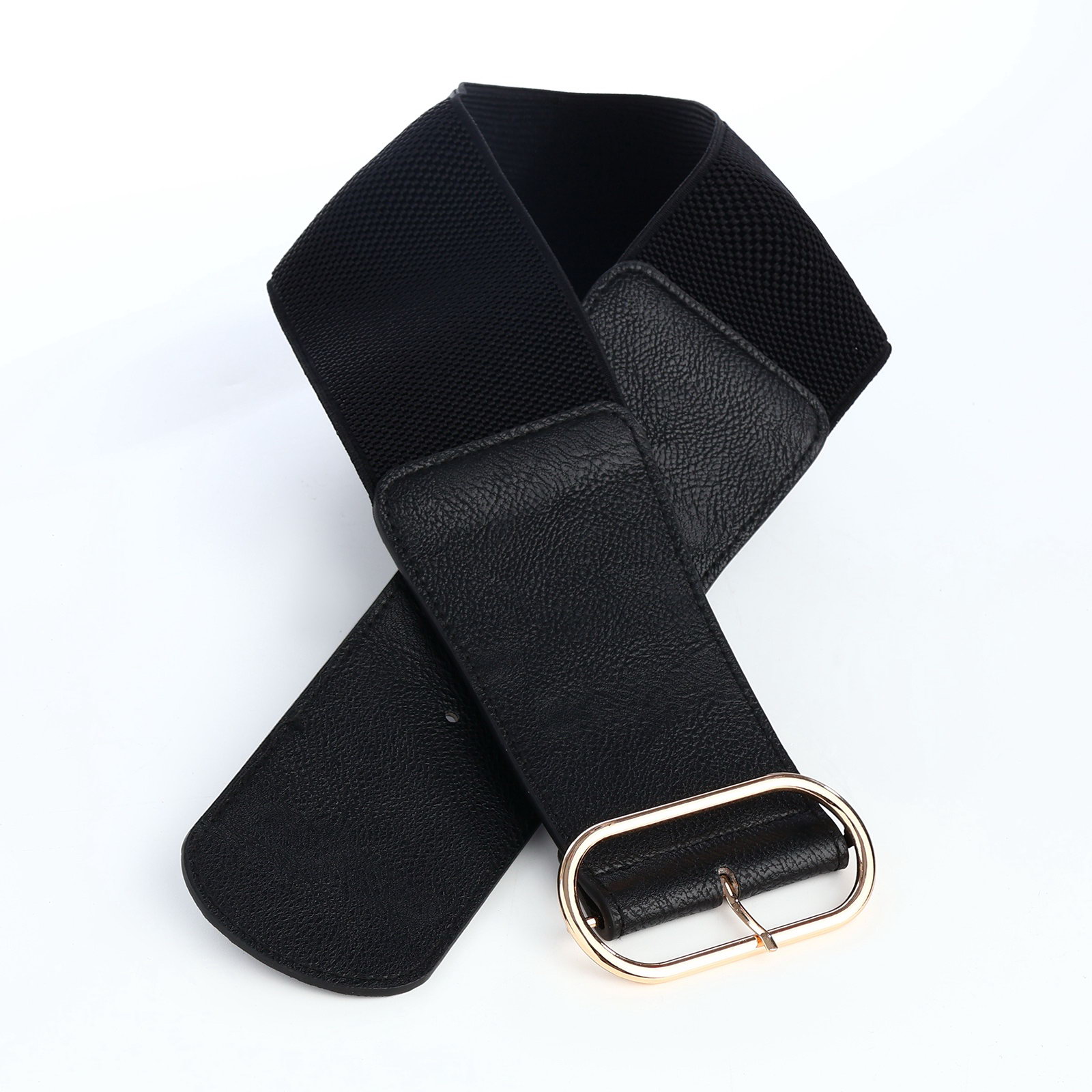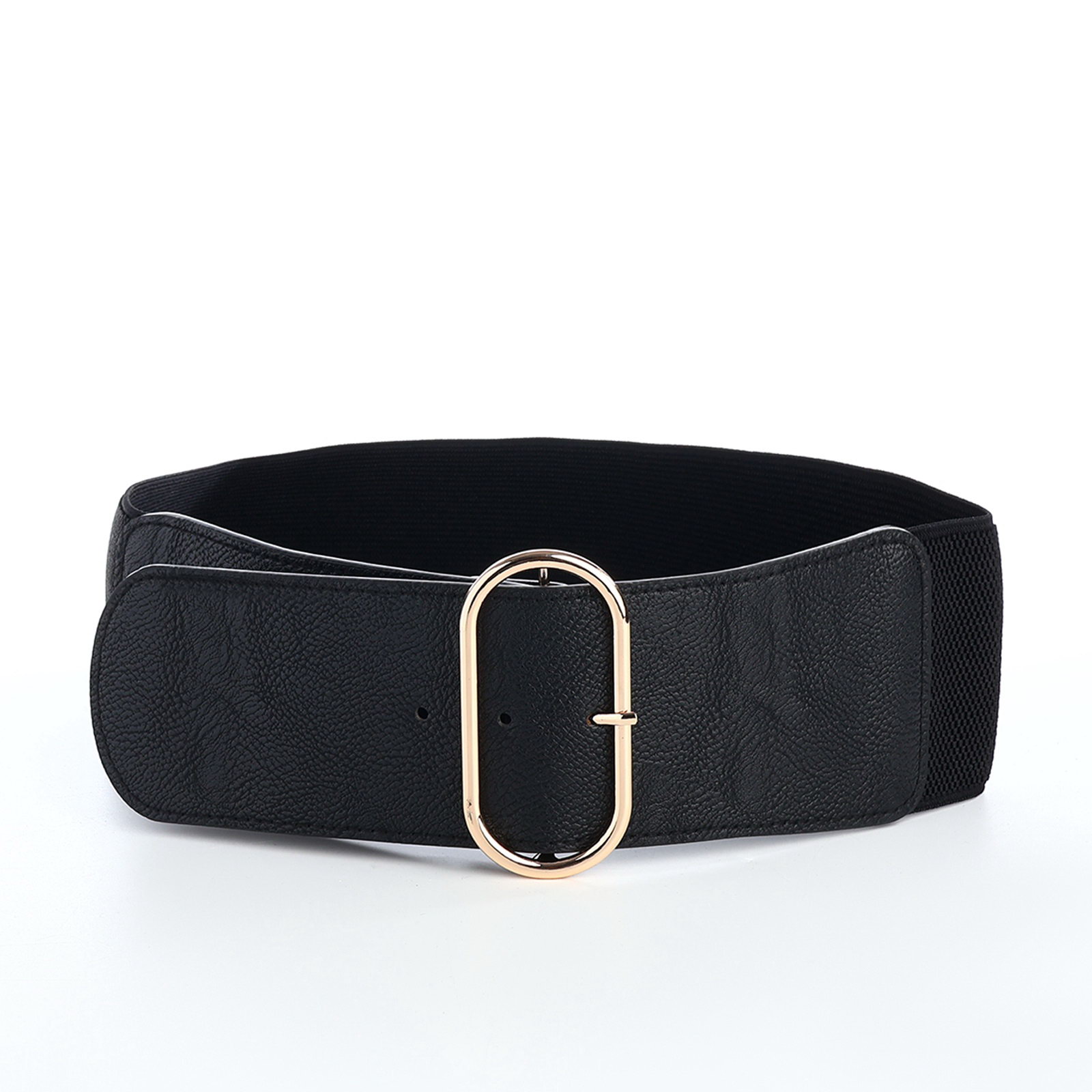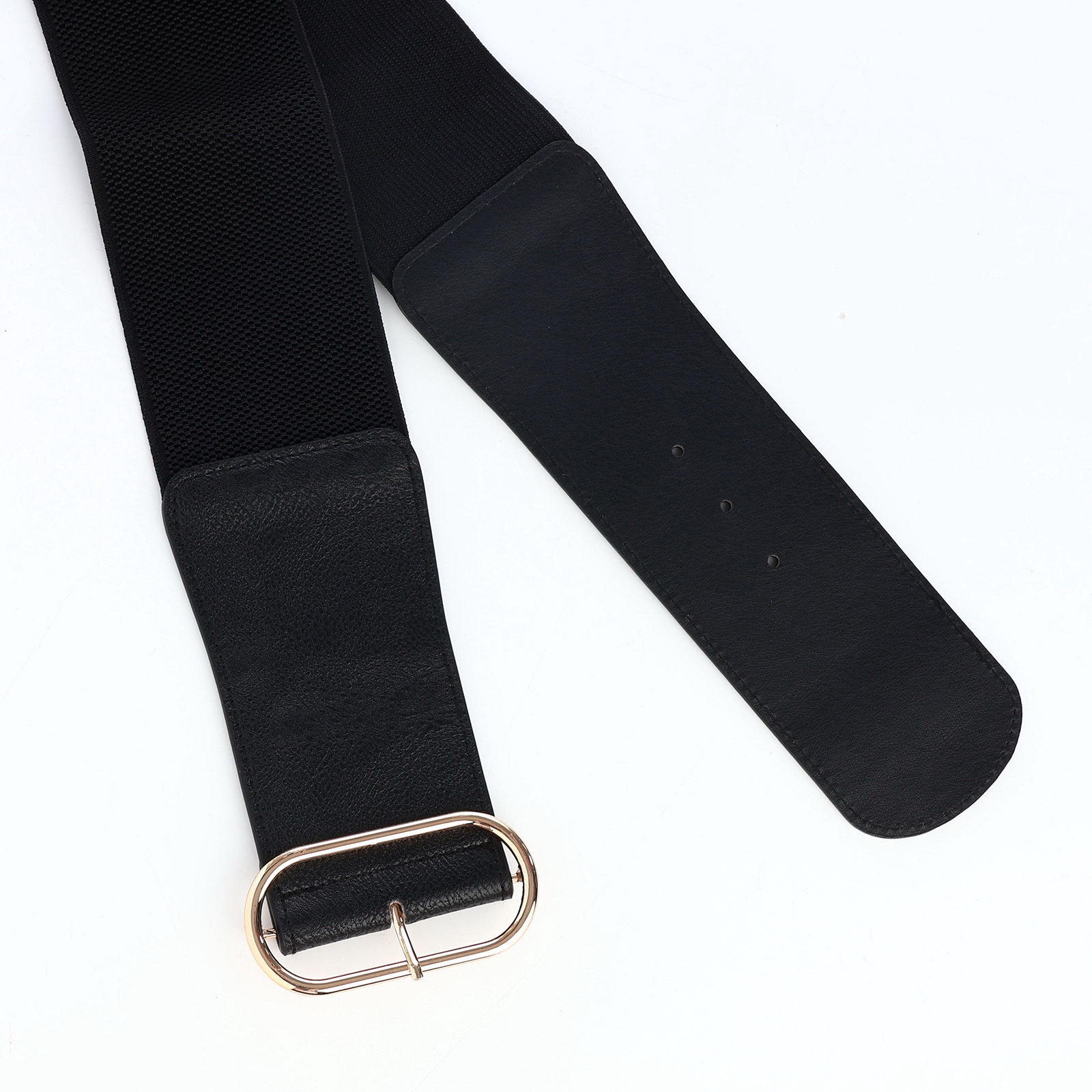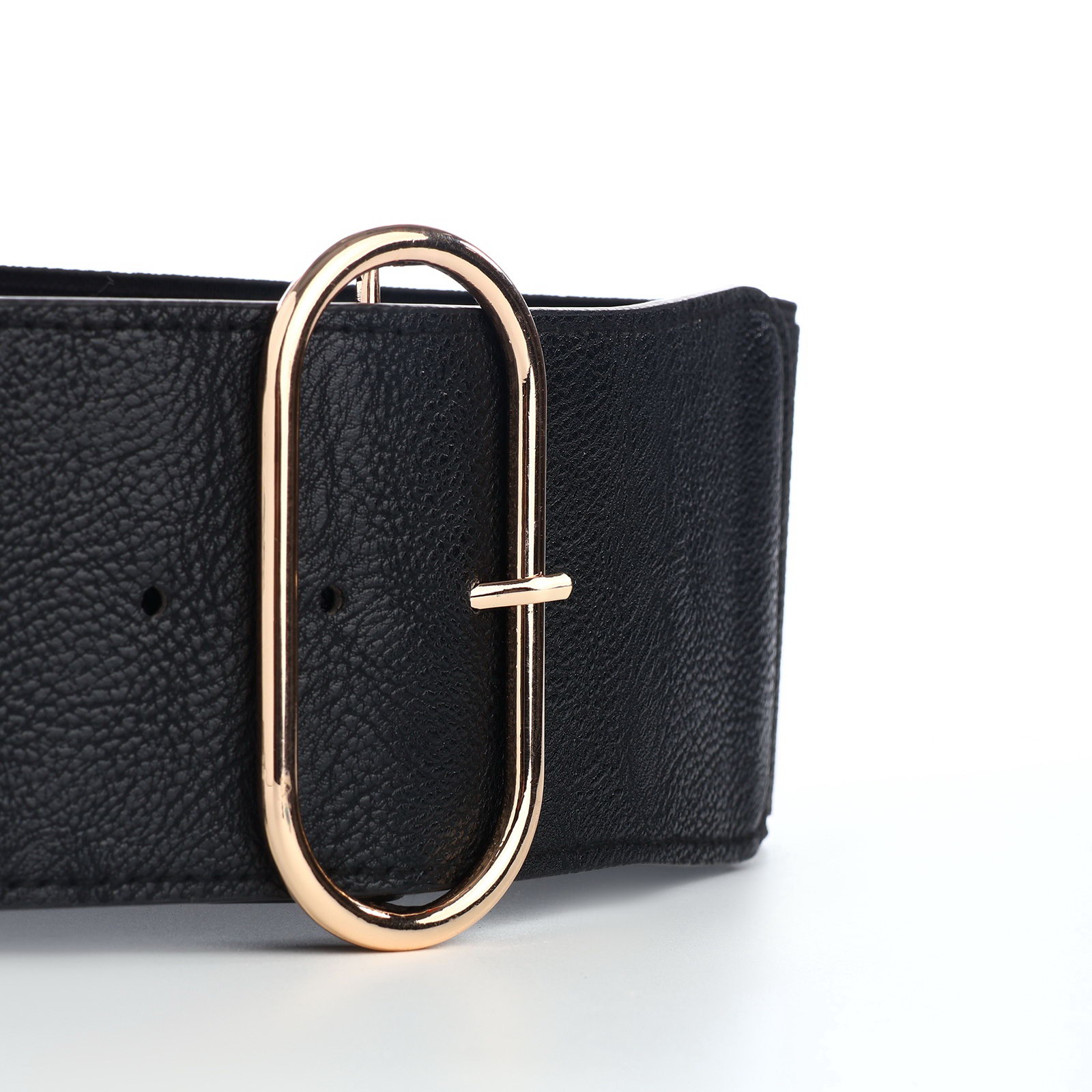 Ремень-резинка женский широкий, 78x7 см, пряжка металл, золотистая, чёрный, 7x78x0.2 см., Китай