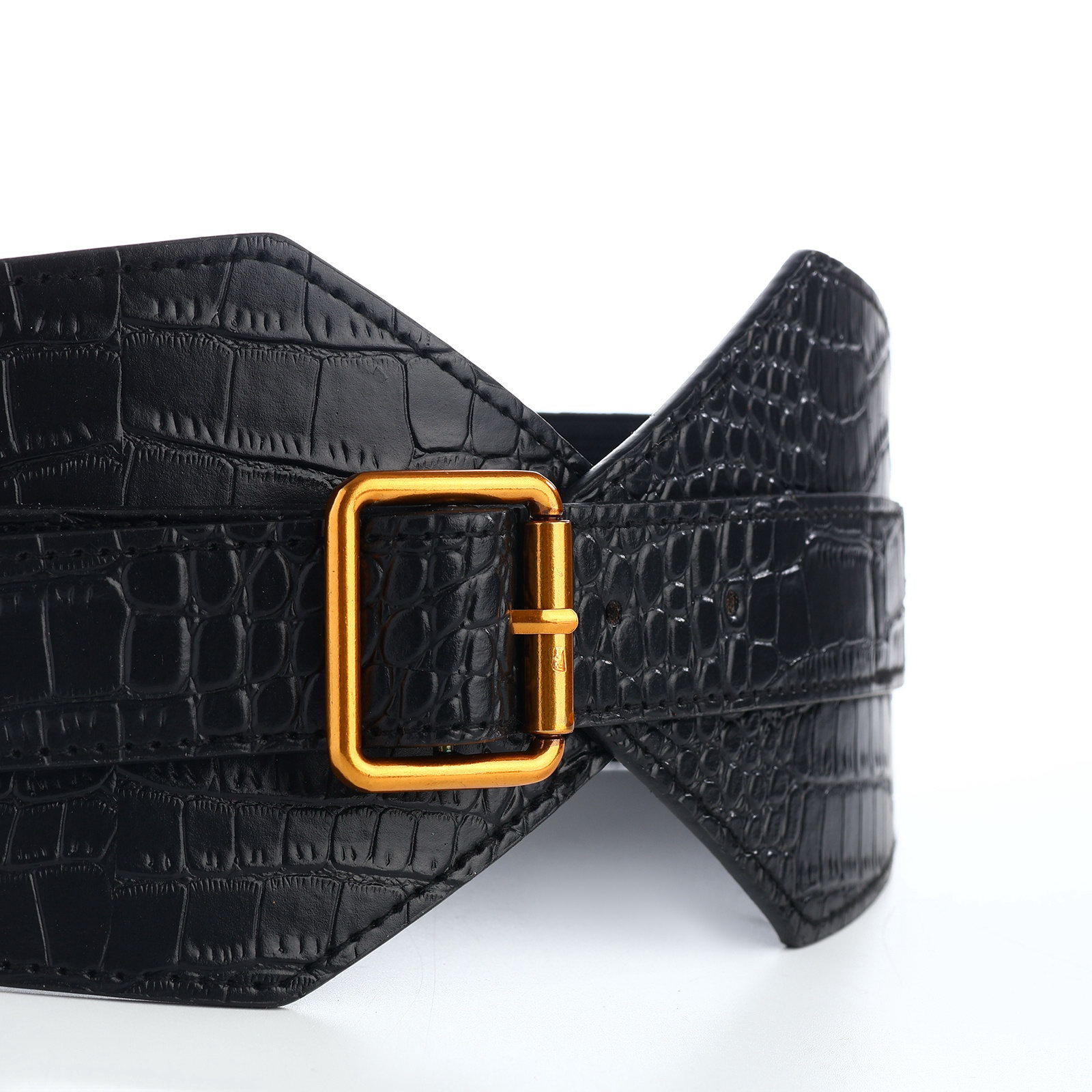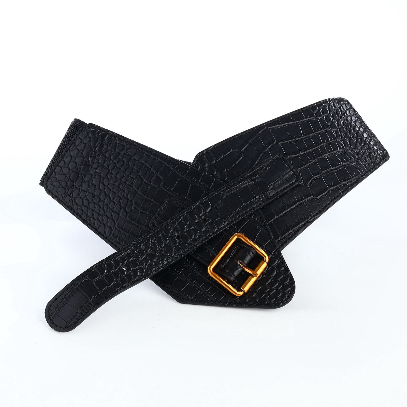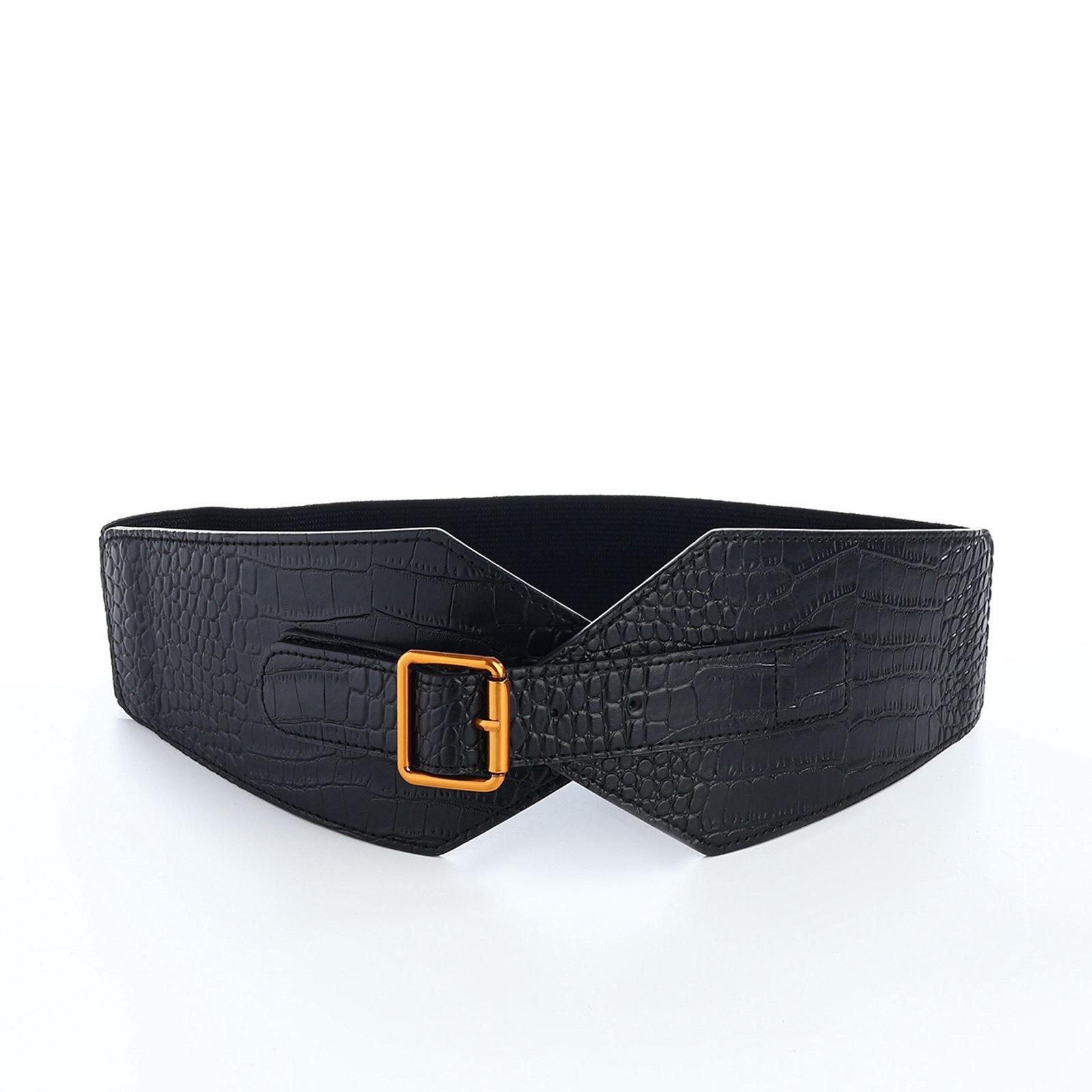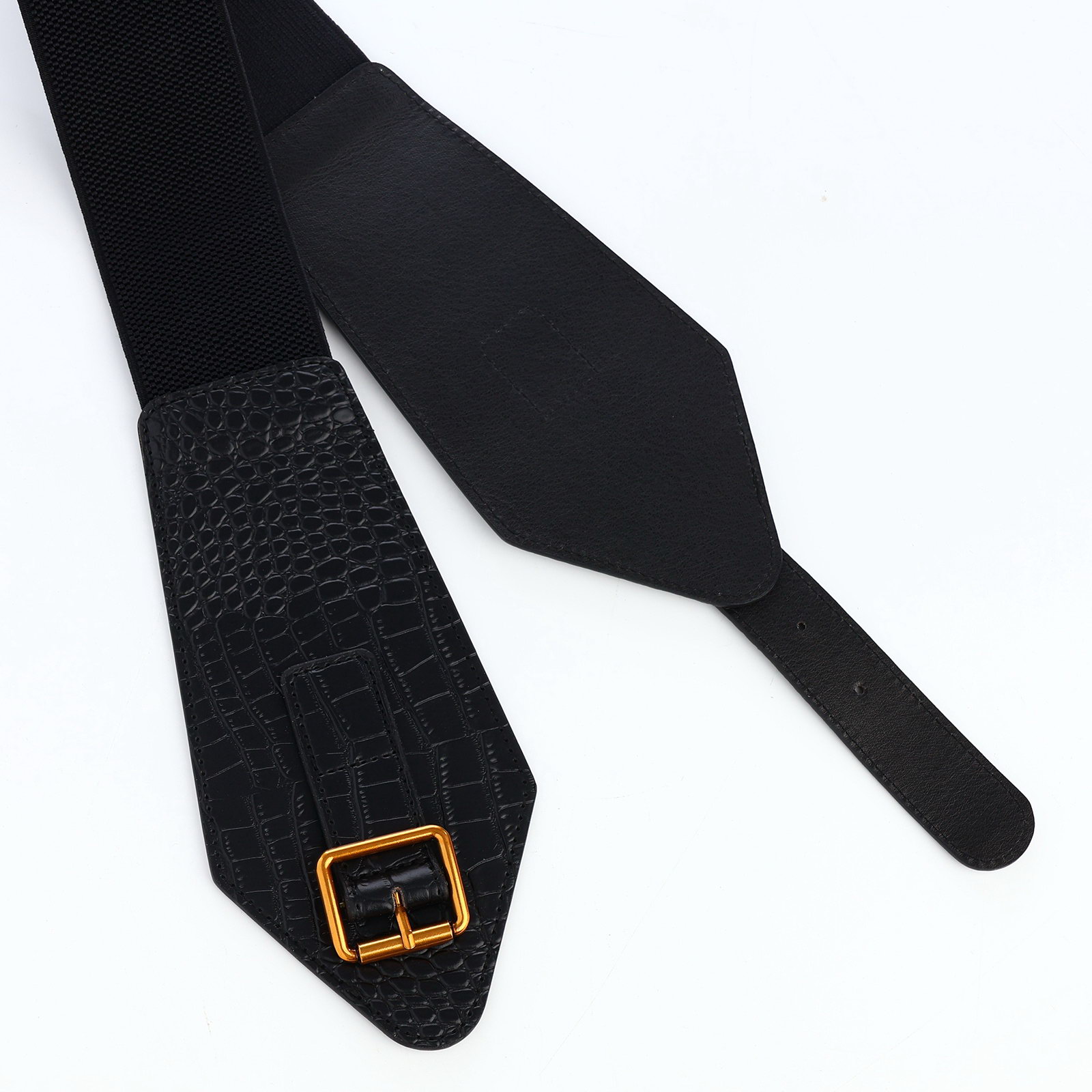 Ремень женский широкий, 85x10 см, пряжка металл, золотистая, чёрный, 10x85x0.2 см., Китай
