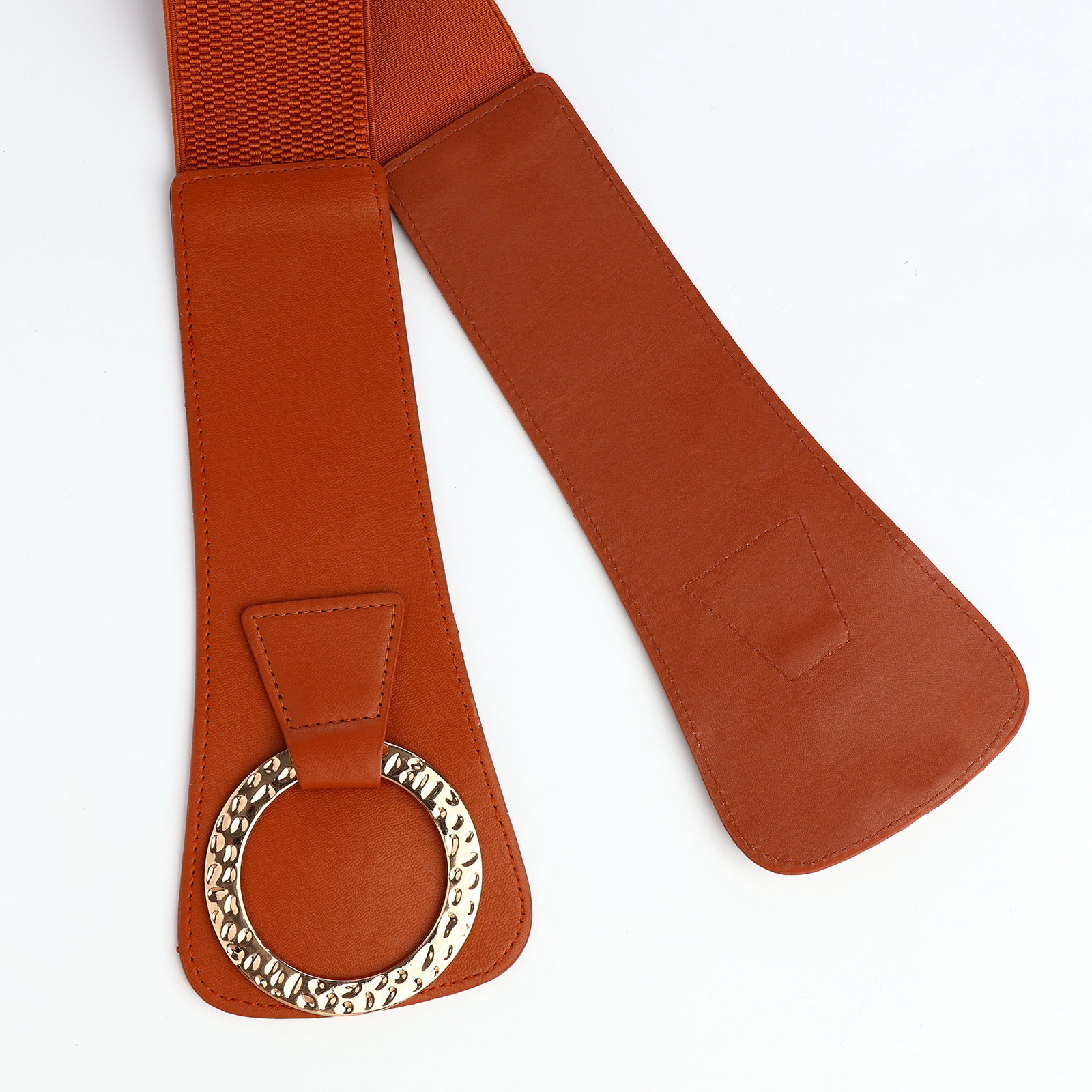 Ремень-резинка женский широкий, 80x10 см, пряжка металл, золотистая, рыжий, 10x80x0.3 см., Китай
