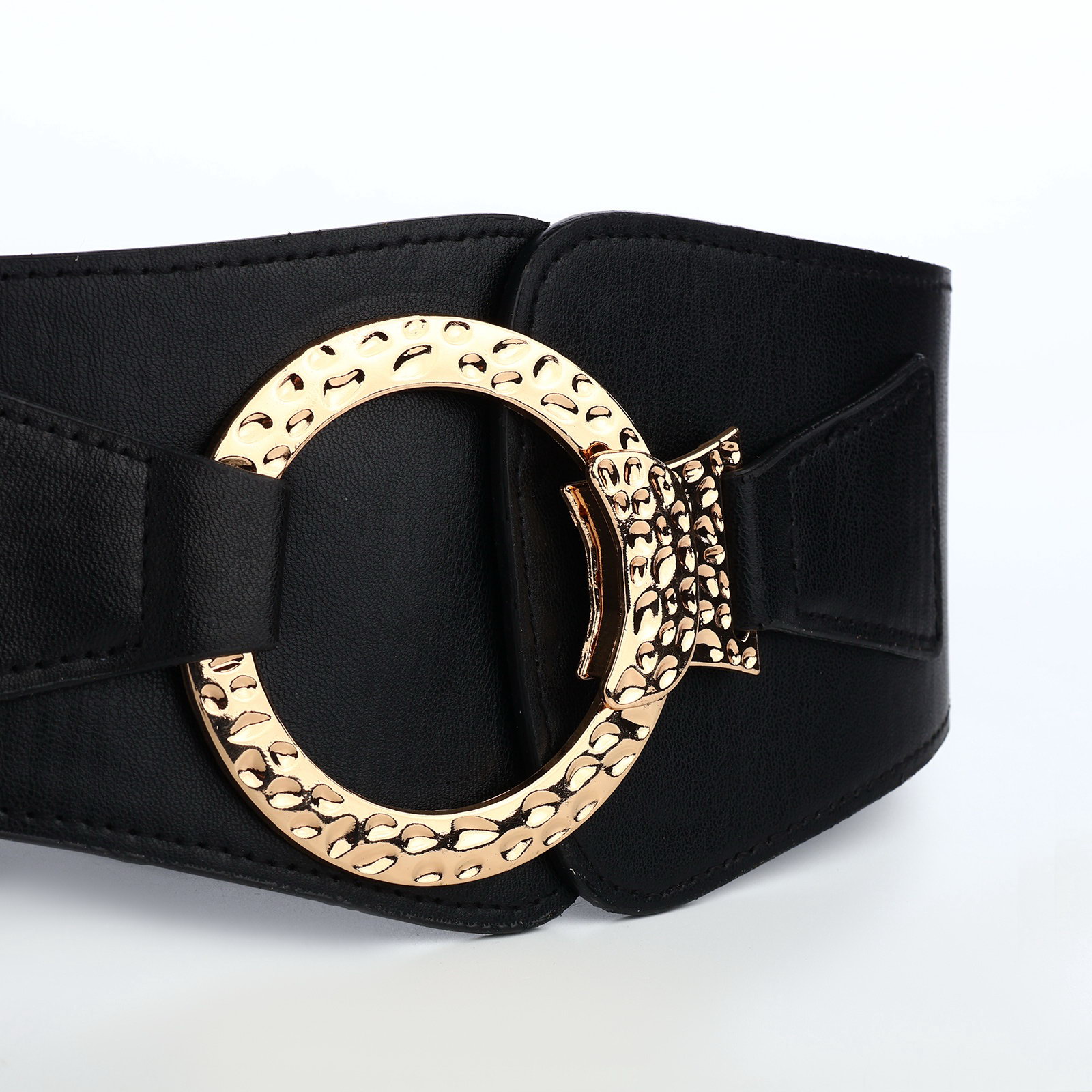 Ремень-резинка женский широкий, 80x10 см, пряжка металл, золотистая, чёрный, 10x80x0.3 см., Китай