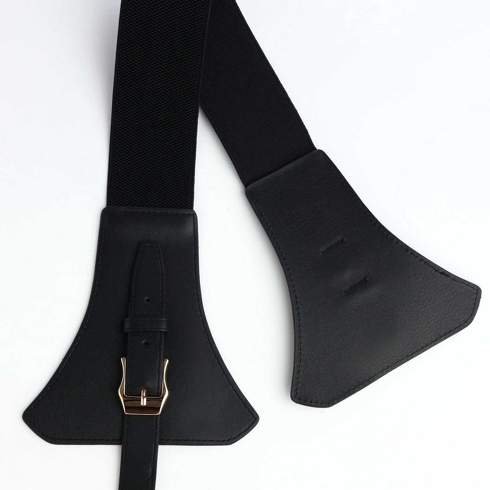 Ремень-резинка женский широкий, 68x15 см, пряжка металл, золотистая, чёрный, 15x68x0.3 см., Китай