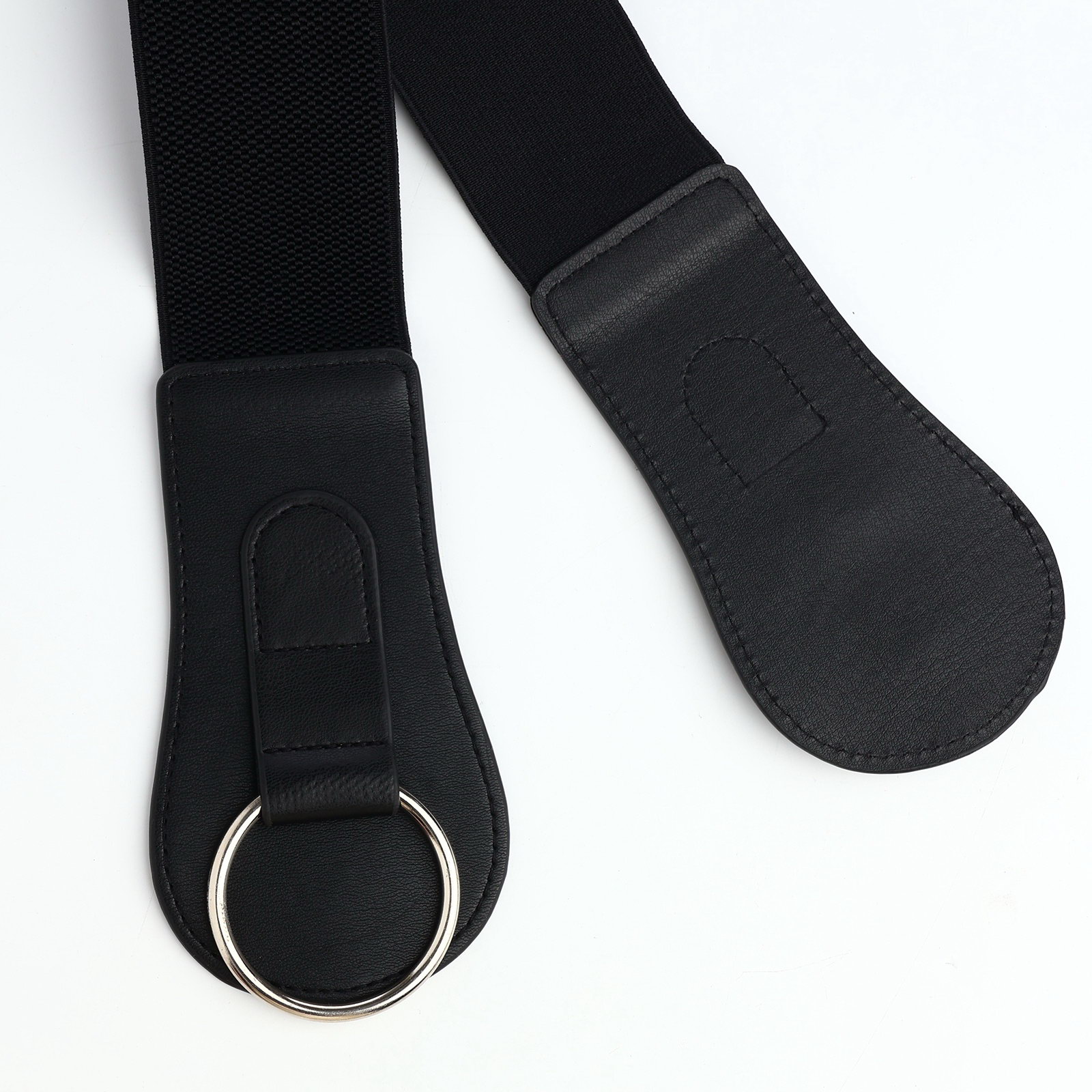 Ремень-резинка женский широкий, 63x8.5 см, пряжка-зацепка металл, серебристая, чёрный, 8.5x63x0.3 см., Китай