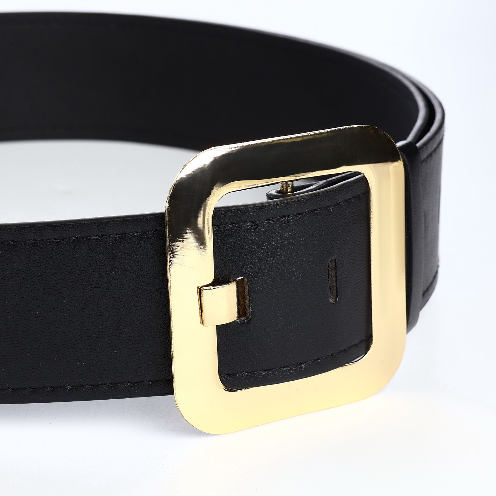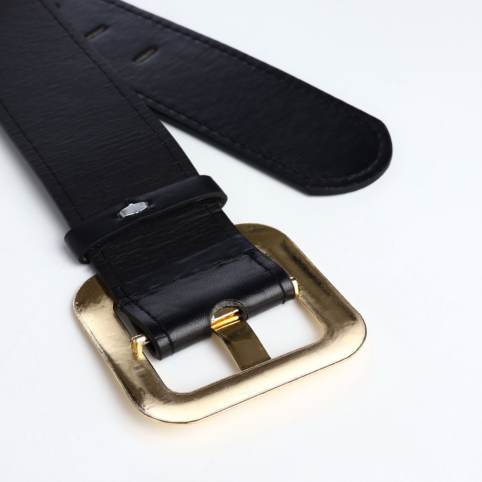Ремень женский, 110x4.8 см, квадратная пряжка, золотистая, чёрный, 4.8x110x0.3 см., Китай