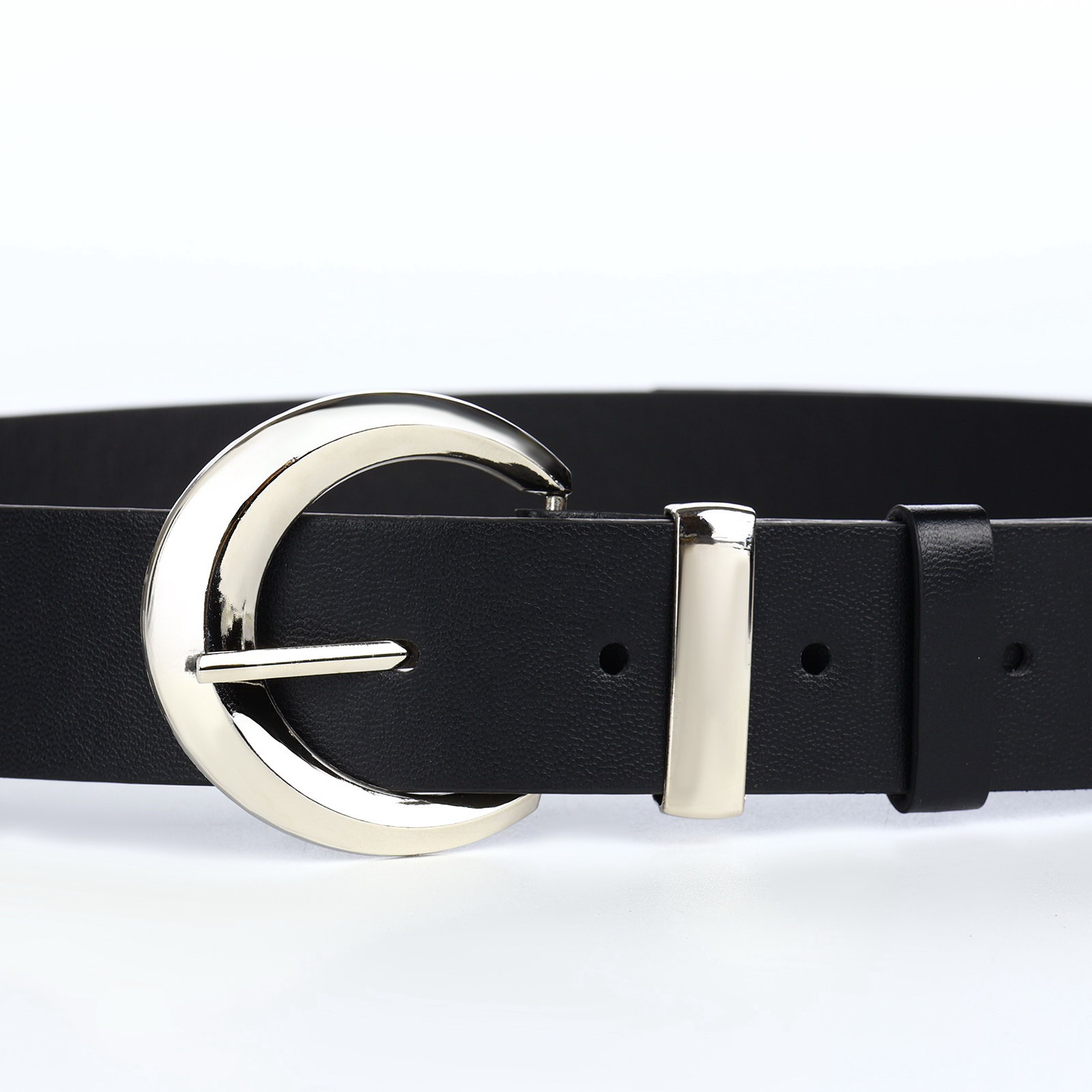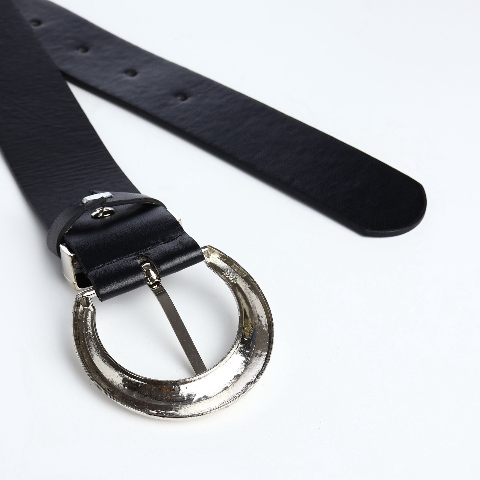 Ремень женский с винтом, 110x3.3 см, пряжка металл, серебристая, чёрный, 3.3x110x0.3 см., Китай