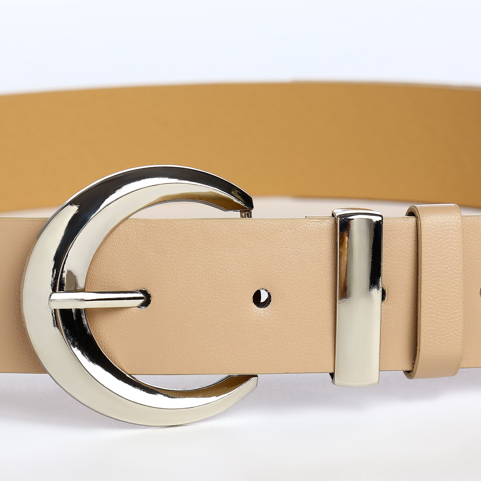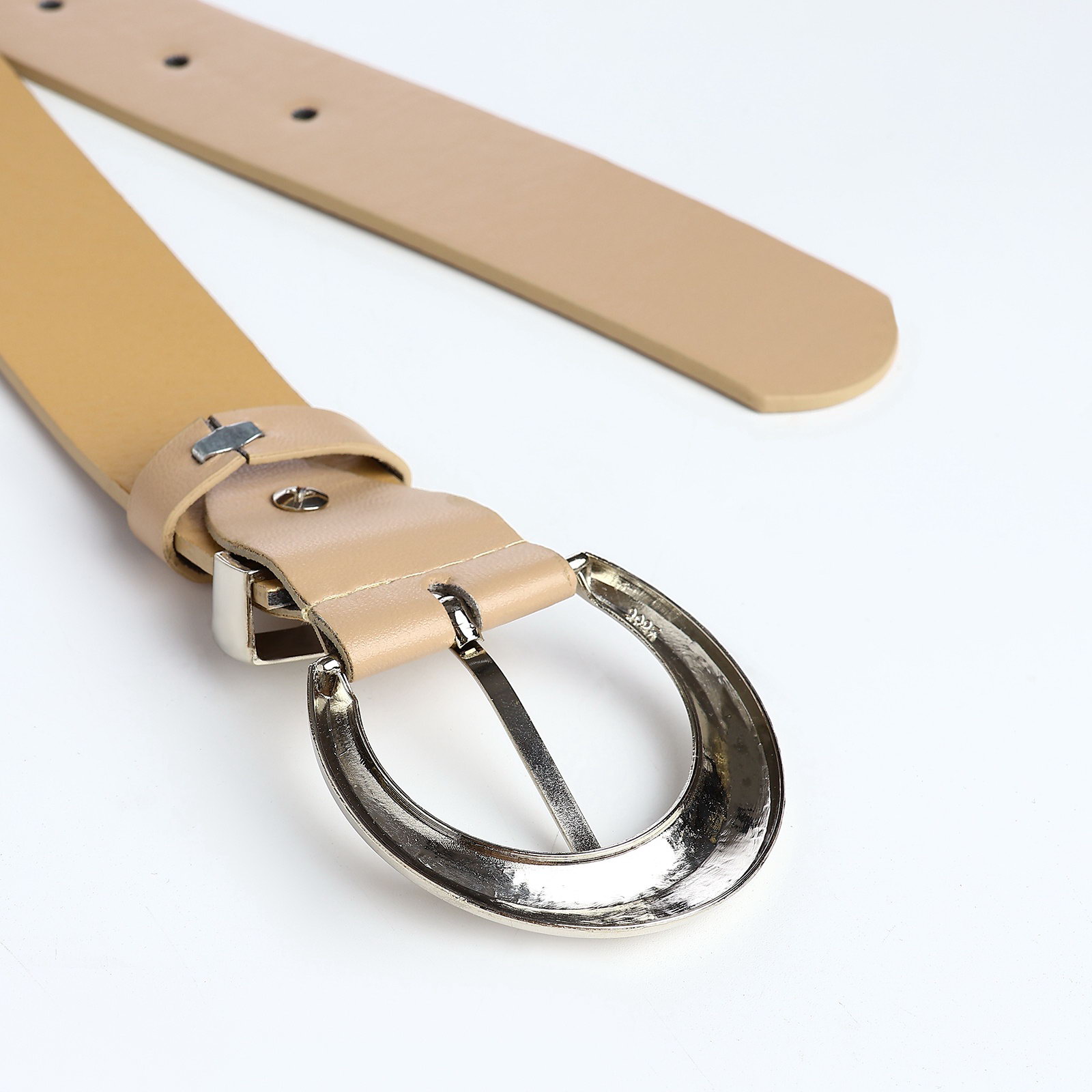 Ремень женский с винтом, 110x3.3 см, пряжка металл, серебристая, бежевый, 3.3x110x0.3 см., Китай