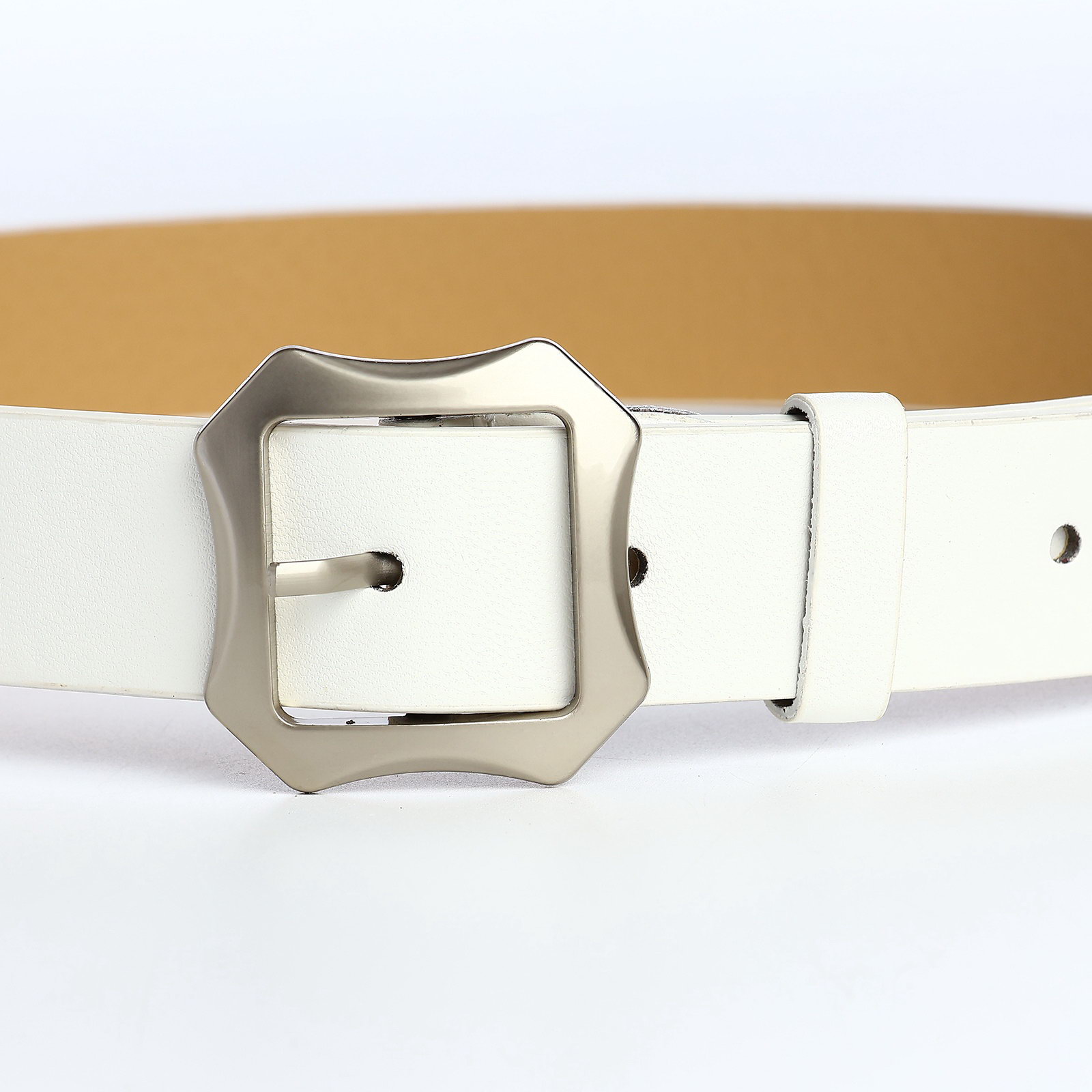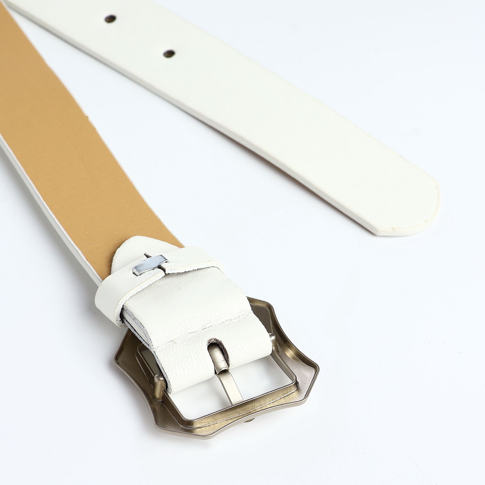Ремень женский с винтом, 110x2.5 см, матовая классическая пряжка металл, белый, 2.5x110x0.3 см., Китай