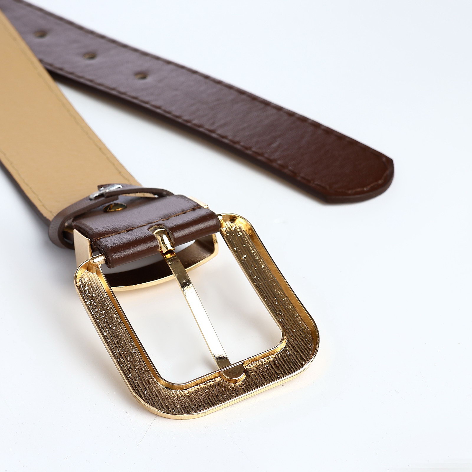 Ремень женский с винтом, 110x3 см, пряжка металл, золотистая, коричневый, 3x110x0.3 см., Китай