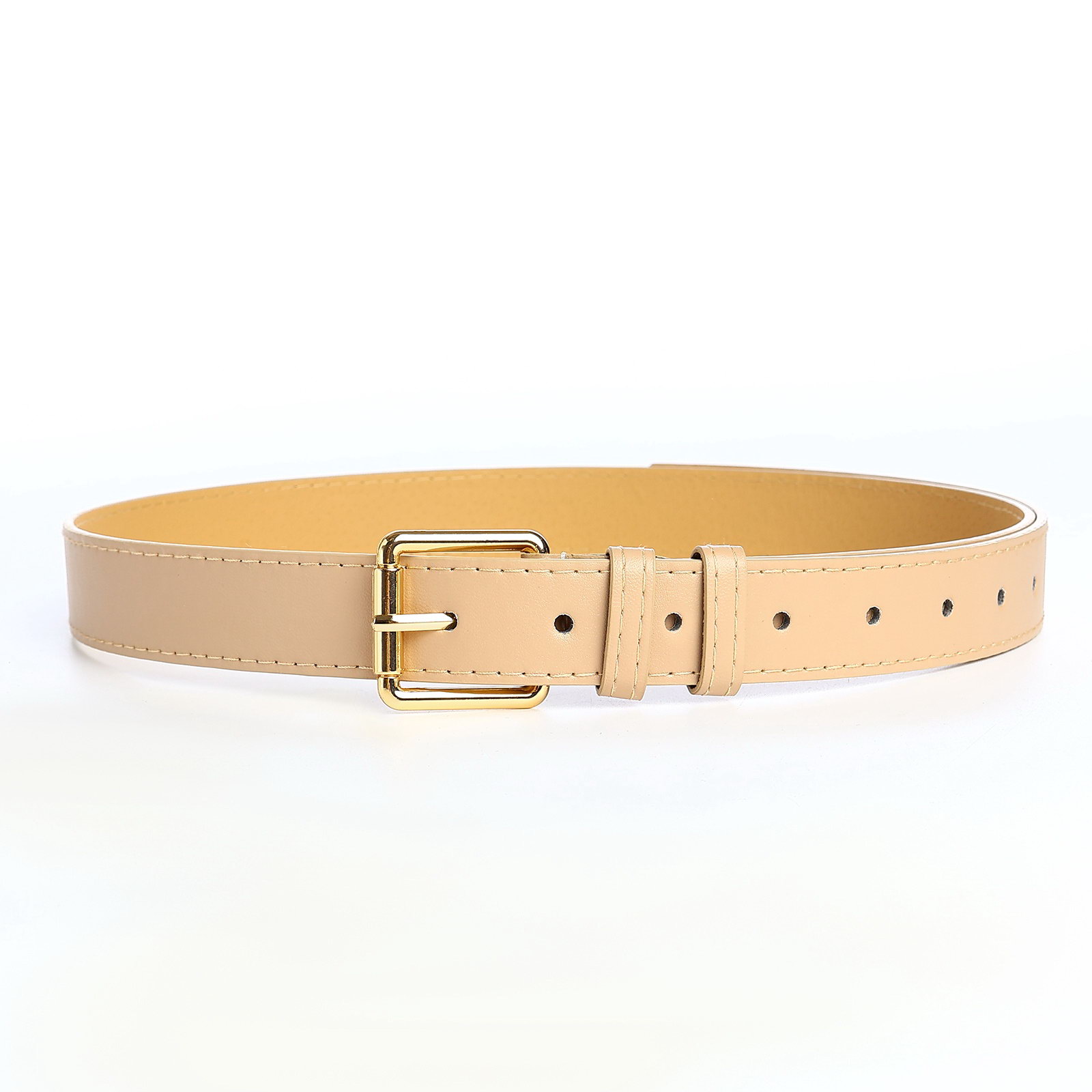 Ремень женский с винтом, 110x3 см, классическая пряжка металл, золотистая, бежевый, 3x110x0.3 см., Китай