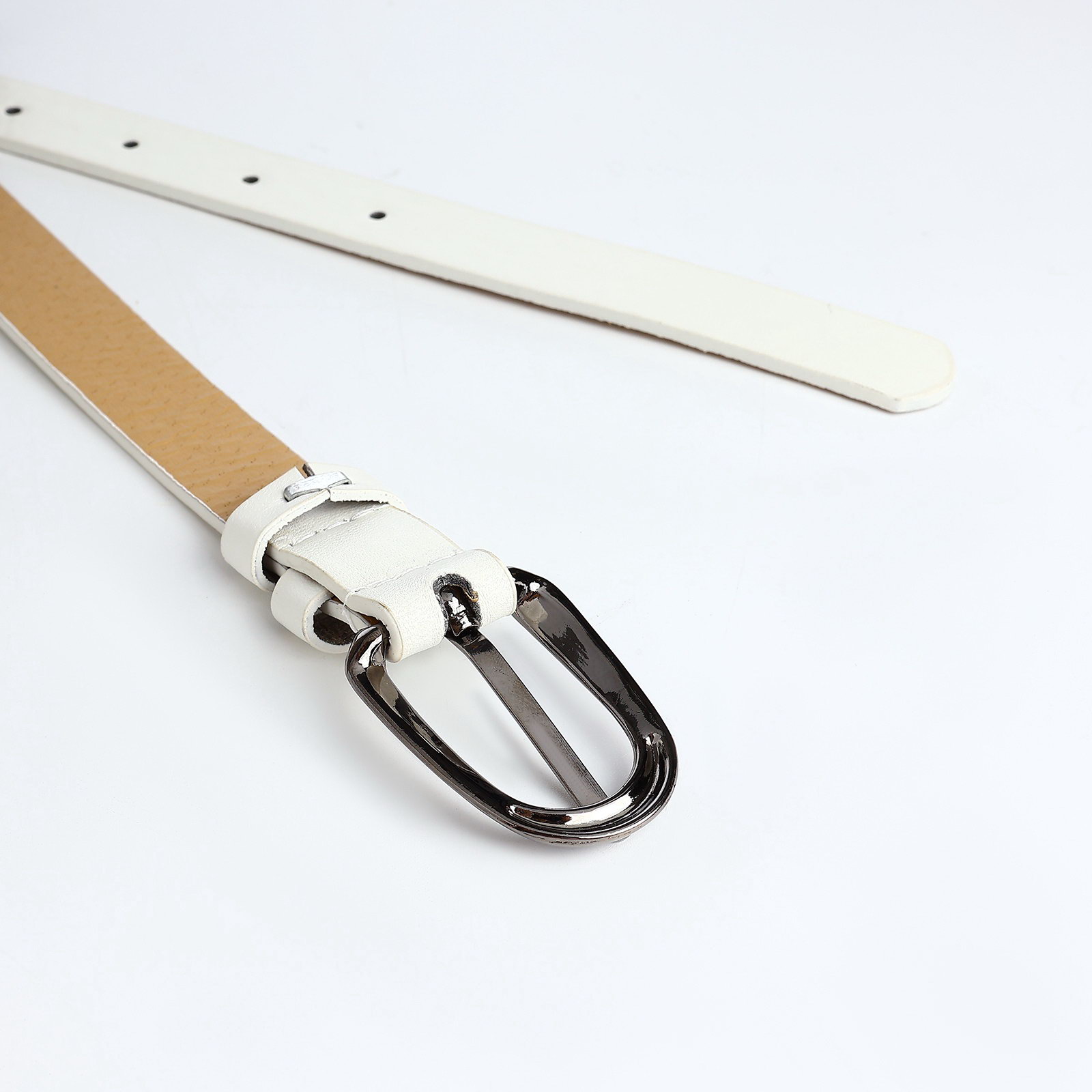 Ремень женский тонкий, 110x1.6 см, пряжка тёмный металл, белый, 1.6x110x0.3 см., Китай