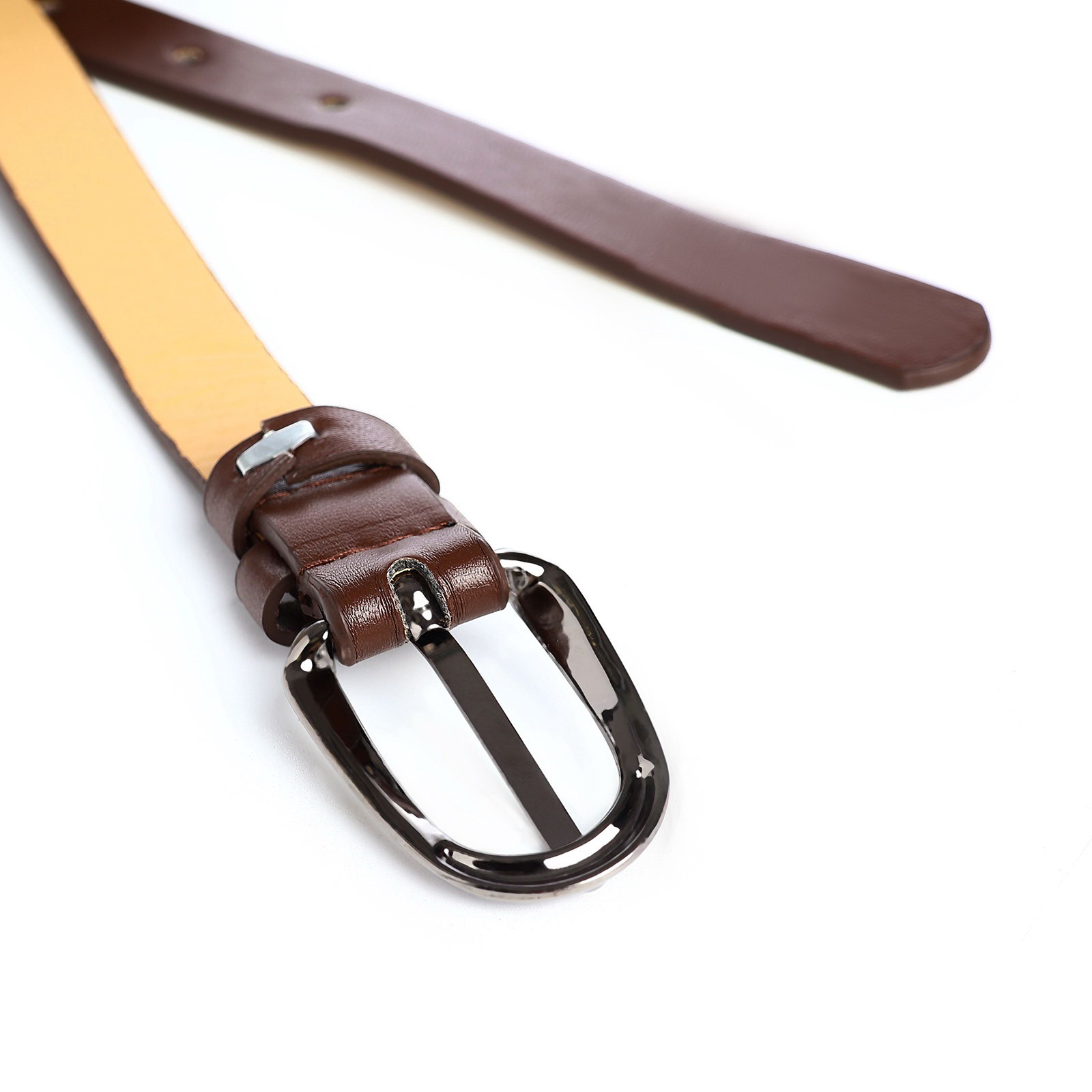 Ремень женский тонкий, 110x1.6 см, пряжка тёмный металл, коричневый, 1.6x110x0.3 см., Китай