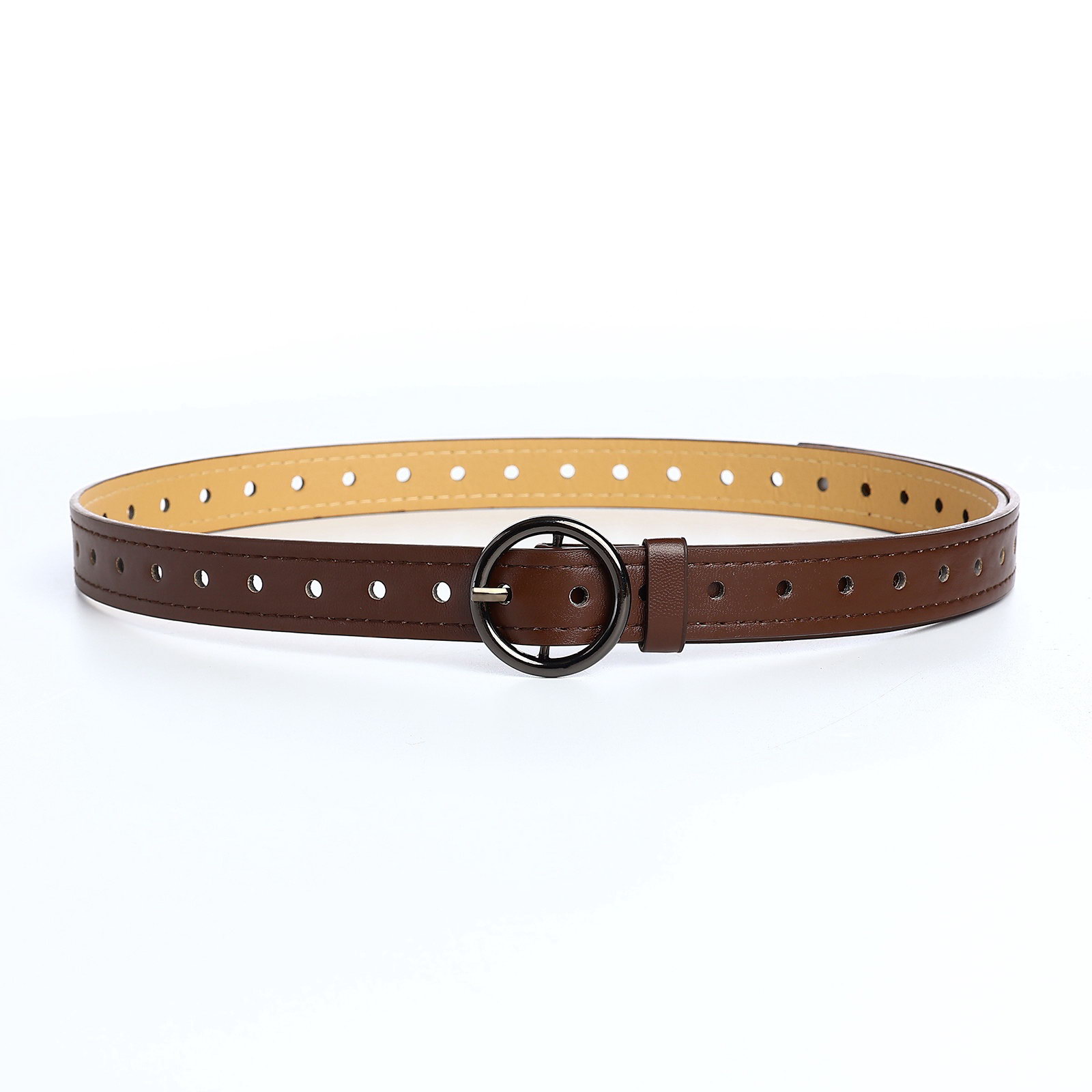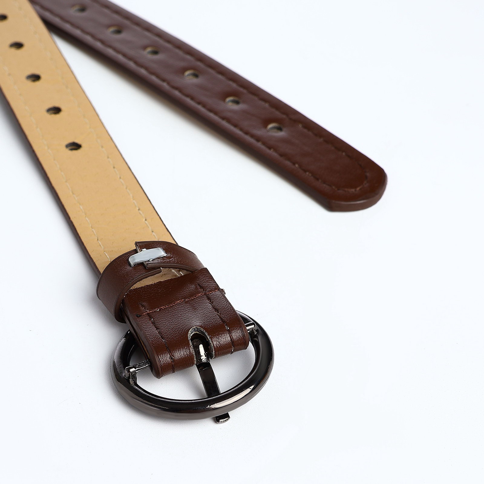 Ремень женский тонкий, 110x1.6 см, пряжка тёмный металл, круглая, коричневый, 1.6x110x0.3 см., Китай