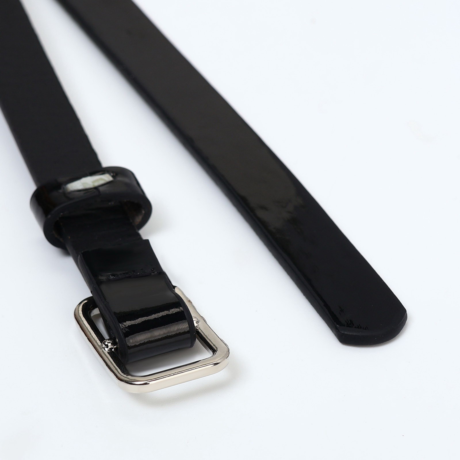 Ремень женский тонкий, 110x1.3 см, прямоугольная пряжка металл, серебристая, чёрный, 1.3x110x0.3 см., Китай