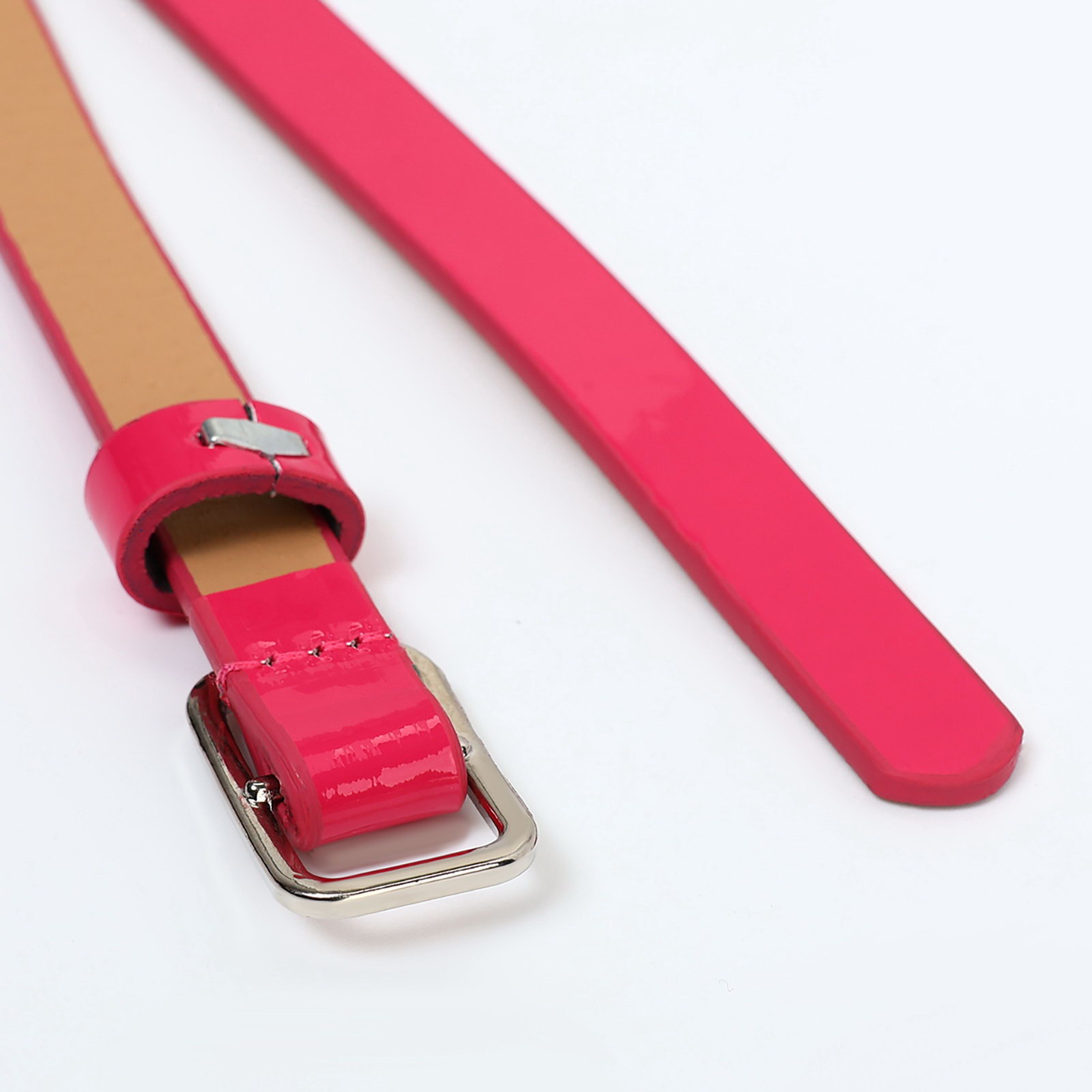 Ремень женский тонкий, 110x1.3 см, прямоугольная пряжка металл, серебристая, фуксия, 1.3x110x0.3 см., Китай