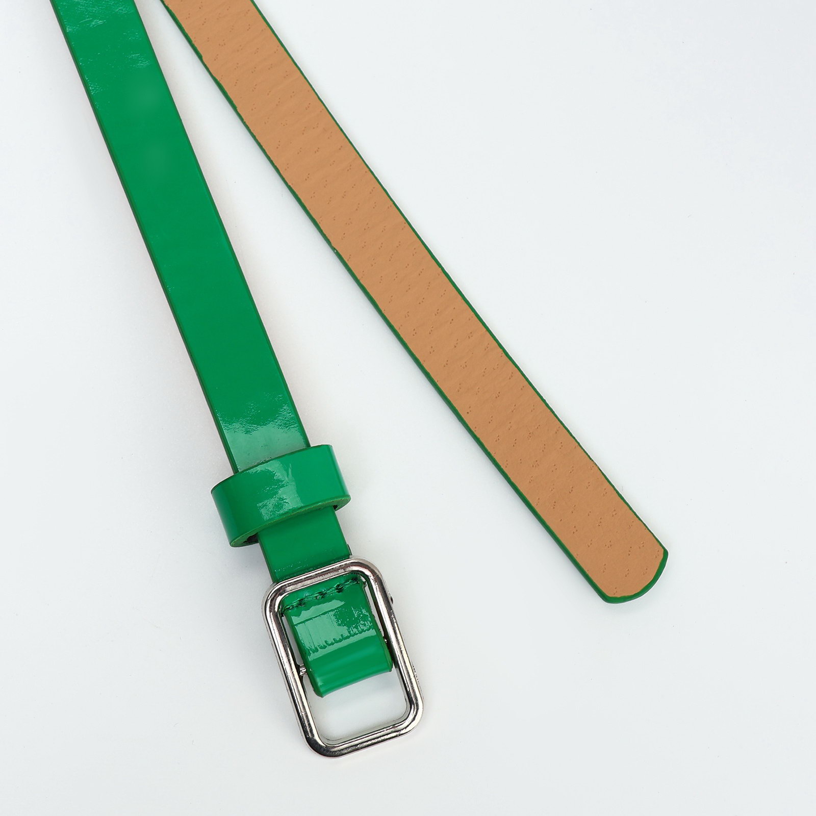 Ремень женский тонкий, 110x1.3 см, прямоугольная пряжка металл, серебристая, зелёный, 1.3x110x0.3 см., Китай