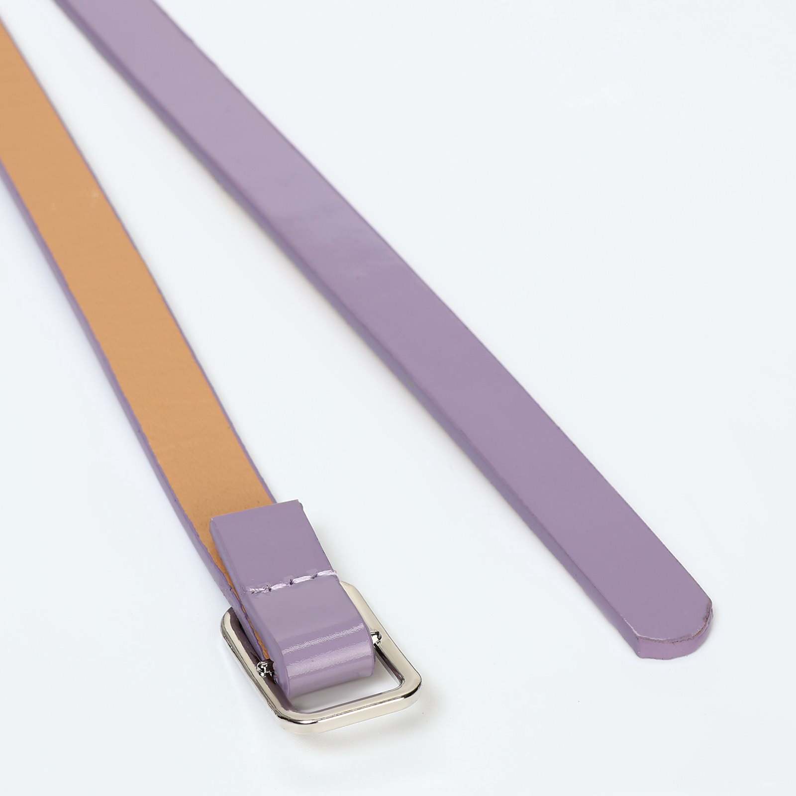 Ремень женский тонкий, 110x1.3 см, прямоугольная пряжка металл, серебристая, сиреневый, 1.3x110x0.3 см., Китай