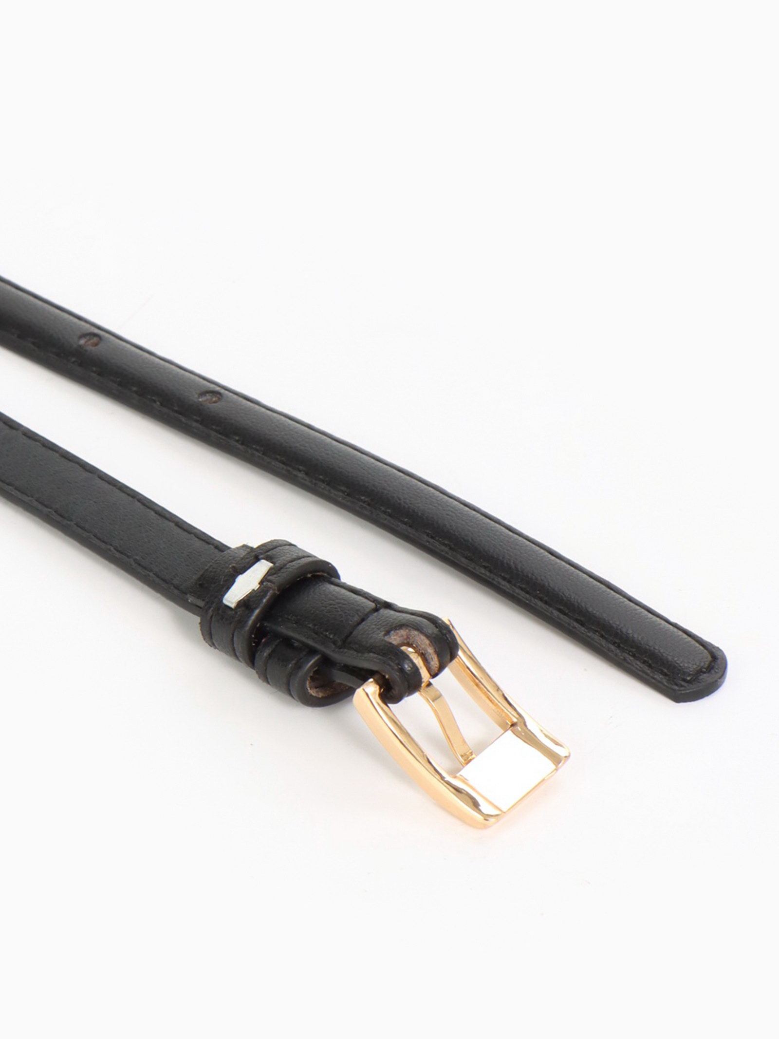Ремень женский тонкий, 110x1.3 см, классическая пряжка металл, золотистая, чёрный, 1.3x110 см., Китай