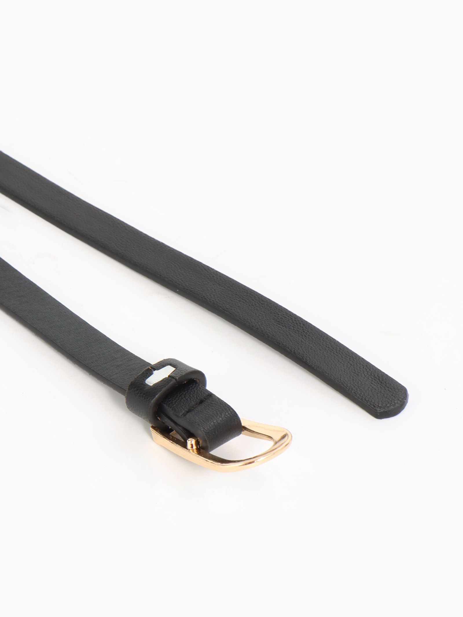 Ремень женский тонкий, 110x1.2 см, пряжка металл, золотистая, чёрный, 1.2x110 см., Китай
