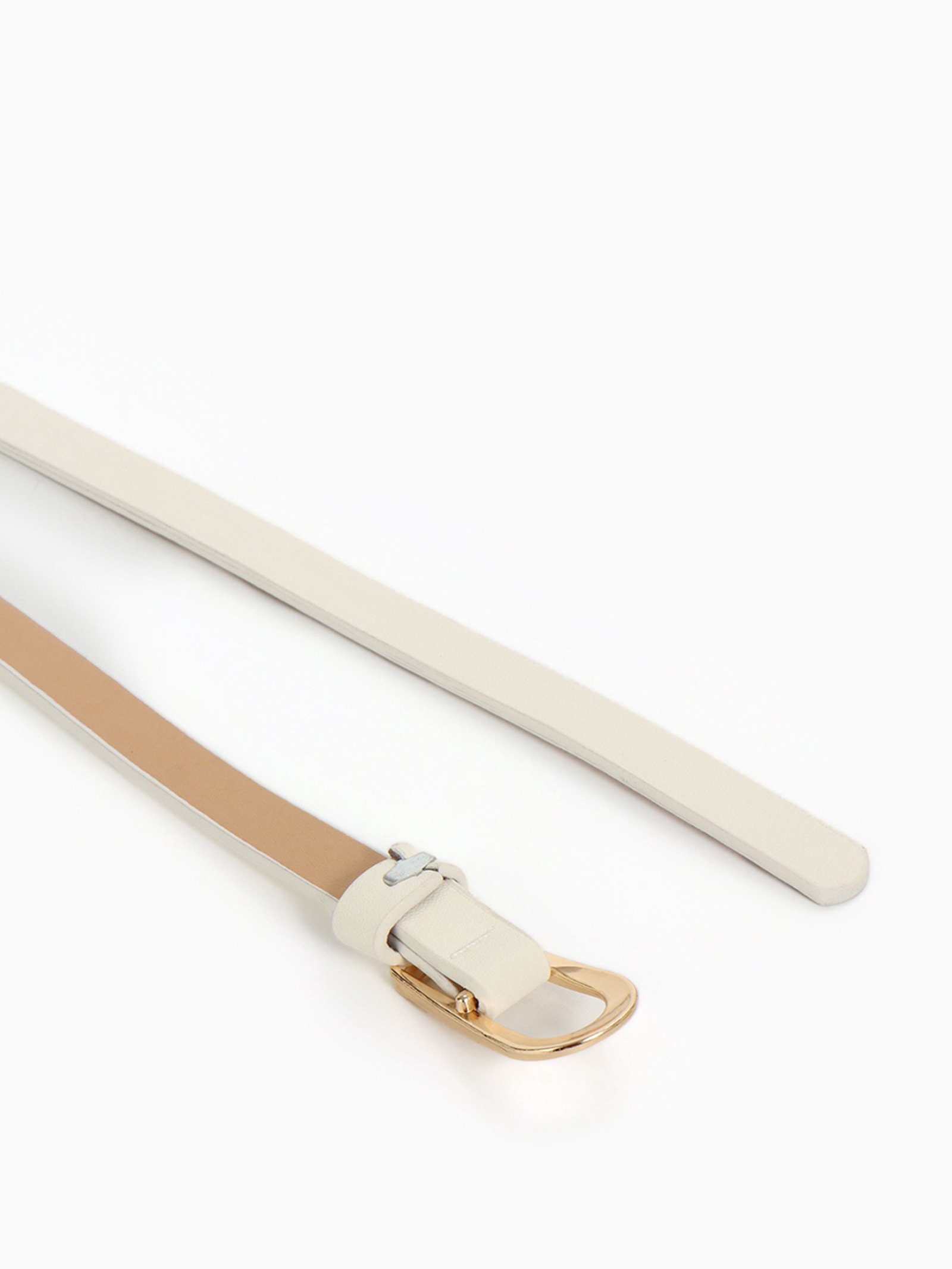 Ремень женский тонкий, 110x1.2 см, пряжка металл, золотистая, белый, 1.2x110 см., Китай