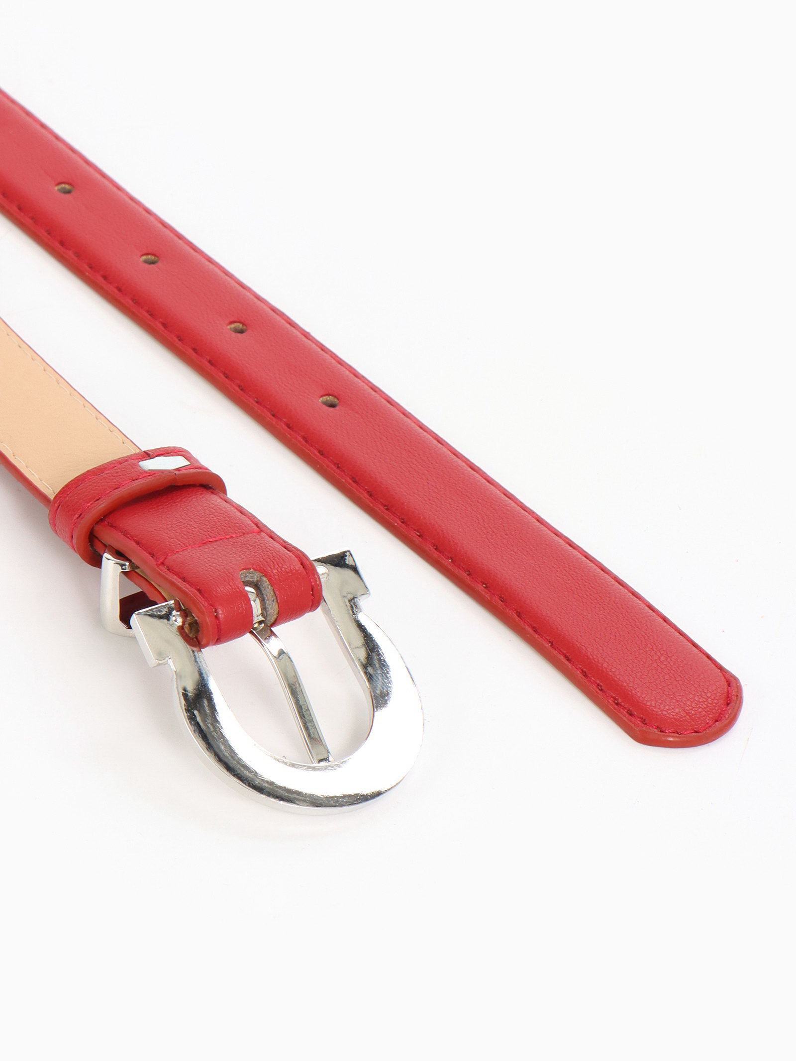 Ремень женский, 110x2.3 см, пряжка металл, серебристая, красный, 2.3x110 см., Китай