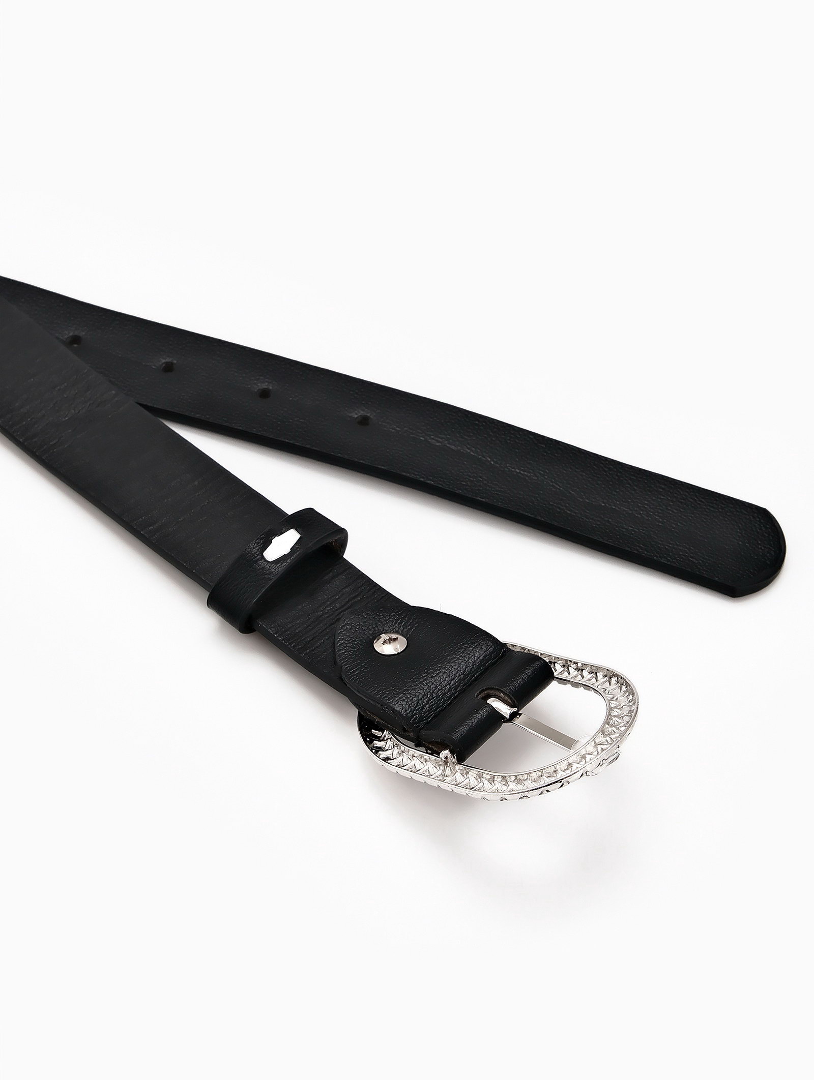 Строгость и функциональность Ремень сохраняет форму в течение дня, не деформируясь в области пряжки. Вы фиксируете пояс брюк или добавляете структуру в свободный силуэт платья. Аксессуар сочетается с серебристыми украшениями, завершая образ. | ||