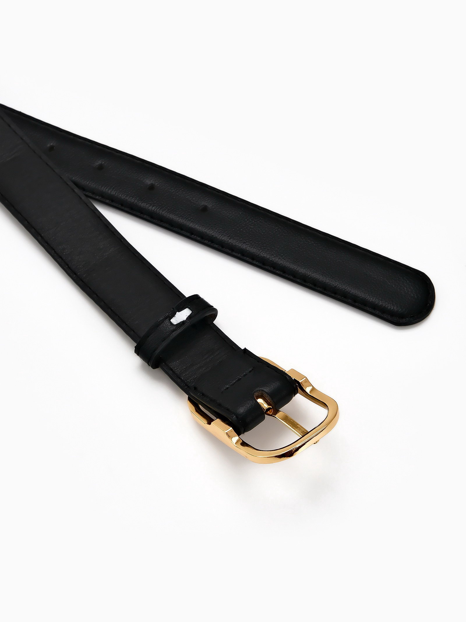 Размер упаковки: 5.5 x 4 x 10 см. tnved: 3926200000 Для кого: Для женщины Длина ремня, см: 110 Вид упаковки: Пакет Вид пряжки: Один прокол Цвет пряжки: Золотой Люверс: Нет Ширина ремня, см: 2.6-3.0 Вид аксессуара: Ремень Цвет: Чёрный Черный ремень с золотистой пряжкой основа гармоничного образа. Аксессуар сочетается с джинсами, платьями и брюками, создавая баланс между повседневностью и элегантностью. Особенности