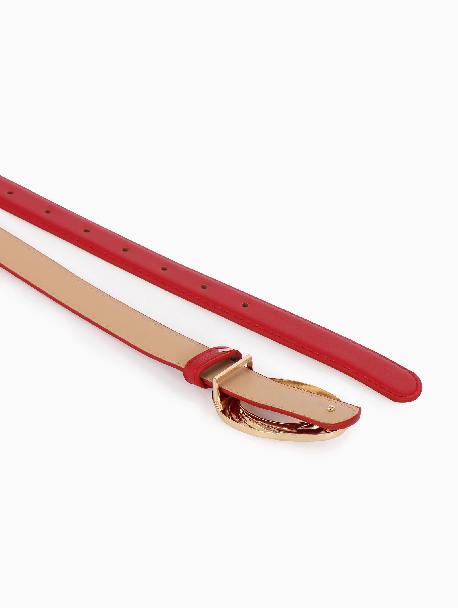 Ремень женский тонкий, 110x2.4 см, золотистая пряжка металл, красный, 2.4x110x0.3 см., Китай