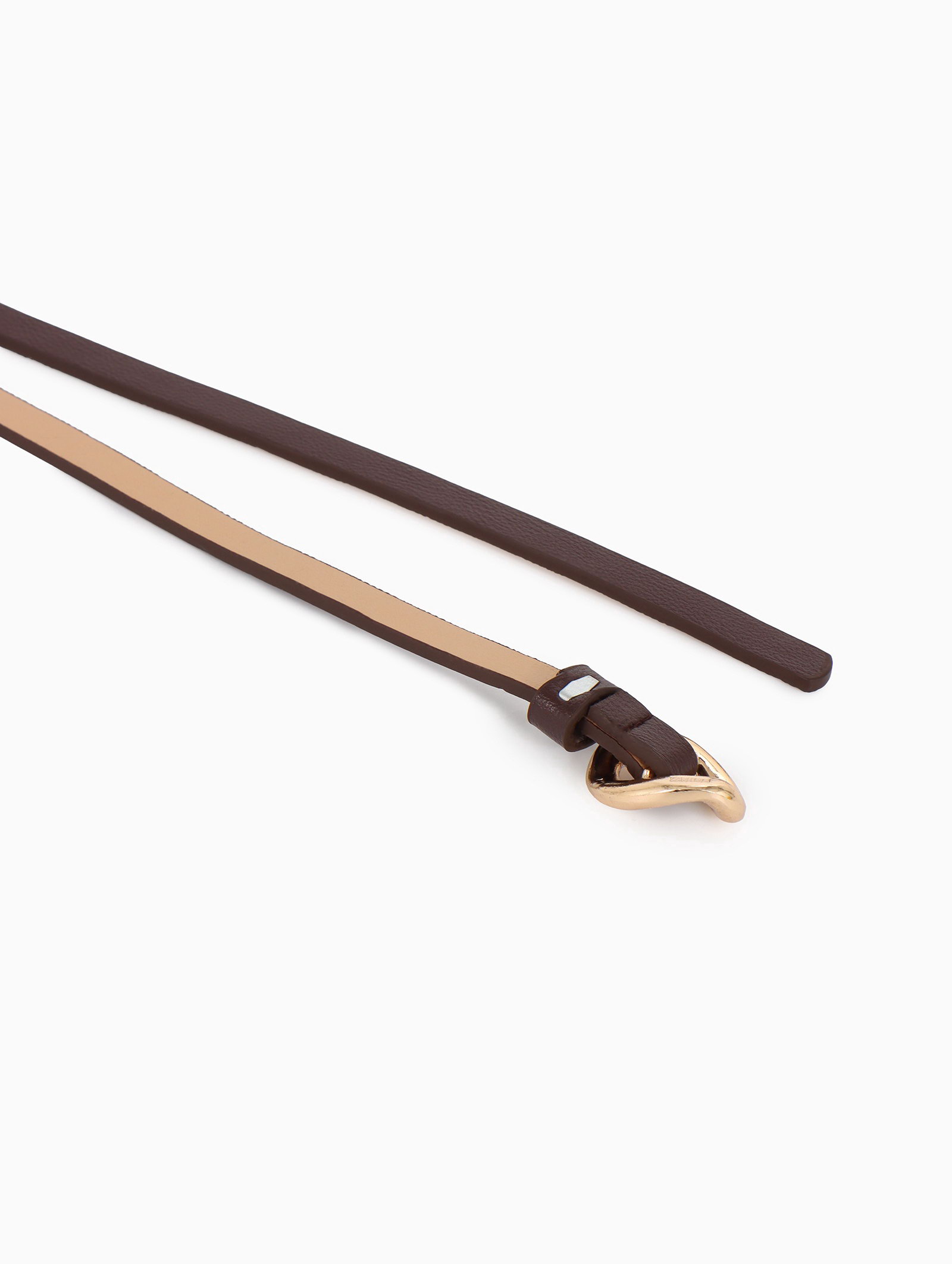 Ремень женский тонкий, 110x1 см, золотистая пряжка металл, коричневый, 1x110x0.3 см., Китай