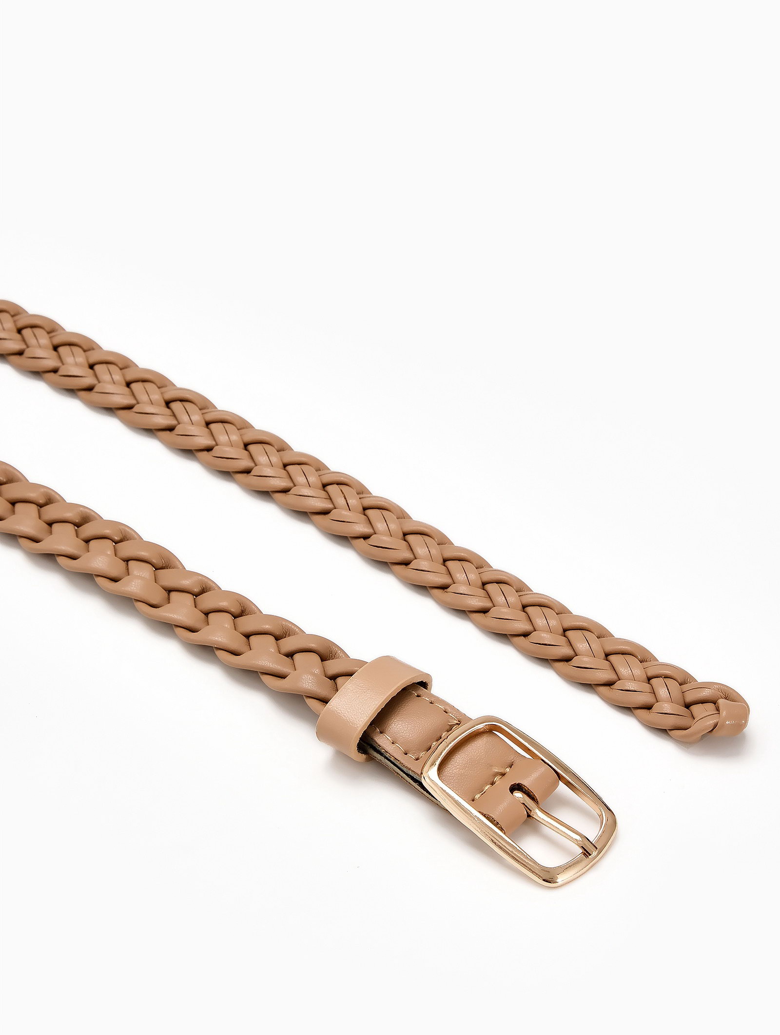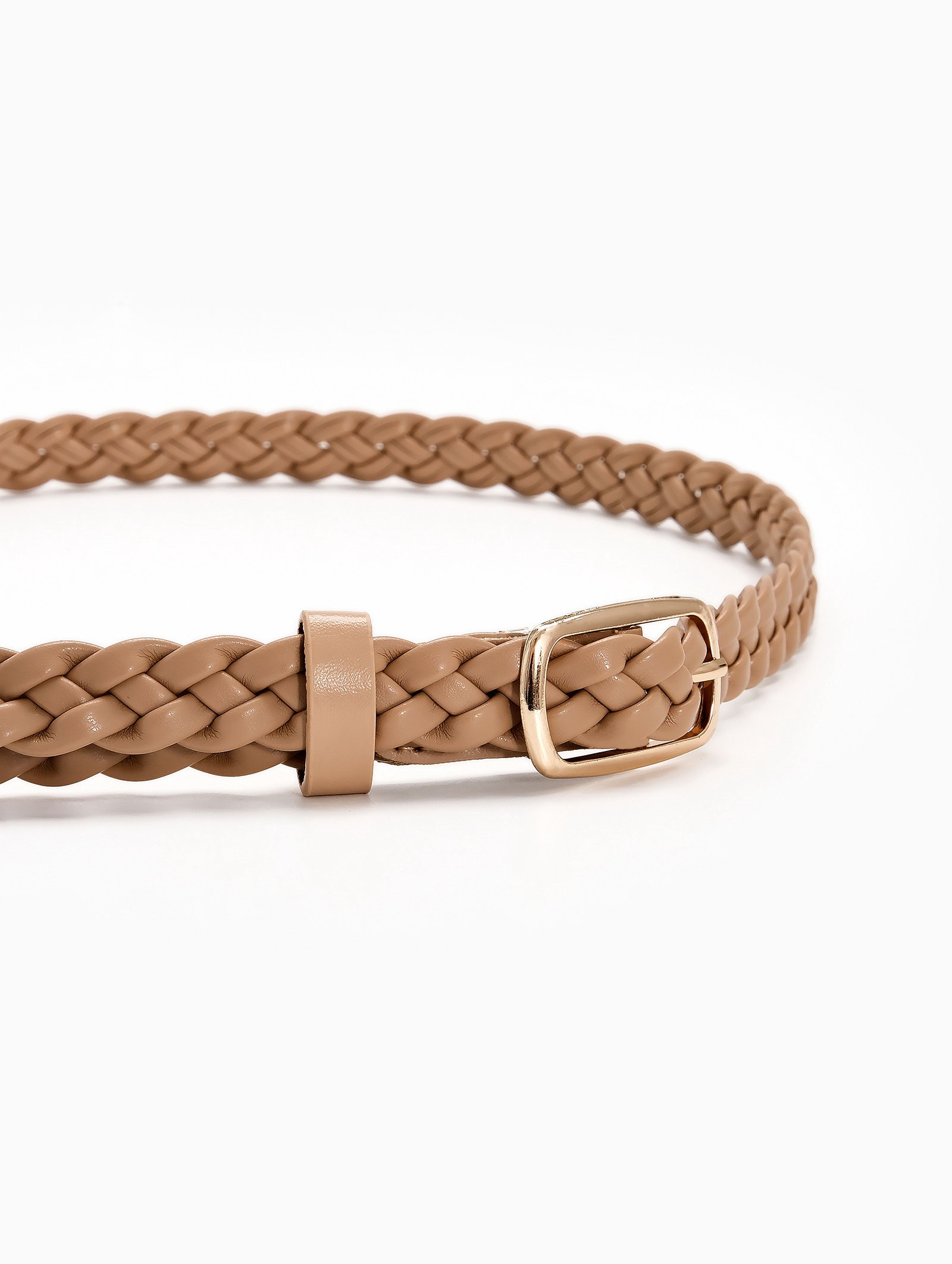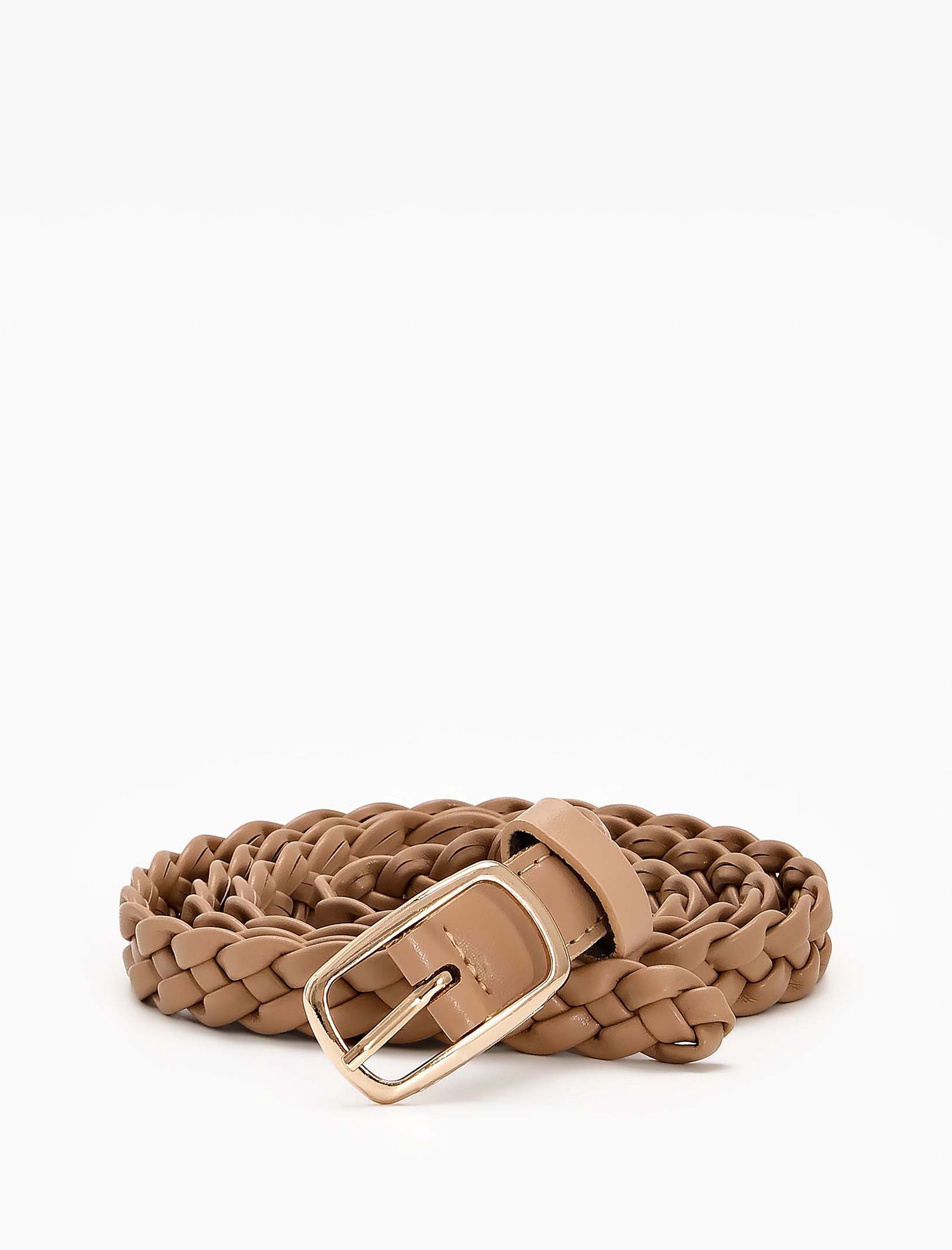 Ремень женский плетёный, 110x1.8 см, пряжка металл, золотистая, бежевый, 1.8x110x2 см., Китай
