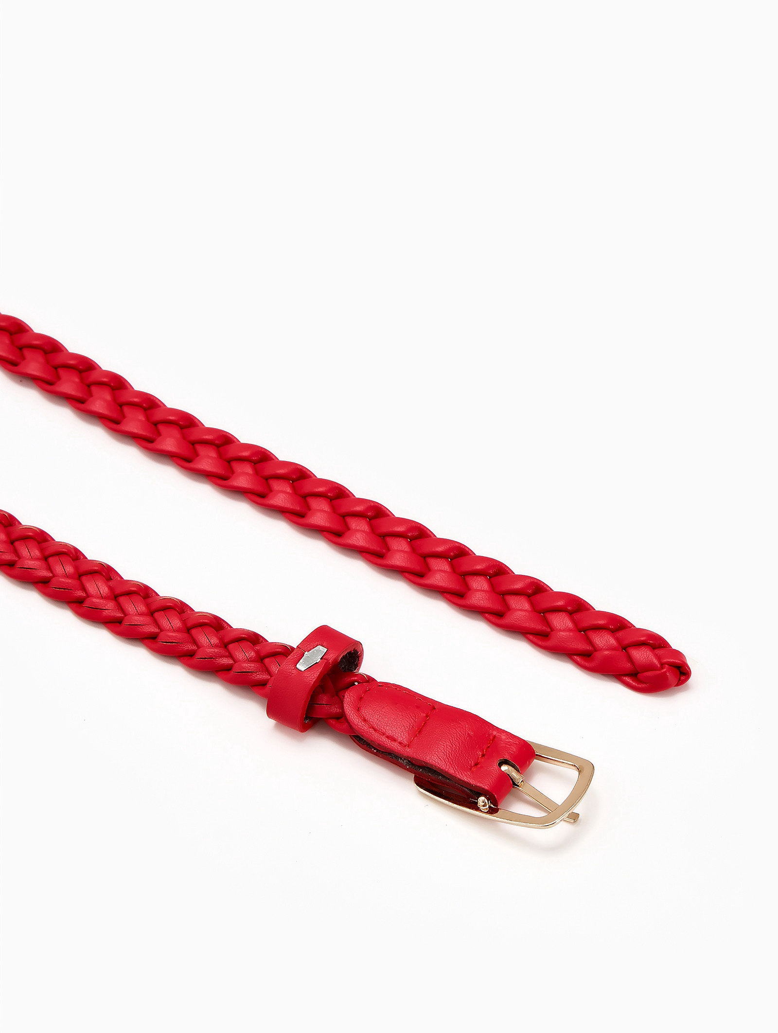 Ремень женский плетёный, 110x1.8 см, пряжка металл, золотистая, красный, 1.8x110x2 см., Китай