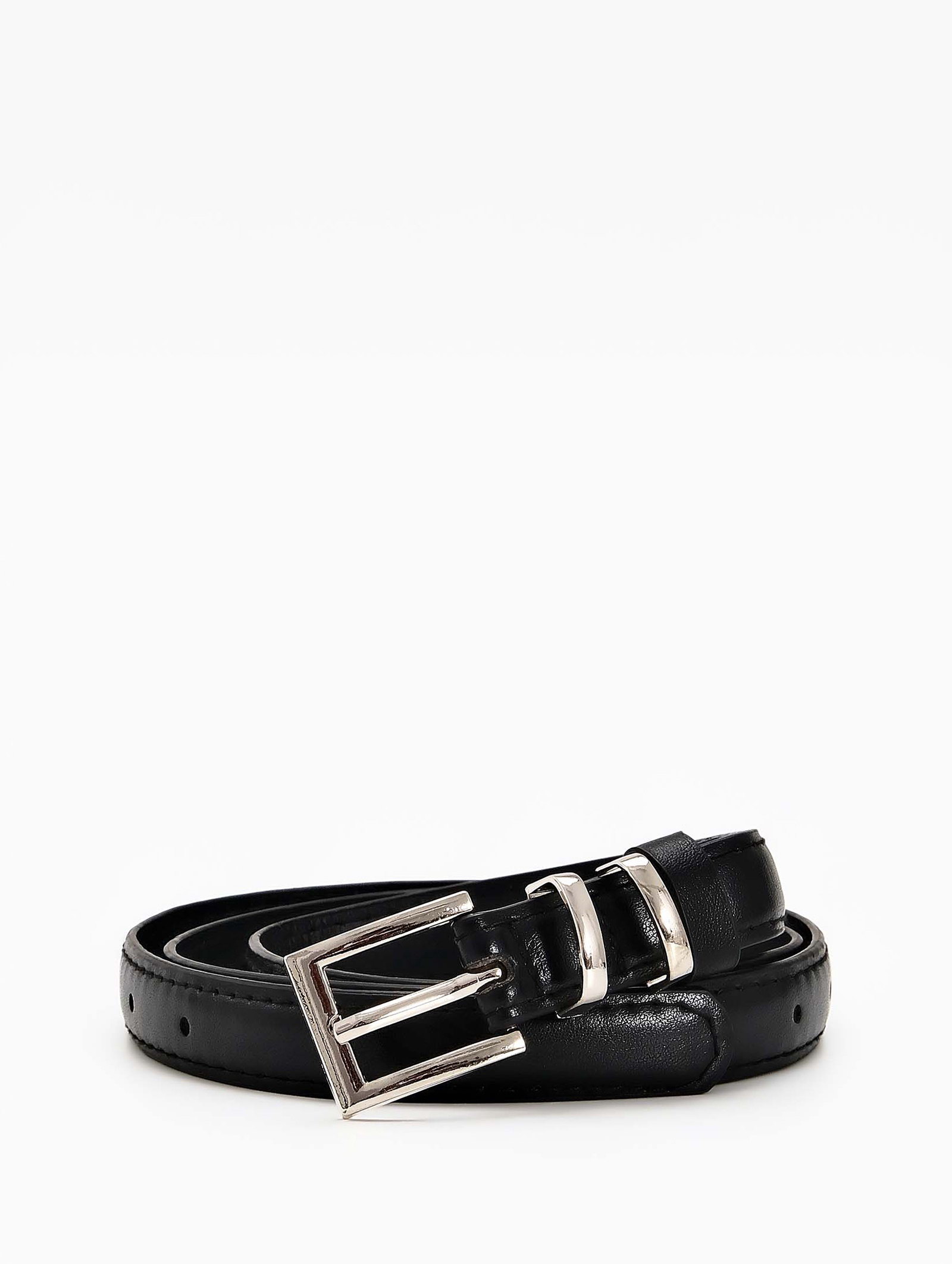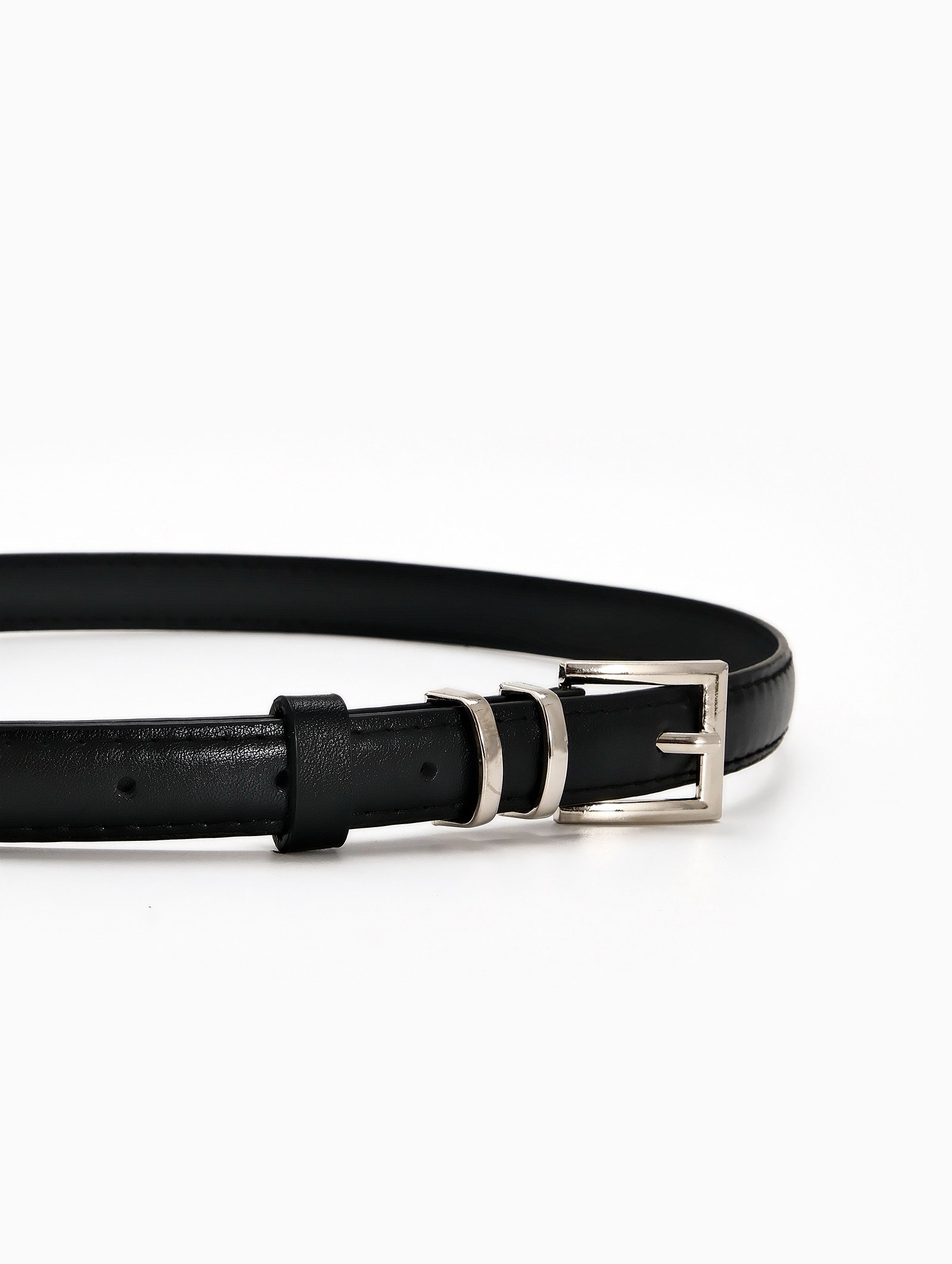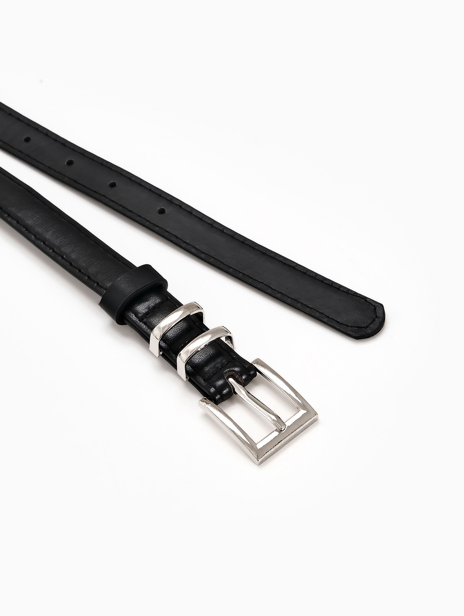 Размер упаковки: 2.7 x 1.5 x 110 см. tnved: 3926200000 Длина ремня, см: 110 Для кого: Для женщины Вид упаковки: Пакет Люверс: Нет Вид аксессуара: Ремень Цвет пряжки: Серебряный Вид пряжки: Один прокол Цвет: Чёрный Ширина ремня, см: 1.6-2.0 Женский черный ремень с серебряной пряжкой создает строгий и собранный силуэт. Аксессуар подчеркивает талию, сохраняя сдержанную элегантность в деловом и повседневном стиле. Ширина 2 см обеспечивает устойчивое положение и комфорт при ношении. Особенности