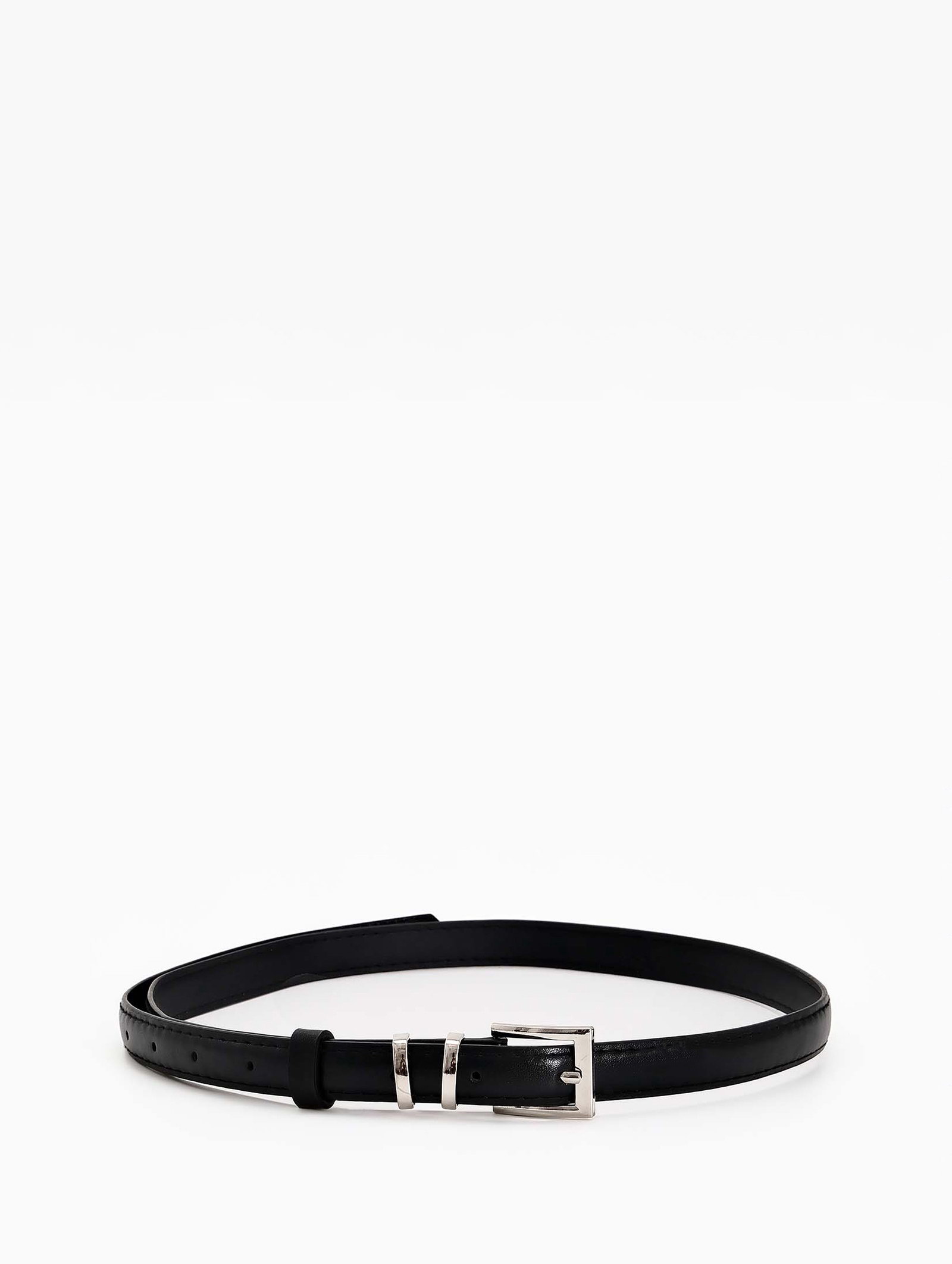 Ремень женский тонкий, 110x2 см, пряжка металл, серебристая, чёрный, 2x110x2 см., Китай