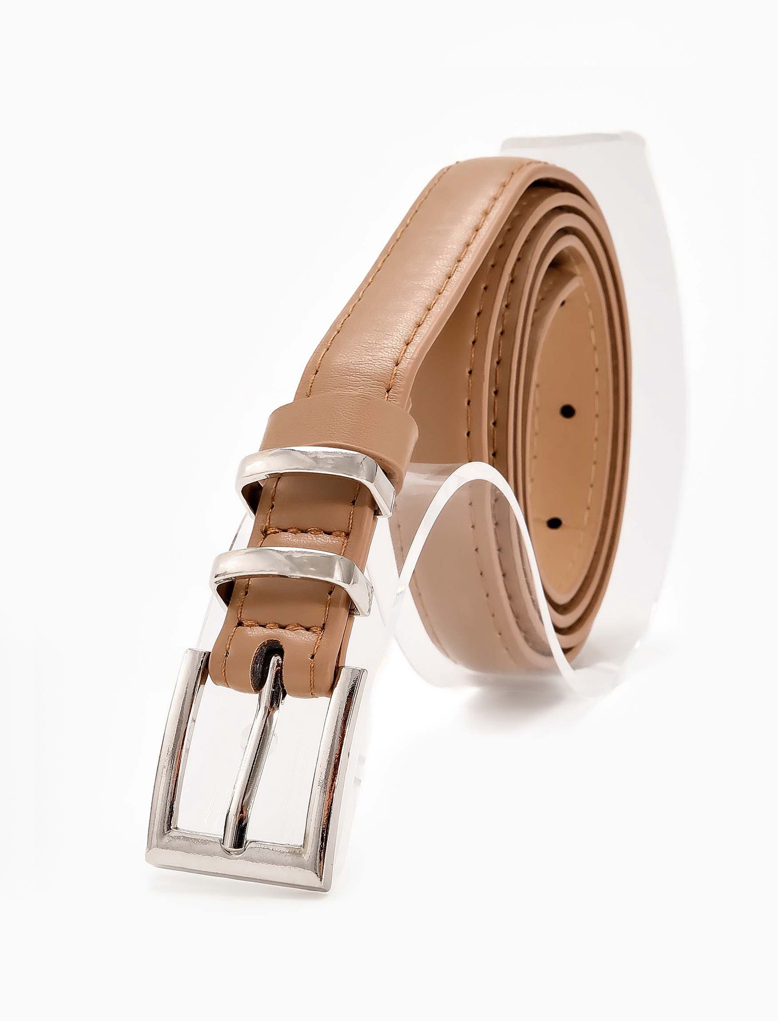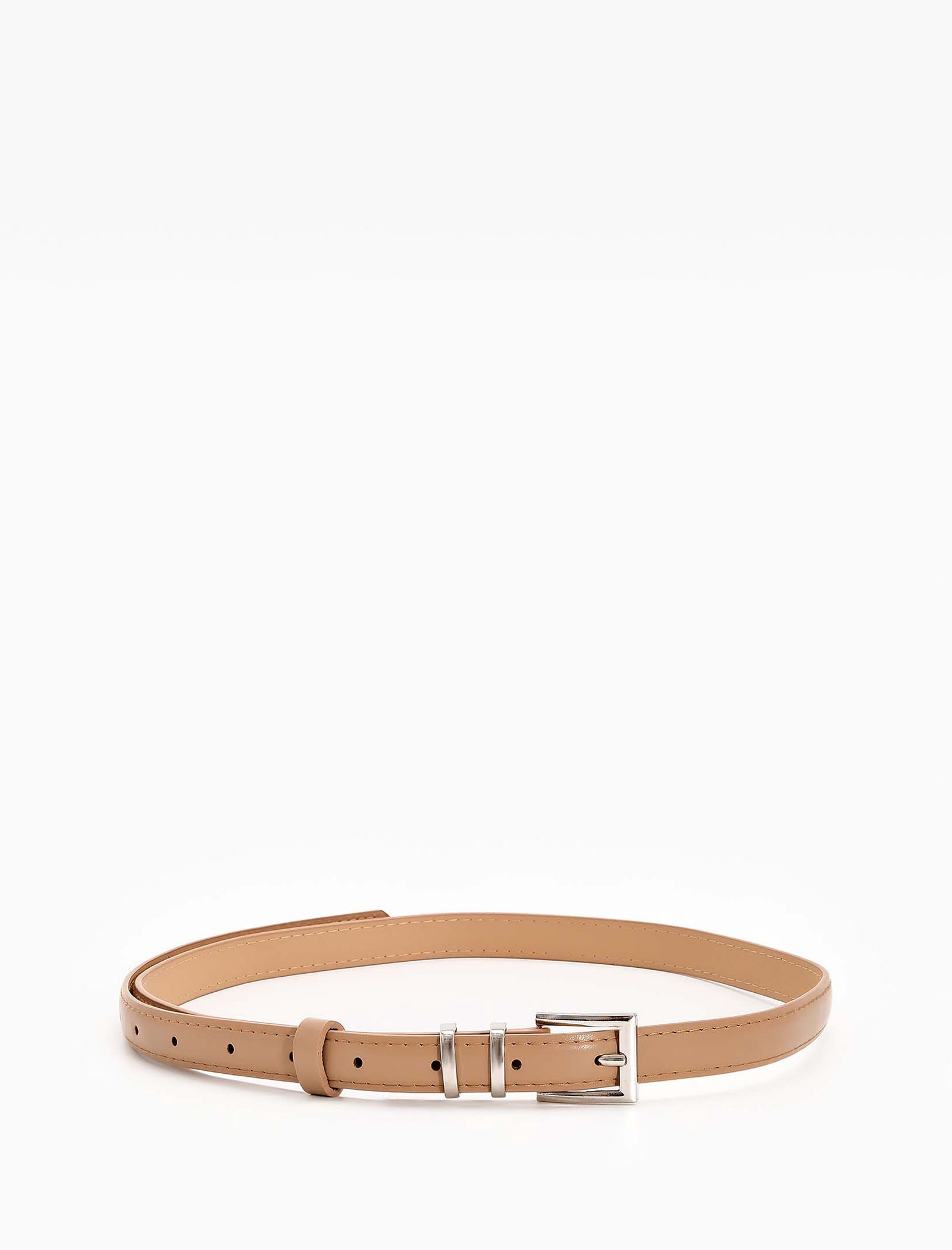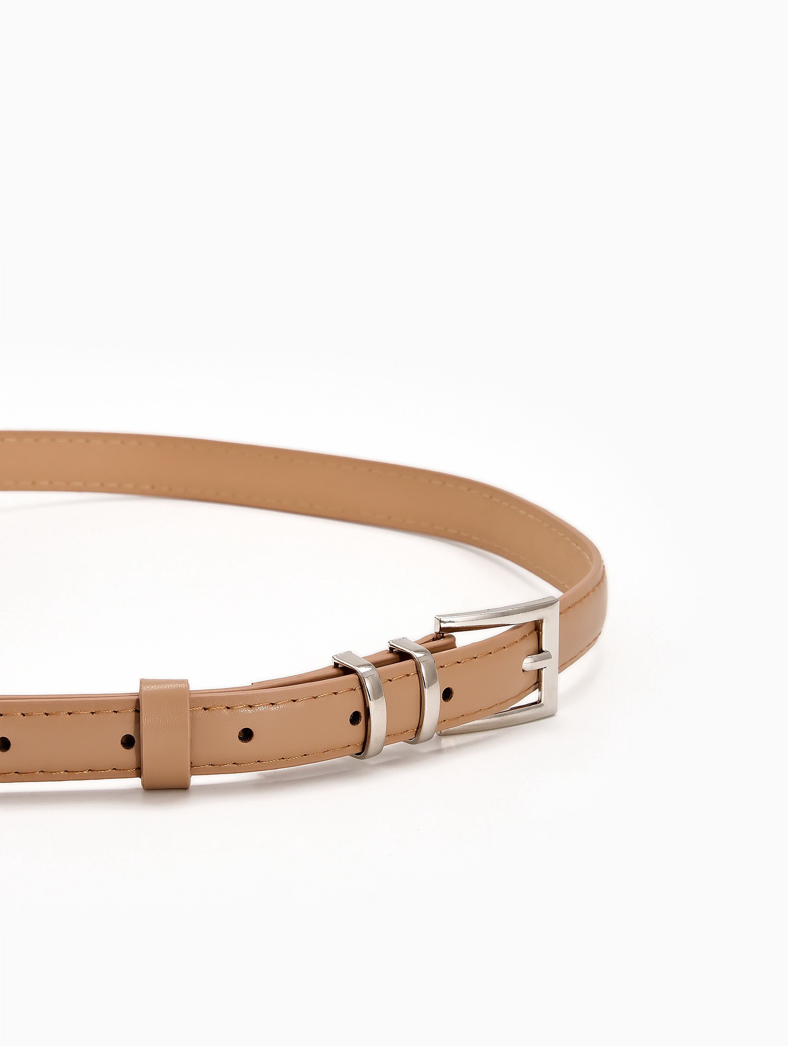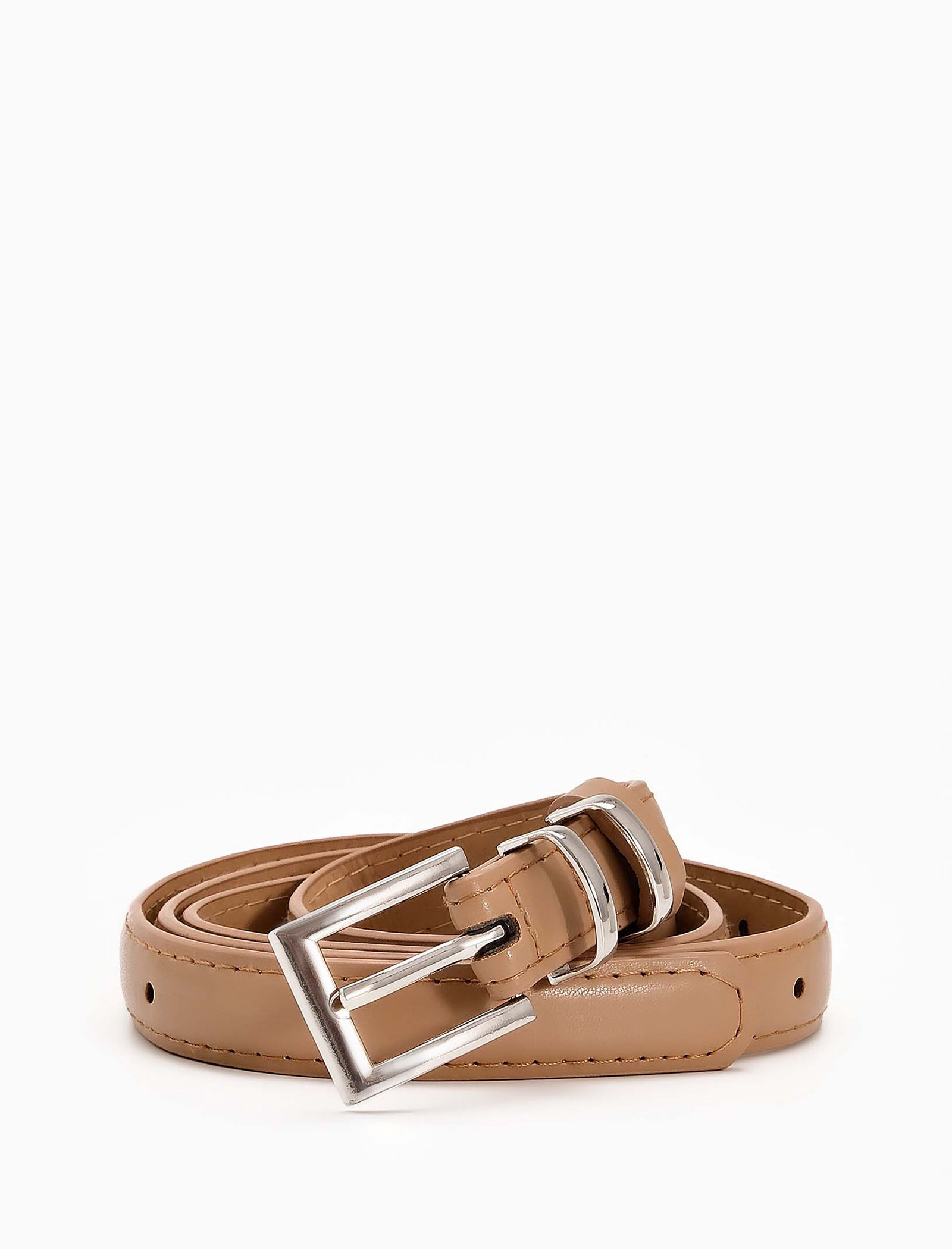 Ремень женский тонкий, 110x2 см, пряжка металл, серебристая, бежевый, 2x110x2 см., Китай