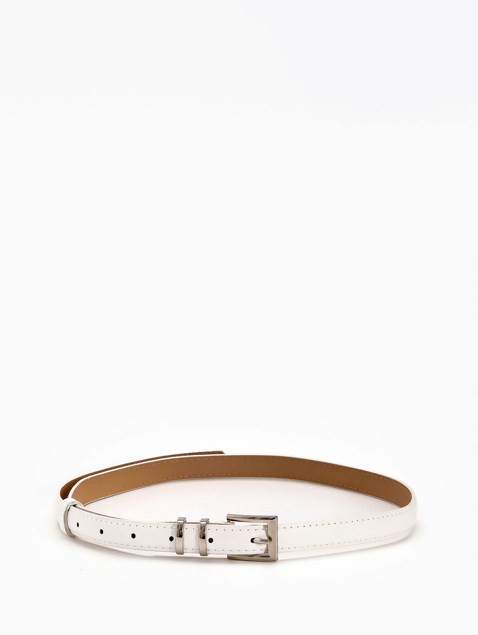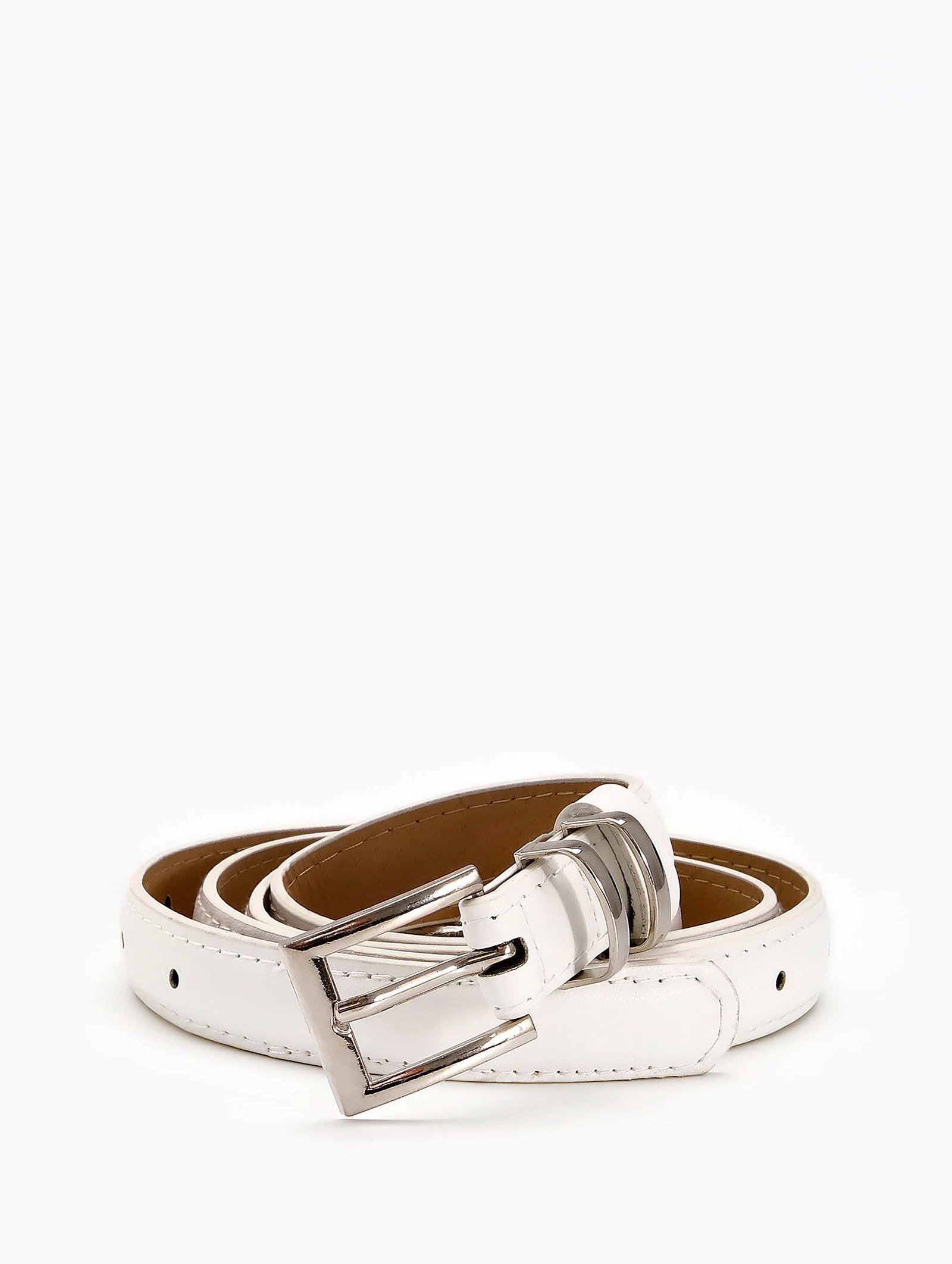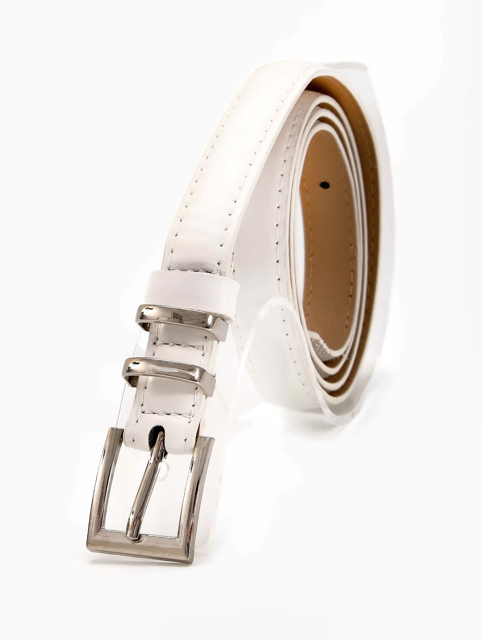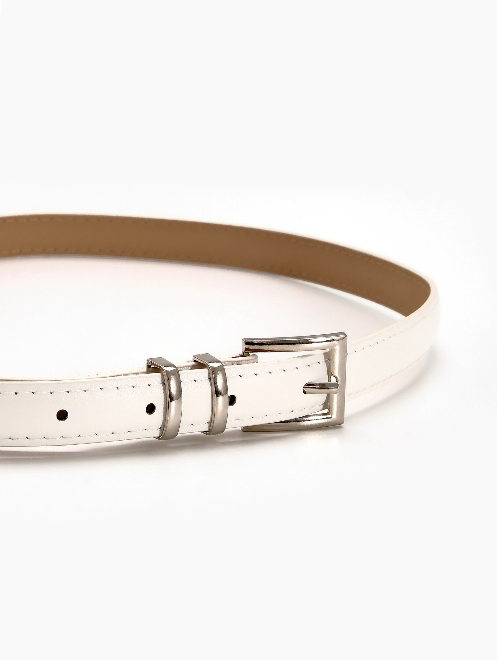 Ремень женский тонкий, 110x2 см, пряжка металл, серебристая, белый, 2x110x2 см., Китай