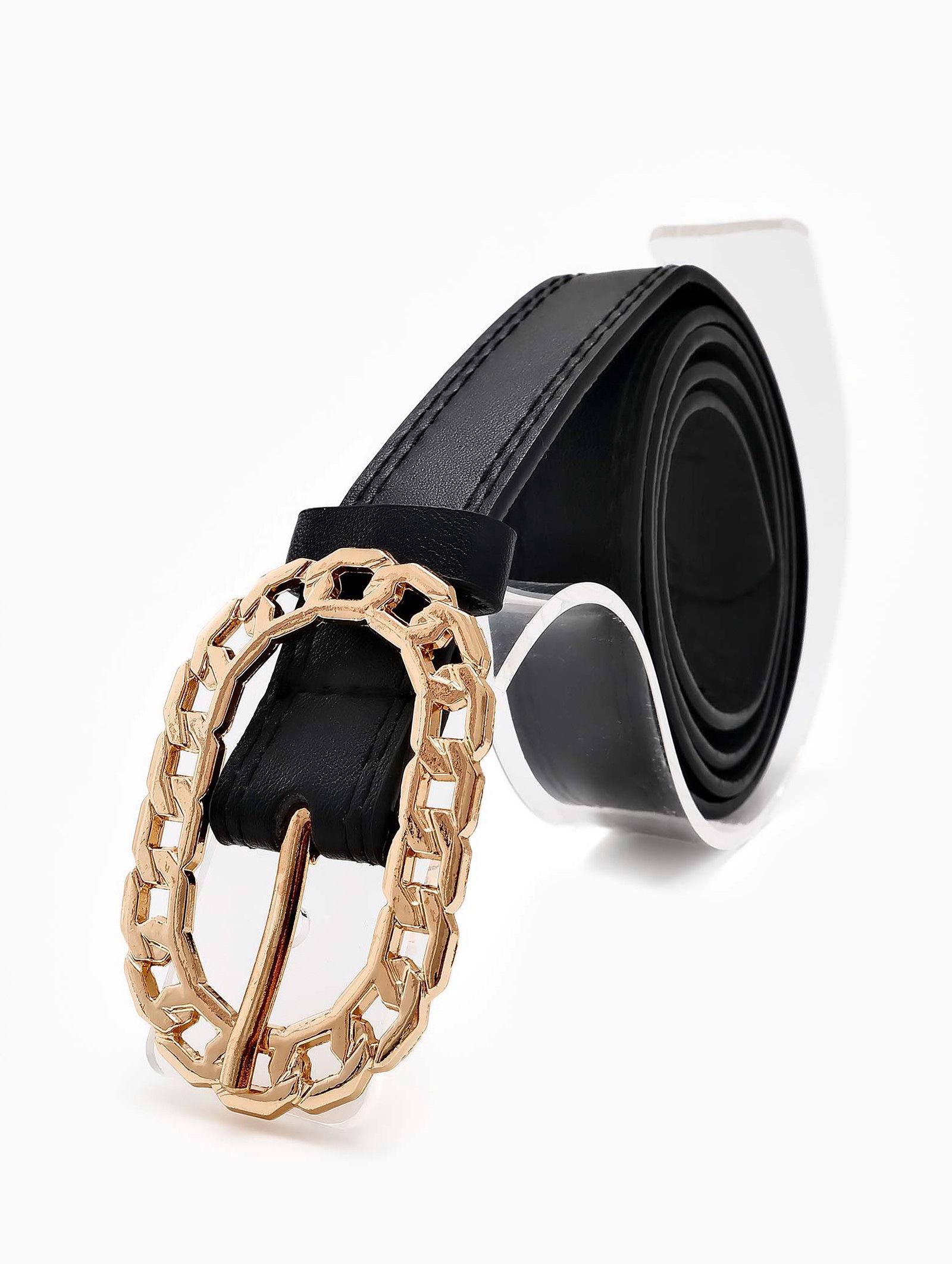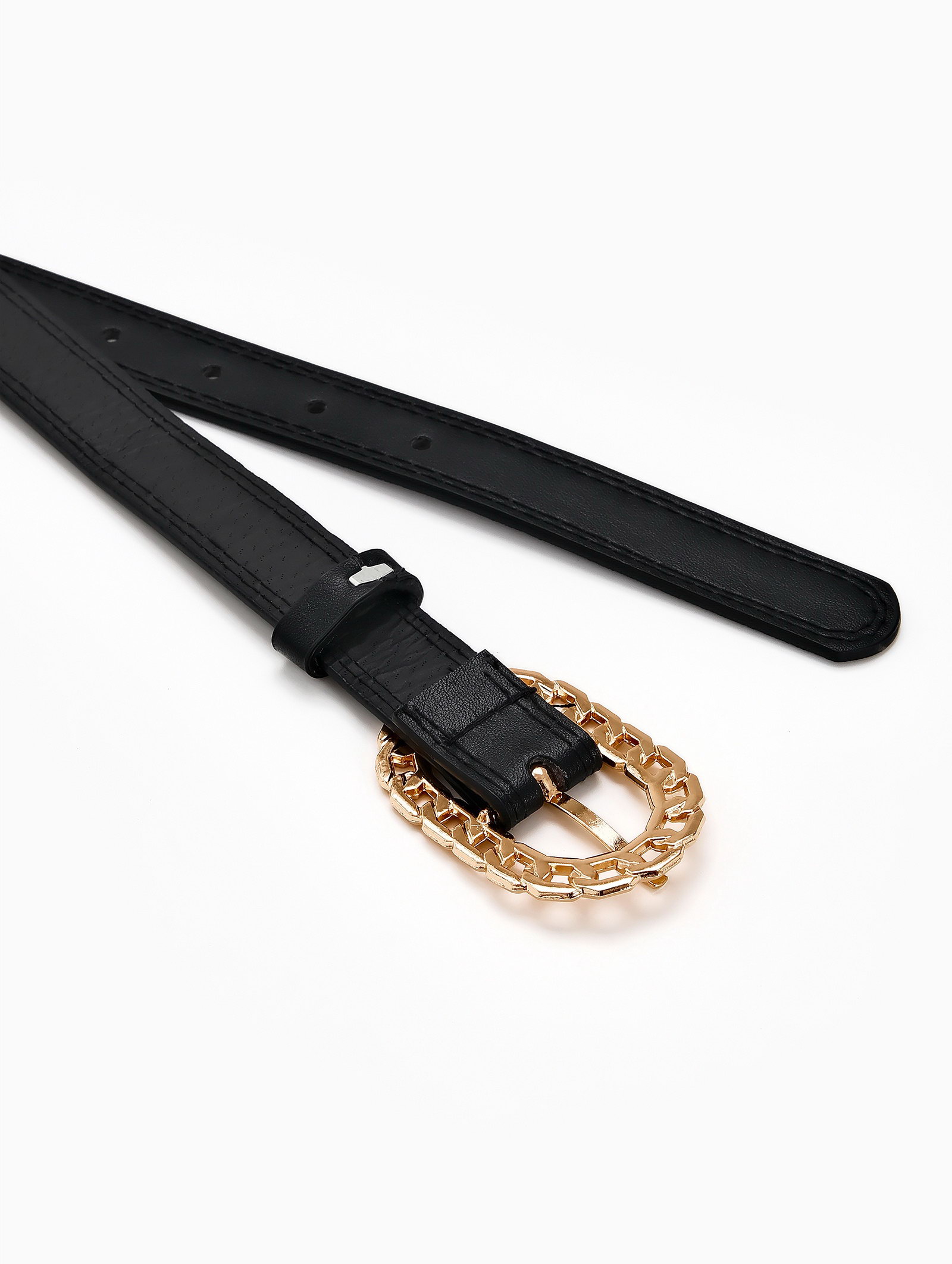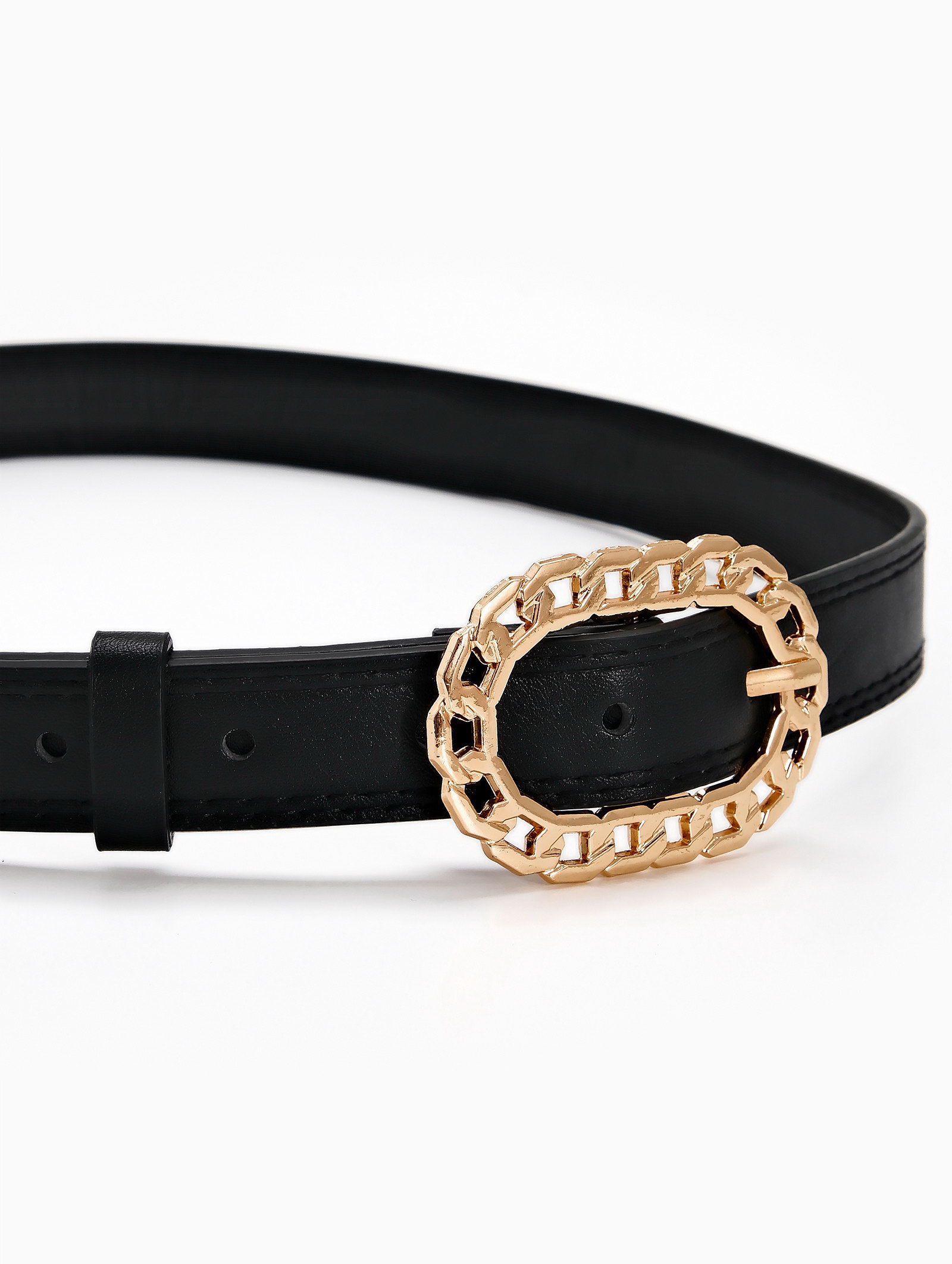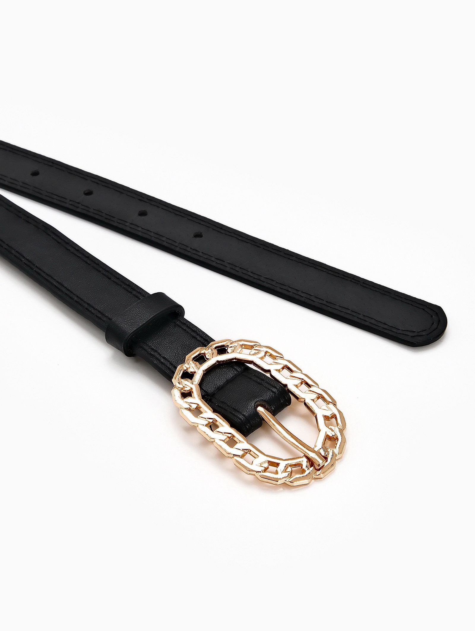 Размер упаковки: 5 x 4.5 x 10 см. tnved: 3926200000 Длина ремня, см: 110 Люверс: Нет Вид упаковки: Пакет Для кого: Для женщины Вид пряжки: Один прокол Цвет пряжки: Золотой Вид аксессуара: Ремень Цвет: Чёрный Ширина ремня, см: 2.1-2.5 Женский ремень чёрного цвета с золотой пряжкой имеет классическую ширину 2,5 см, которая подходит для повседневной носки. Модель сохраняет лаконичный силуэт, мягко подчёркивая линию талии. Золотистая фурнитура добавляет акцент, не перегружая образ. Особенности