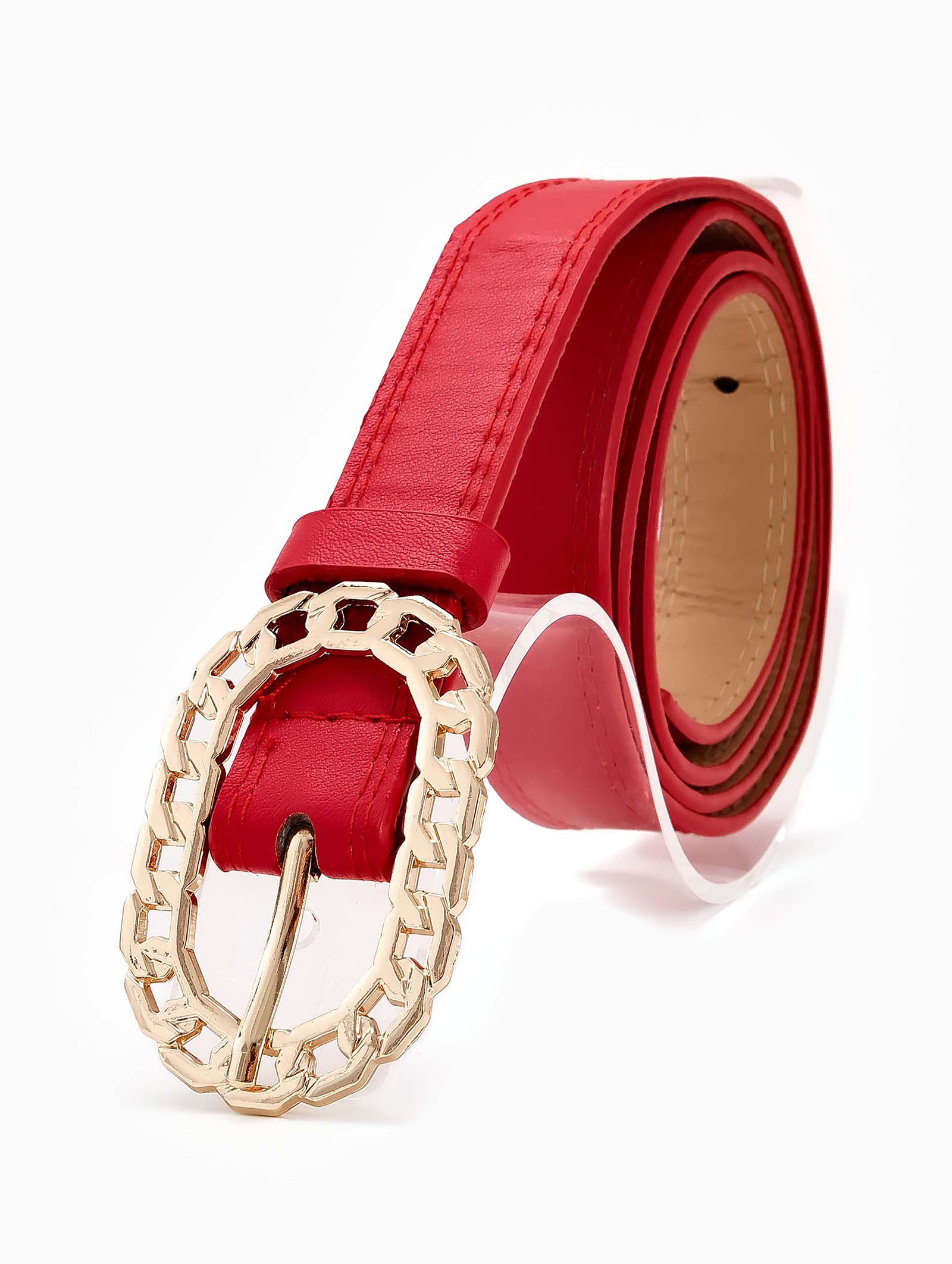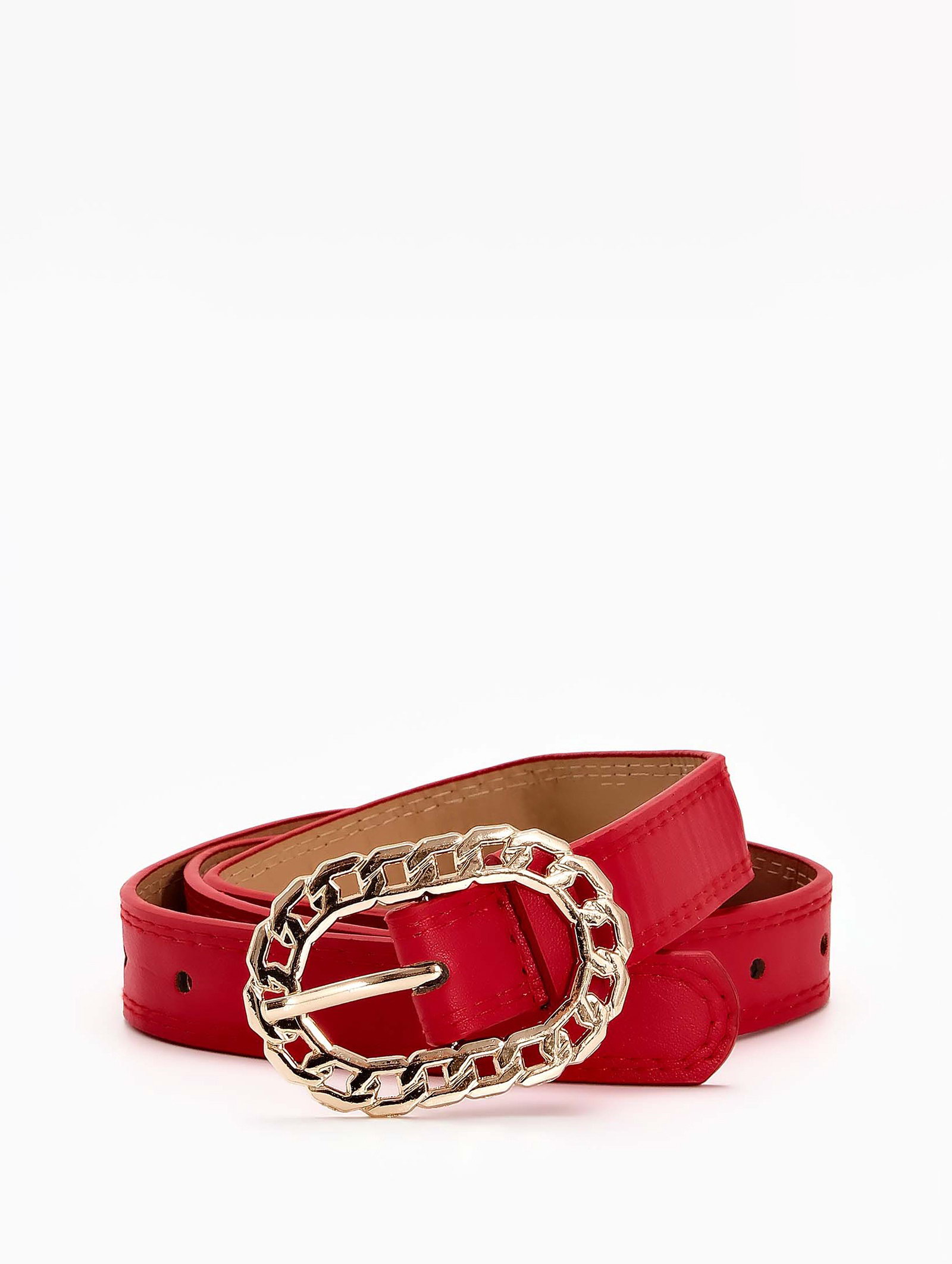 Ремень женский, 110x2.5 см, пряжка металл, золотистая, красный, 2.5x110x0.2 см., Китай